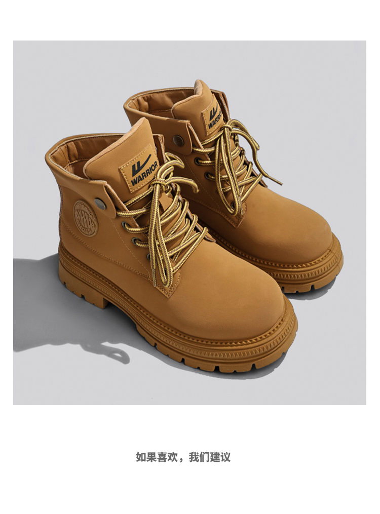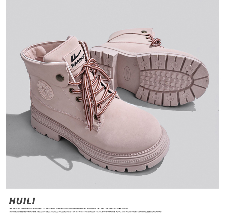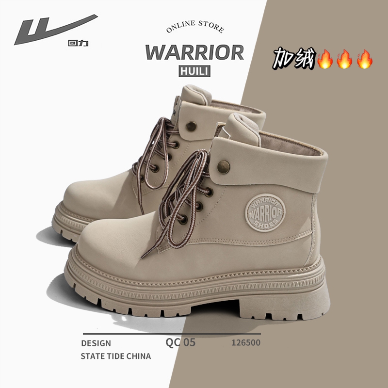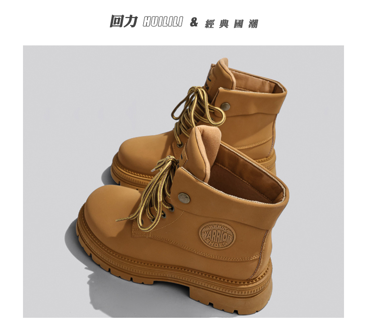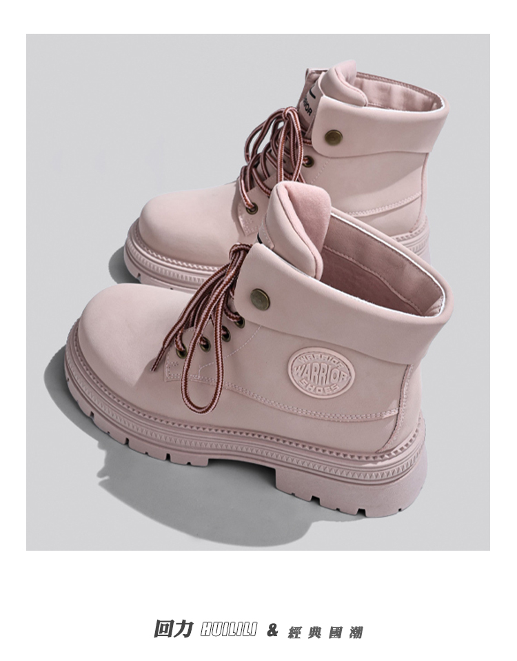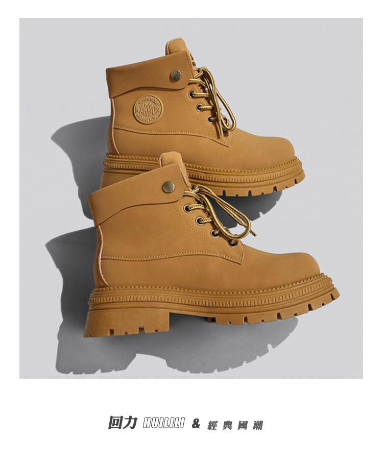 回力女鞋厚底加绒马丁靴秋冬季新款百搭英伦风短靴子复古大黄靴潮