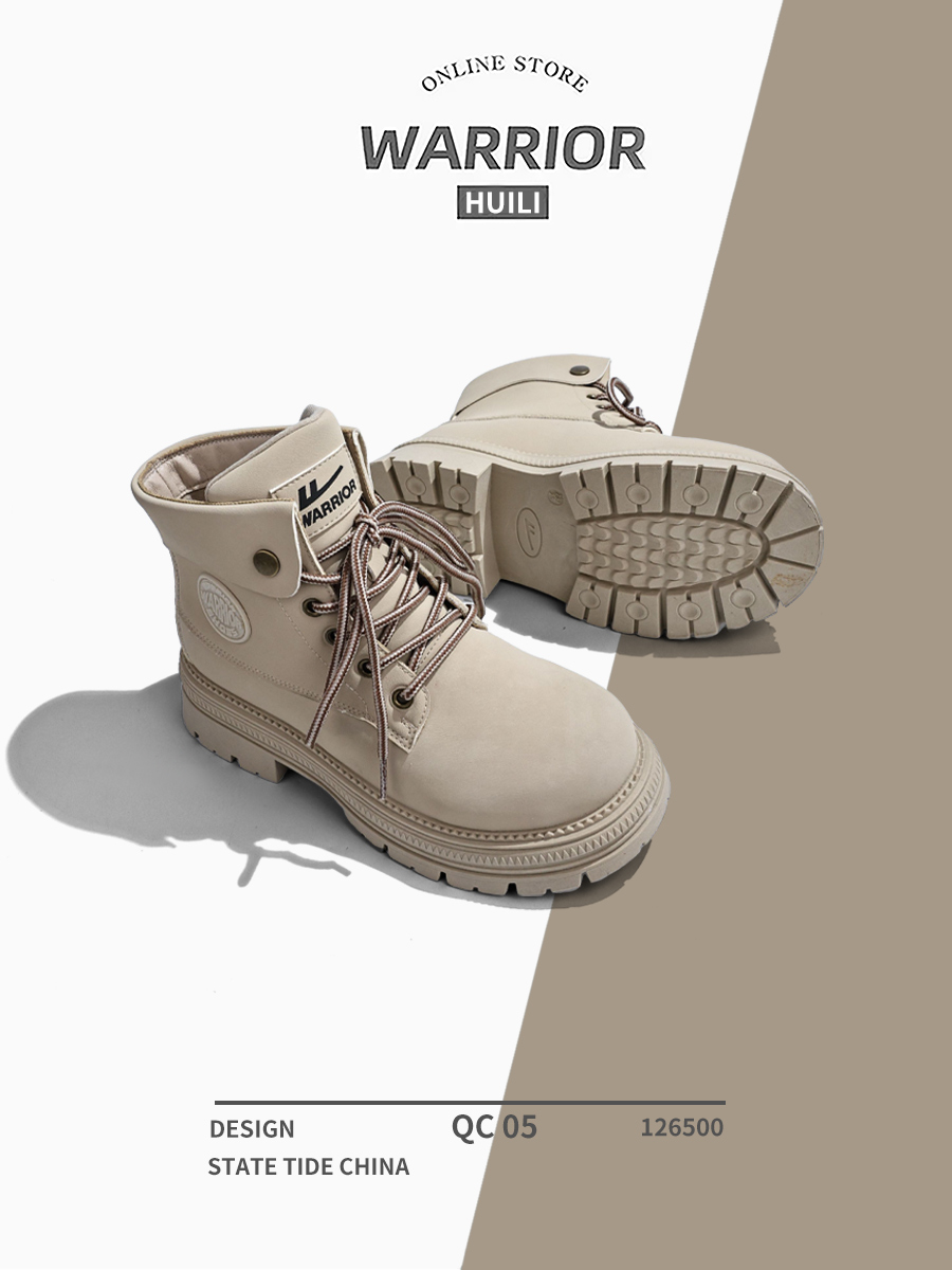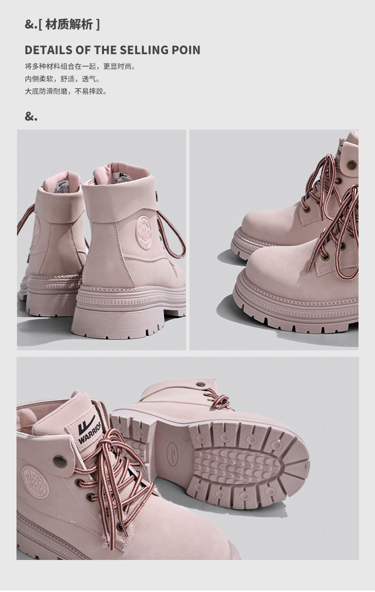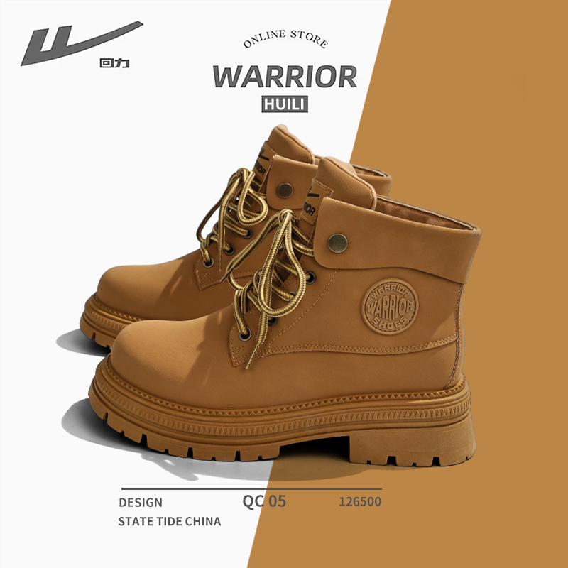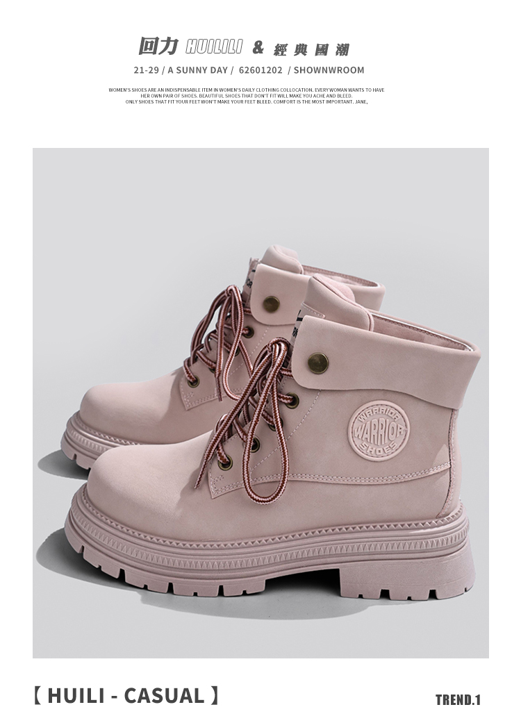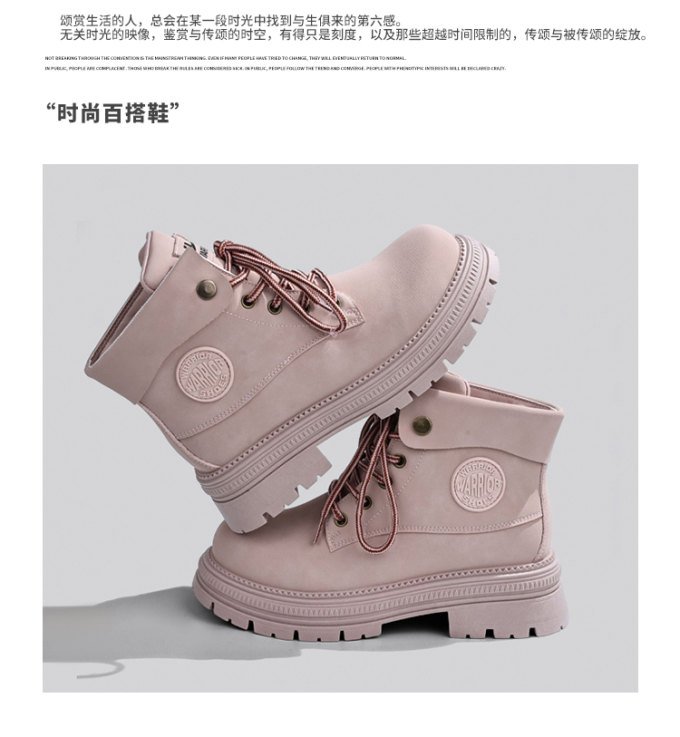 回力女鞋厚底加绒马丁靴秋冬季新款百搭英伦风短靴子复古大黄靴潮