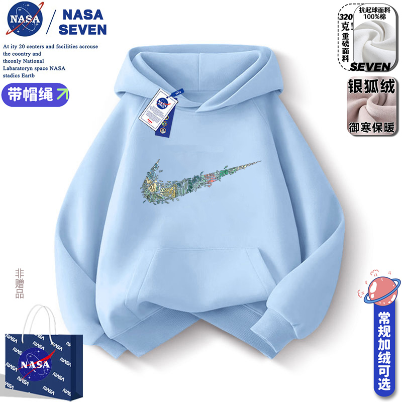 NASA男童连帽卫衣秋冬外套2025新款潮牌中大童男孩上衣儿童运动服