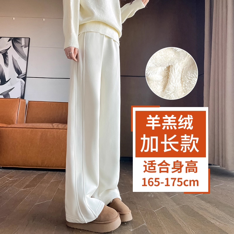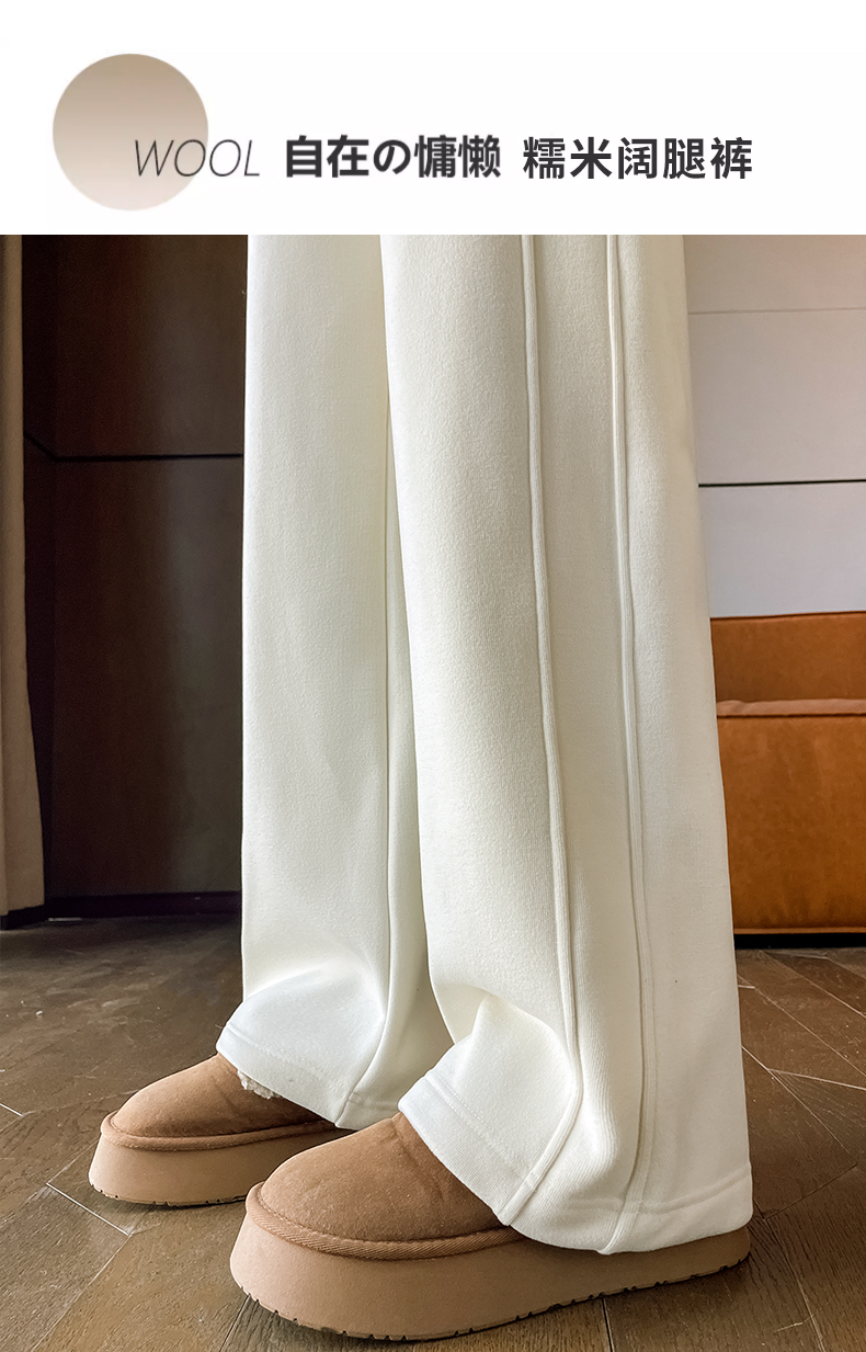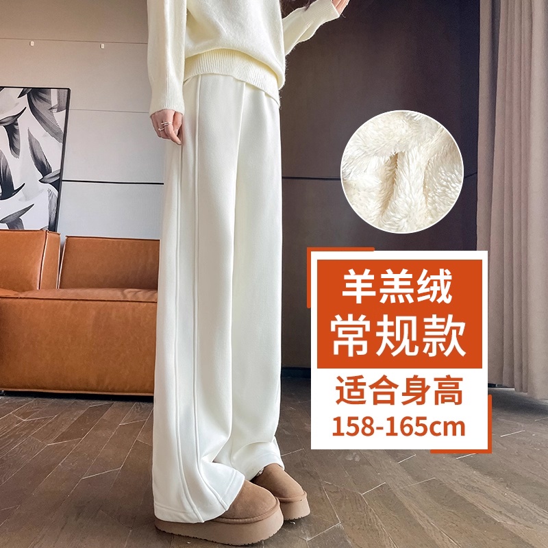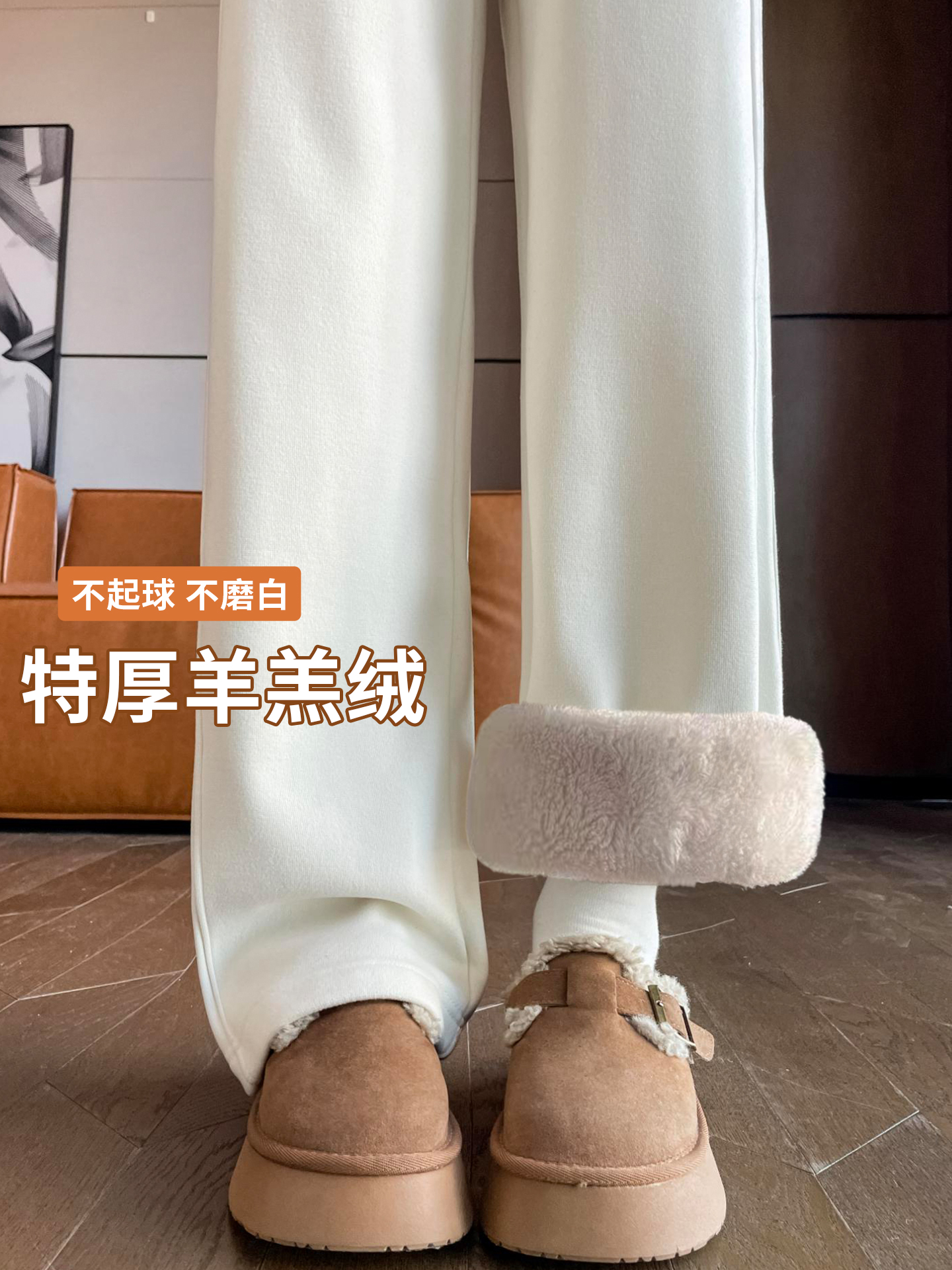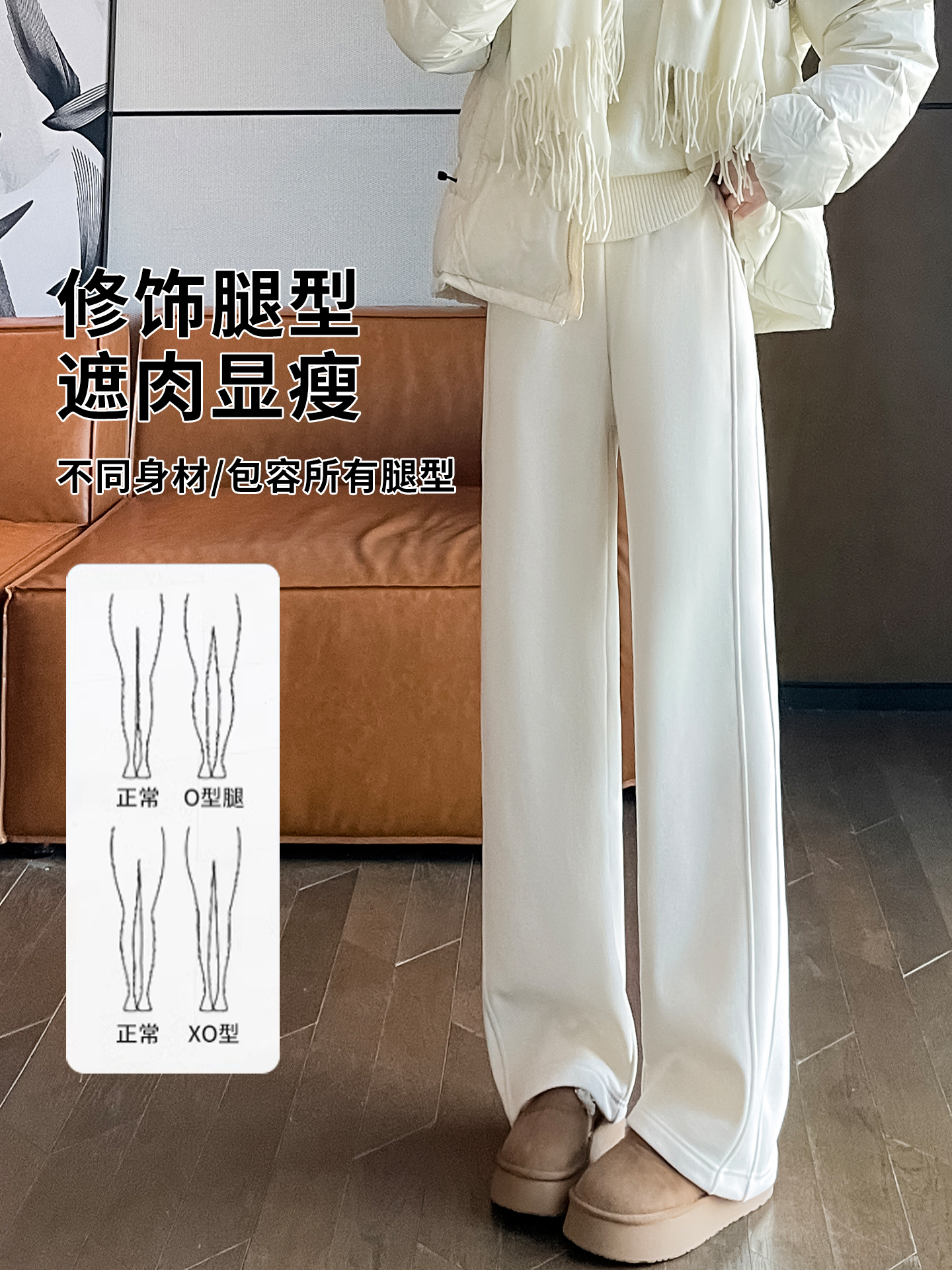 白色糯米裤女2025年秋冬羊羔绒高腰垂感糯米裤休闲直筒窄版阔腿裤