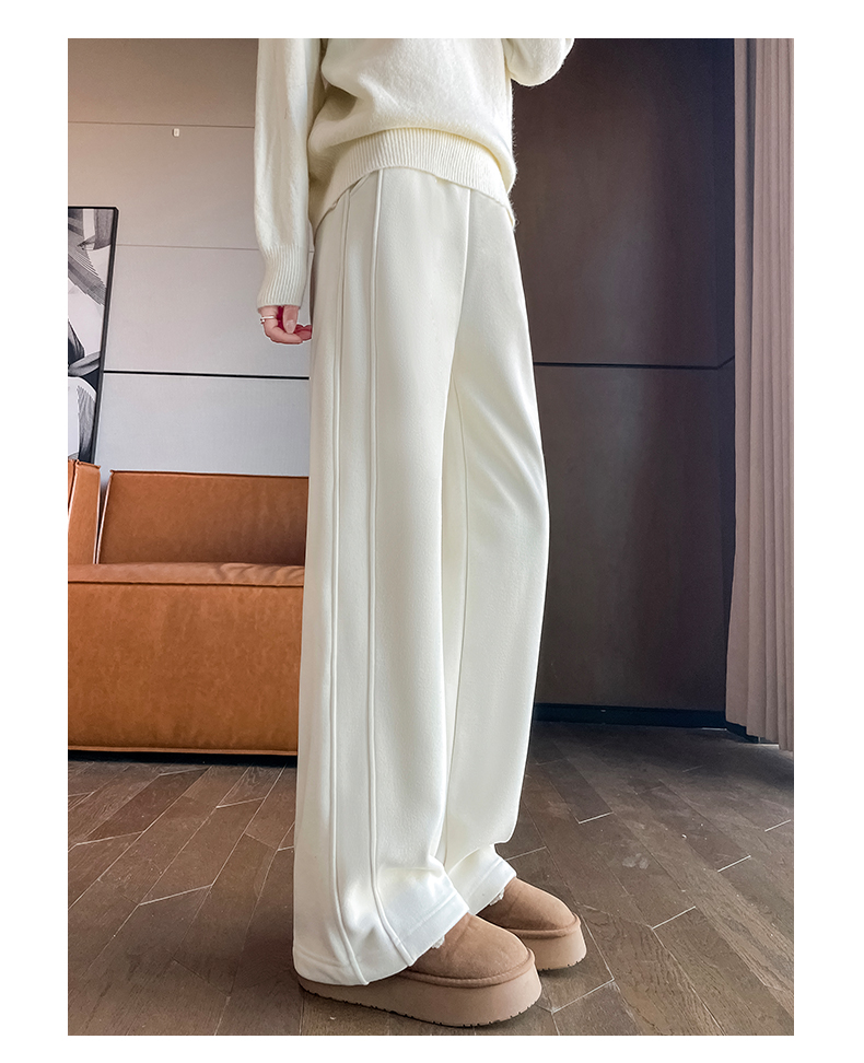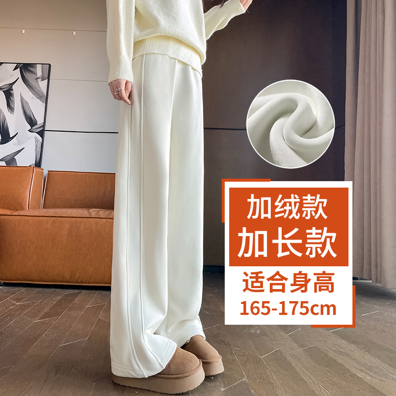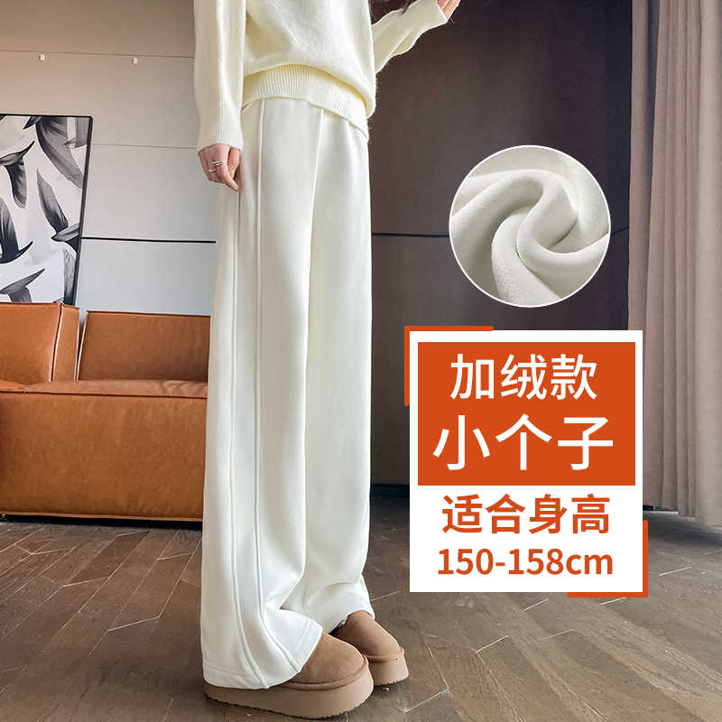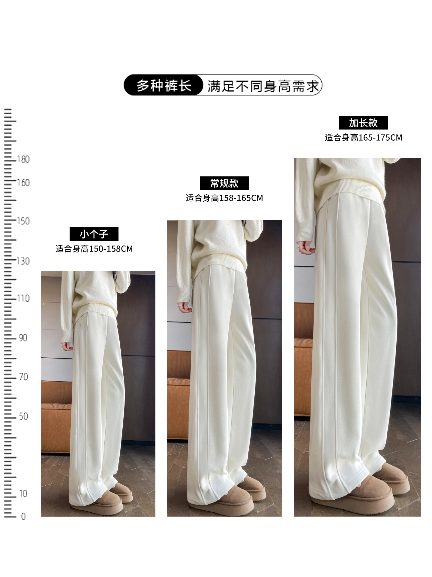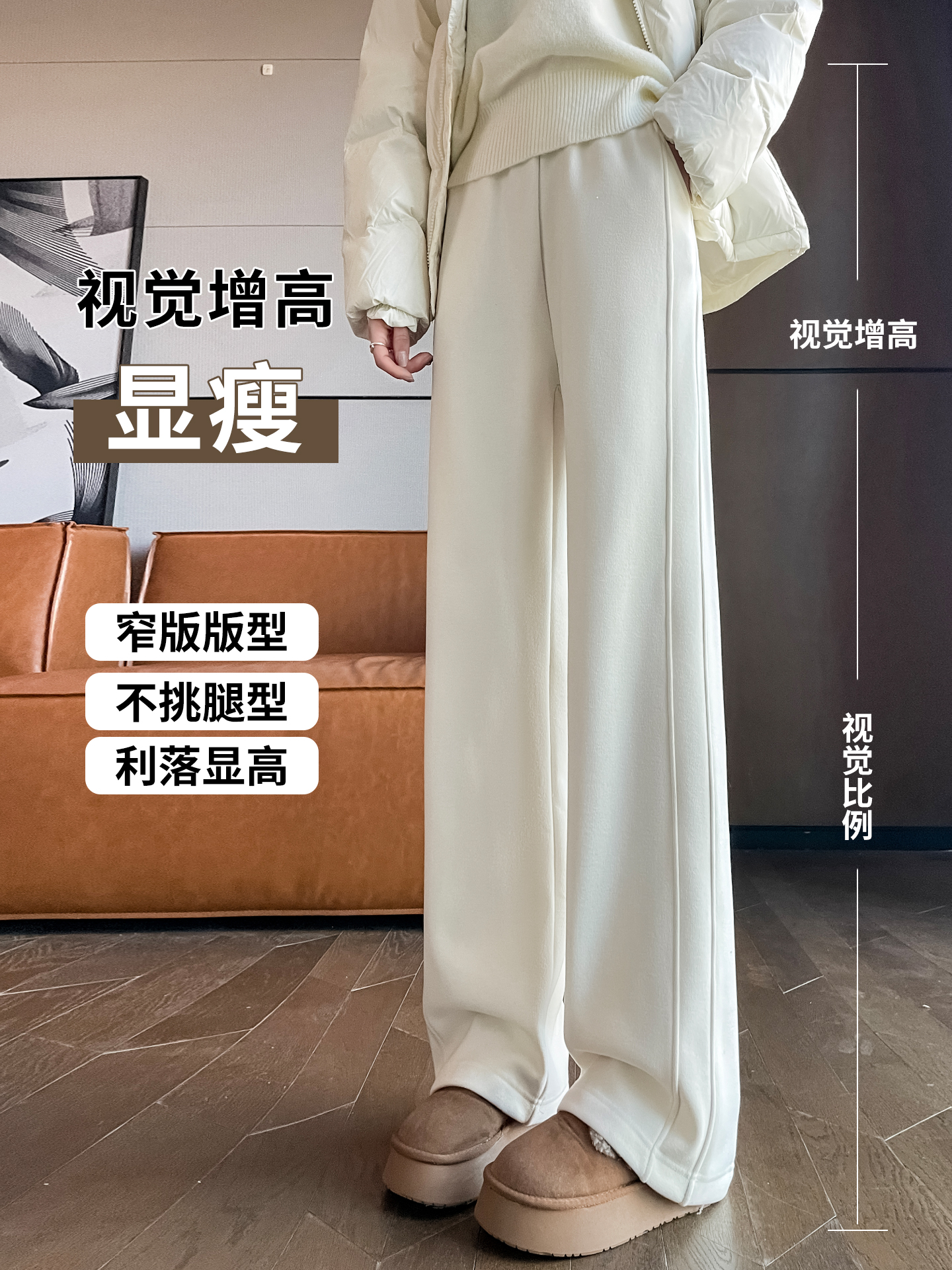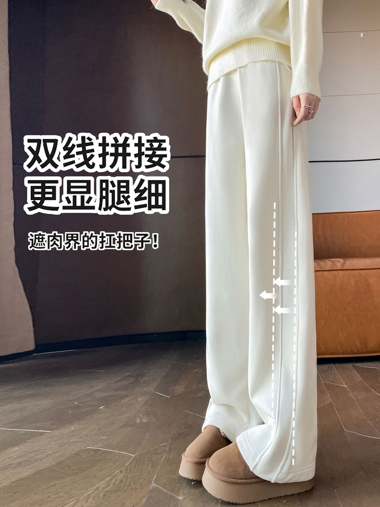 白色糯米裤女2025年秋冬羊羔绒高腰垂感糯米裤休闲直筒窄版阔腿裤