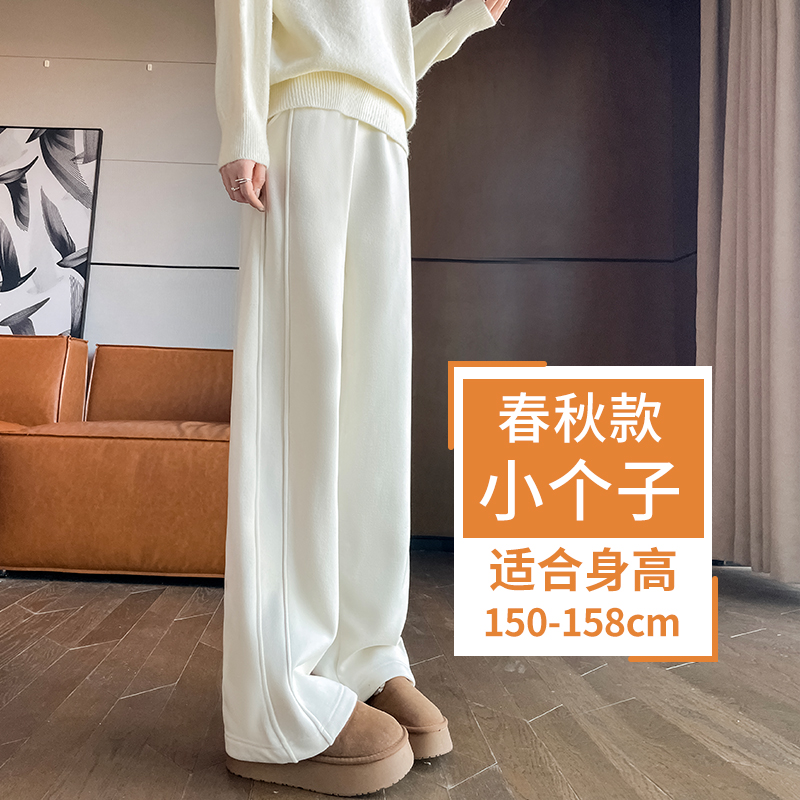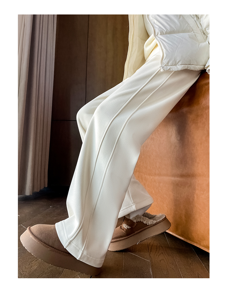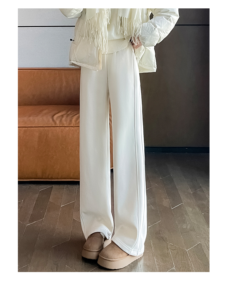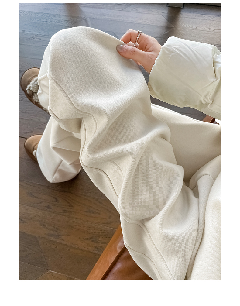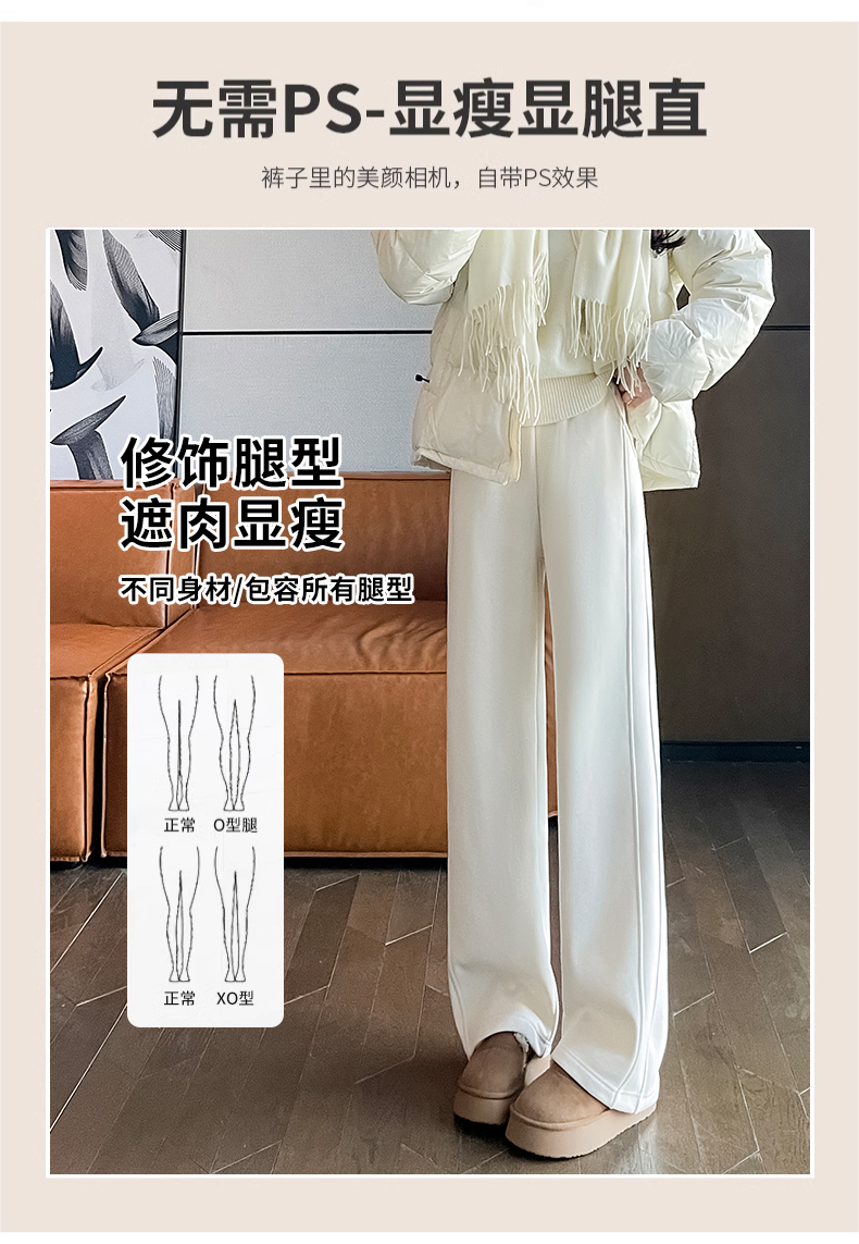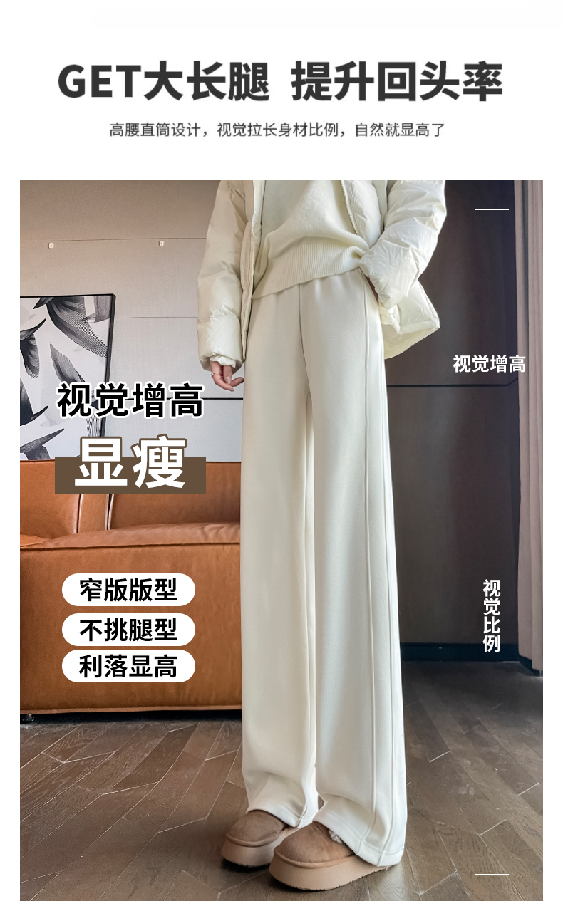 白色糯米裤女2025年秋冬羊羔绒高腰垂感糯米裤休闲直筒窄版阔腿裤