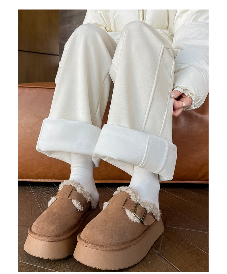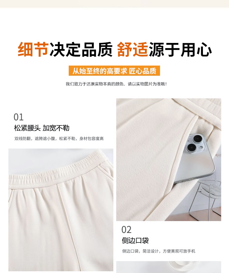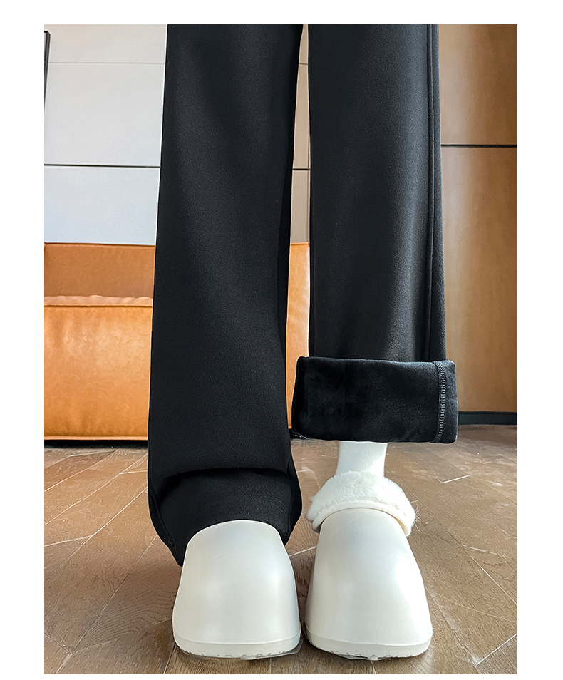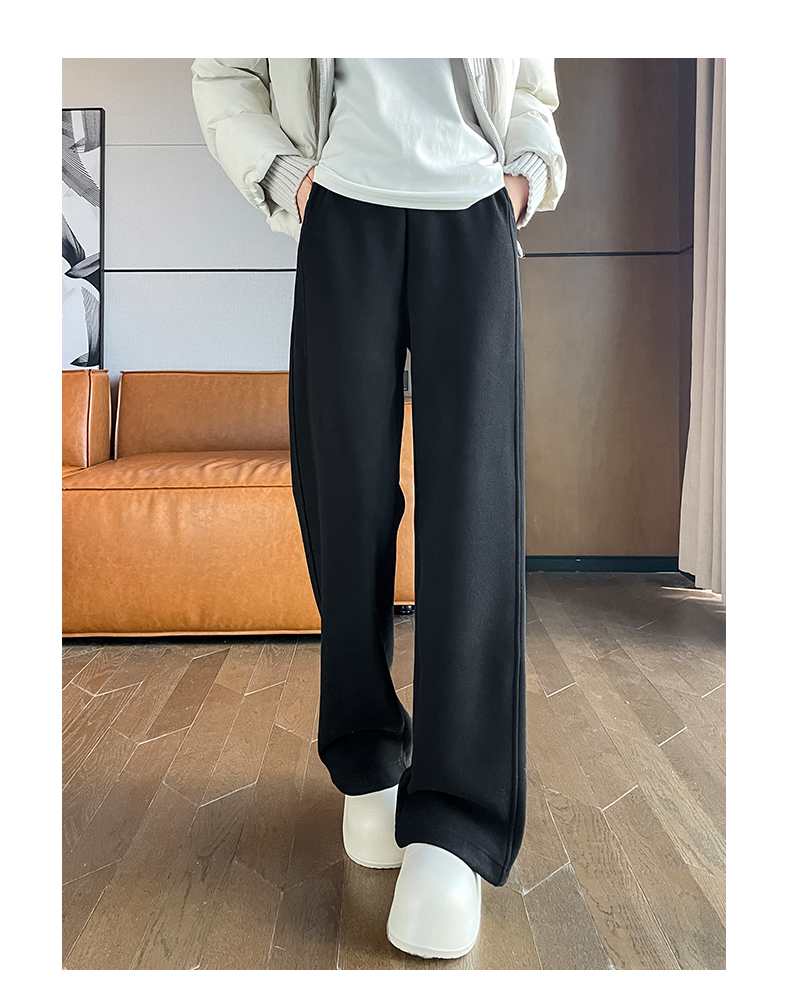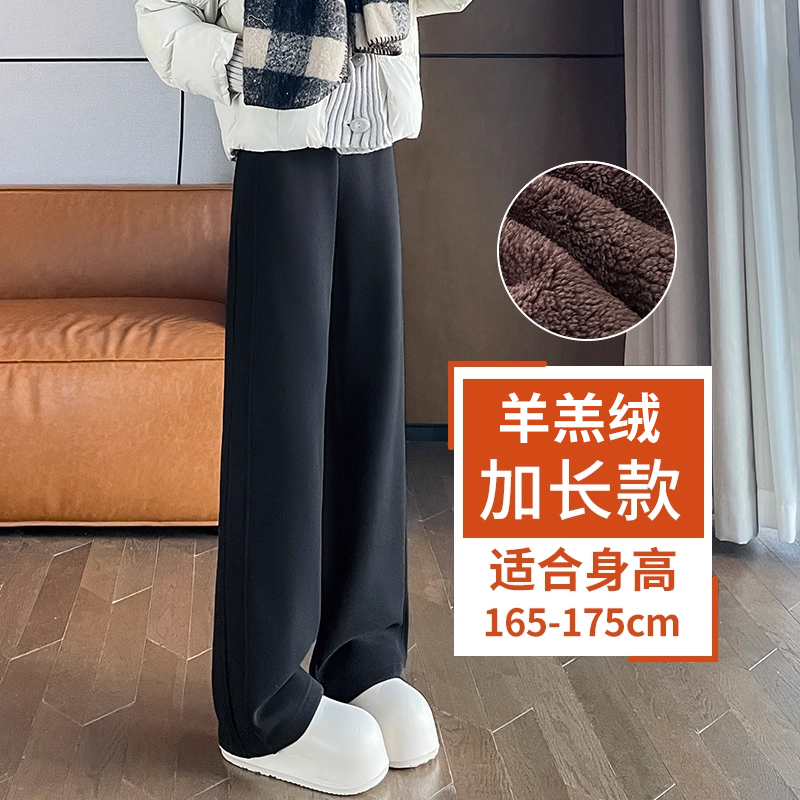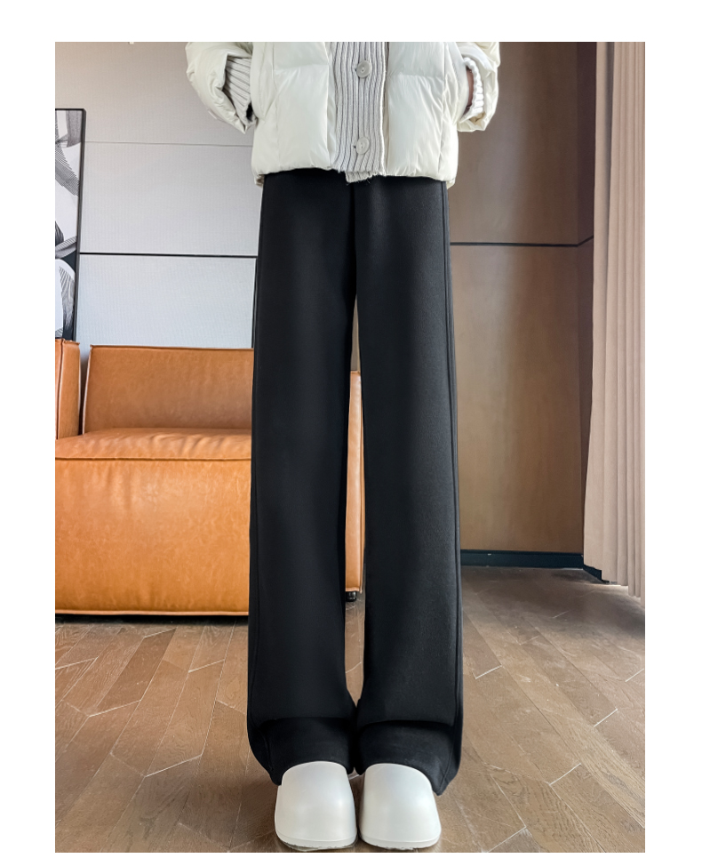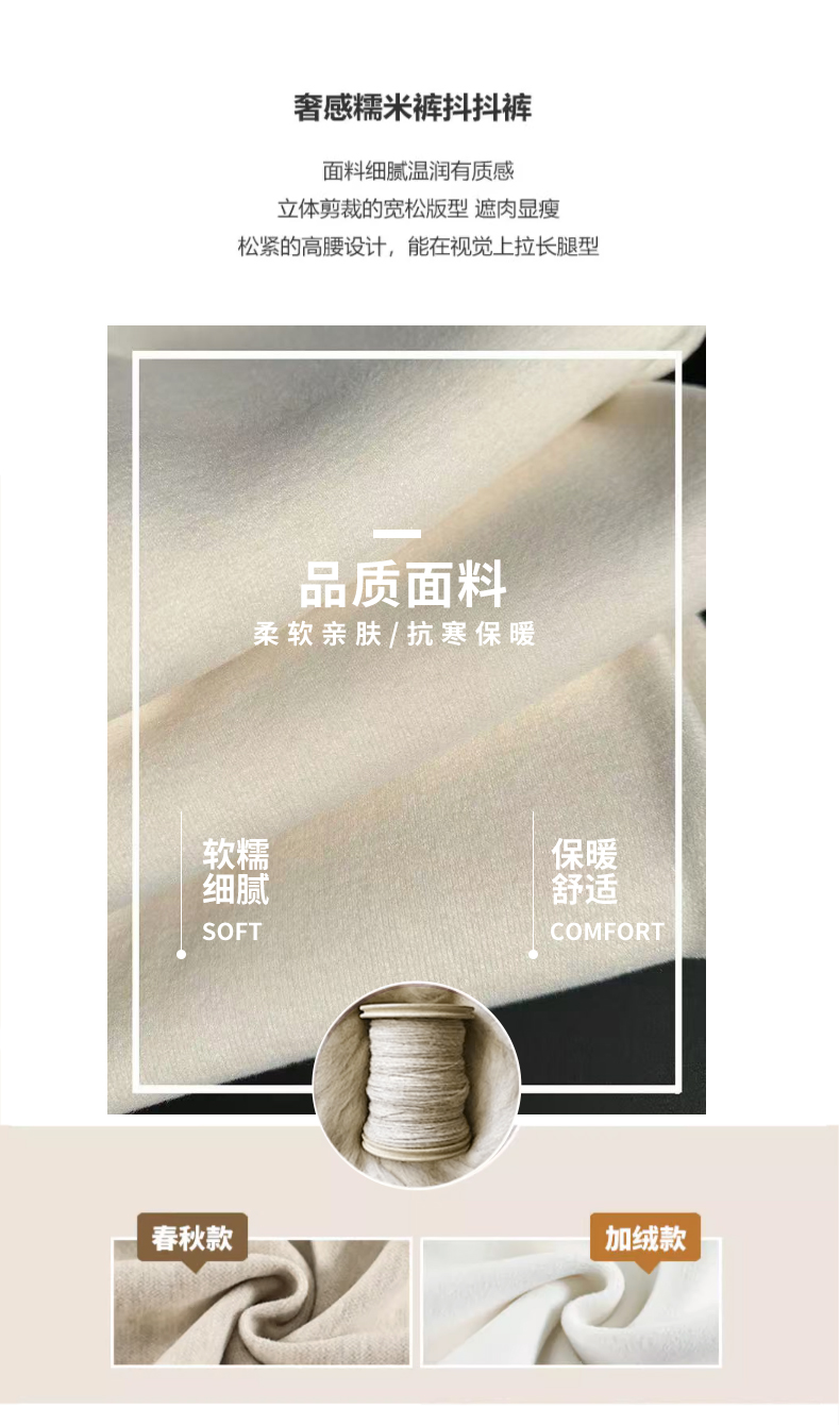 白色糯米裤女2025年秋冬羊羔绒高腰垂感糯米裤休闲直筒窄版阔腿裤