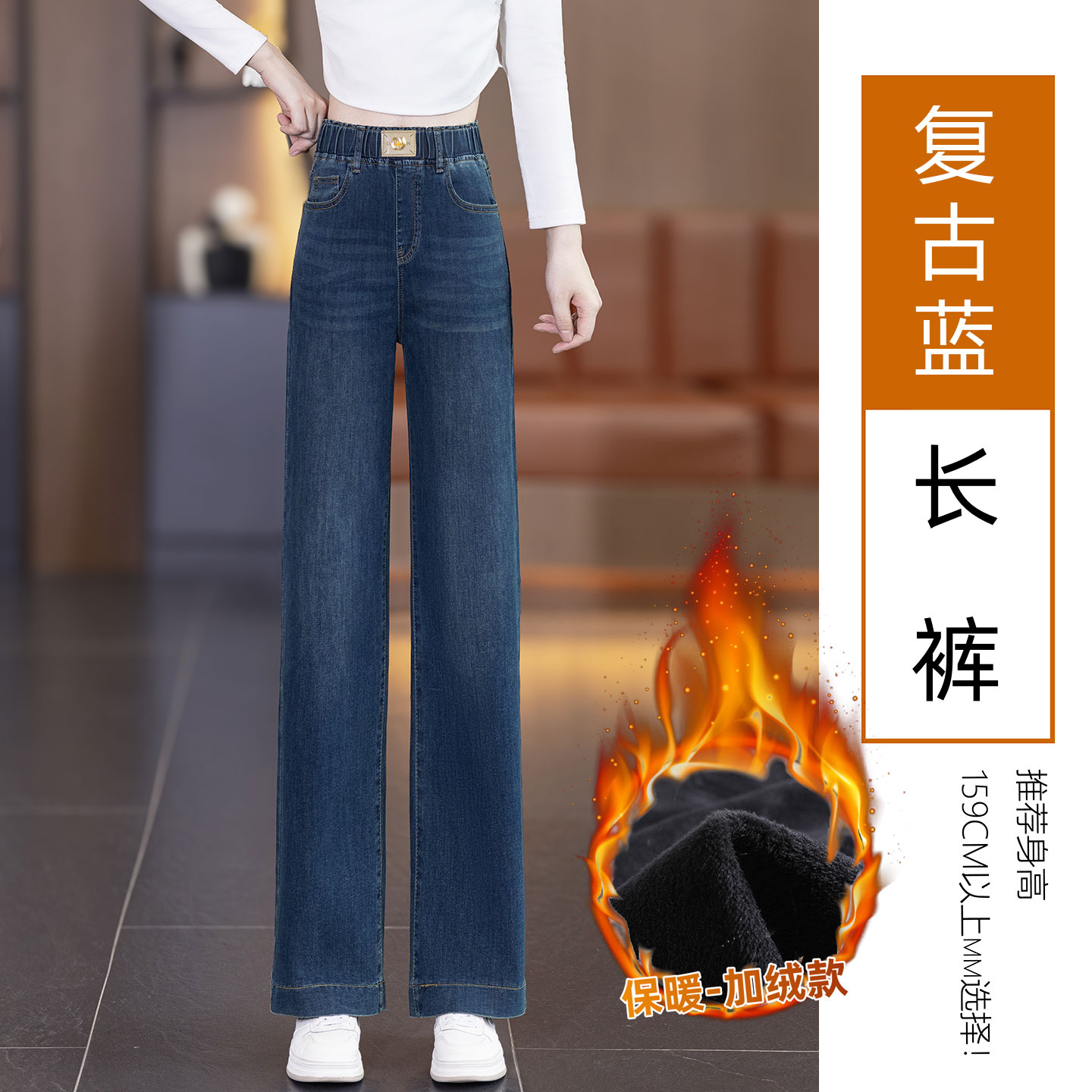 冬季加绒直筒牛仔裤女2025新爆款高腰显瘦小个子宽松窄版阔腿裤子