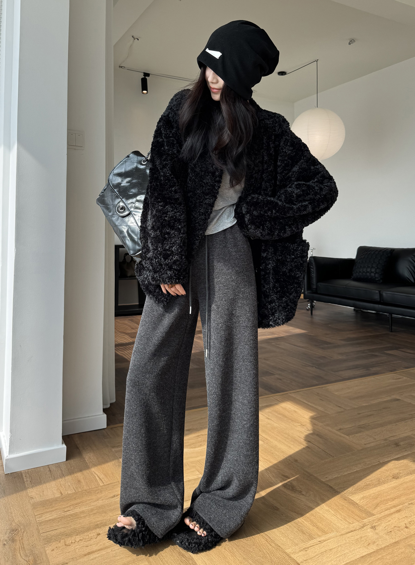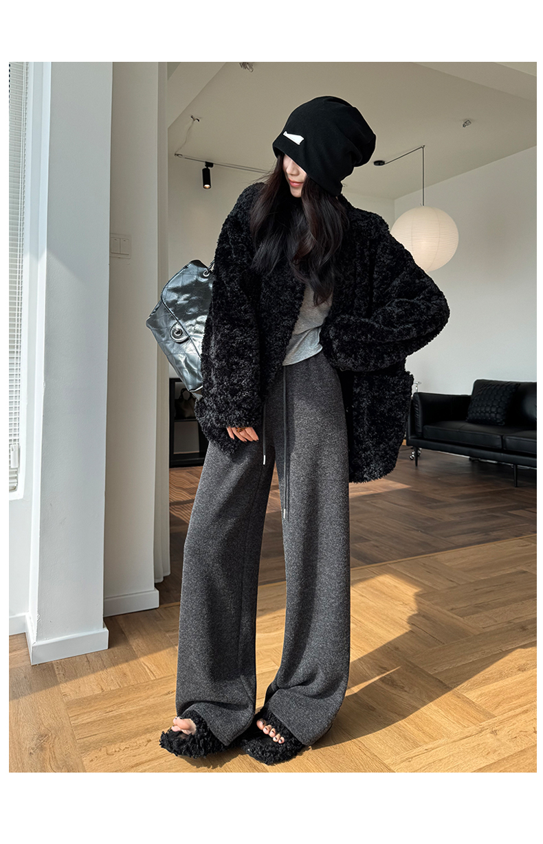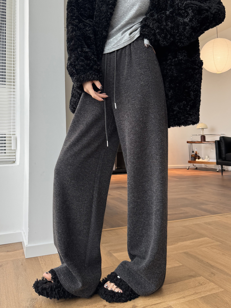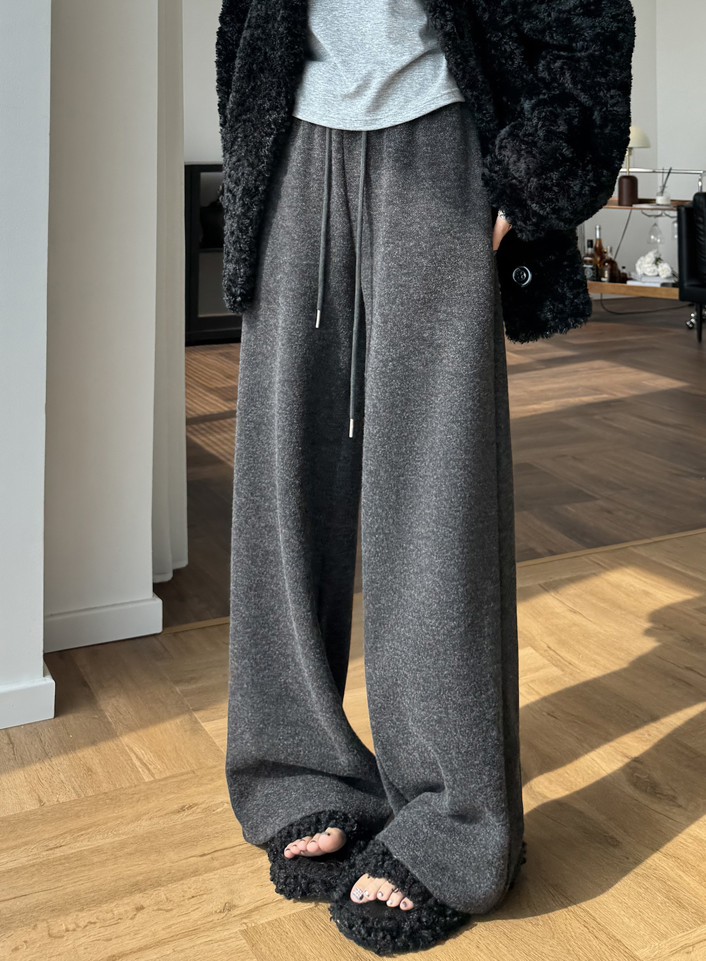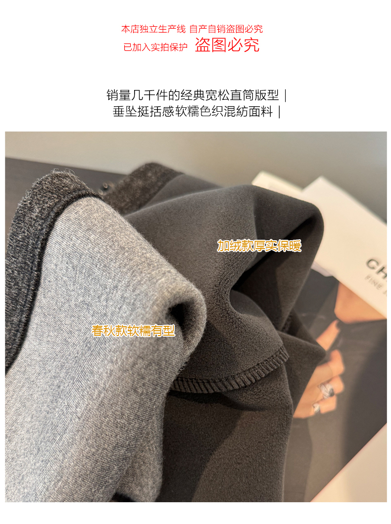 灰色阔腿裤加绒裤子女2025新款冬加厚直筒休闲垂坠感糯米裤小个子