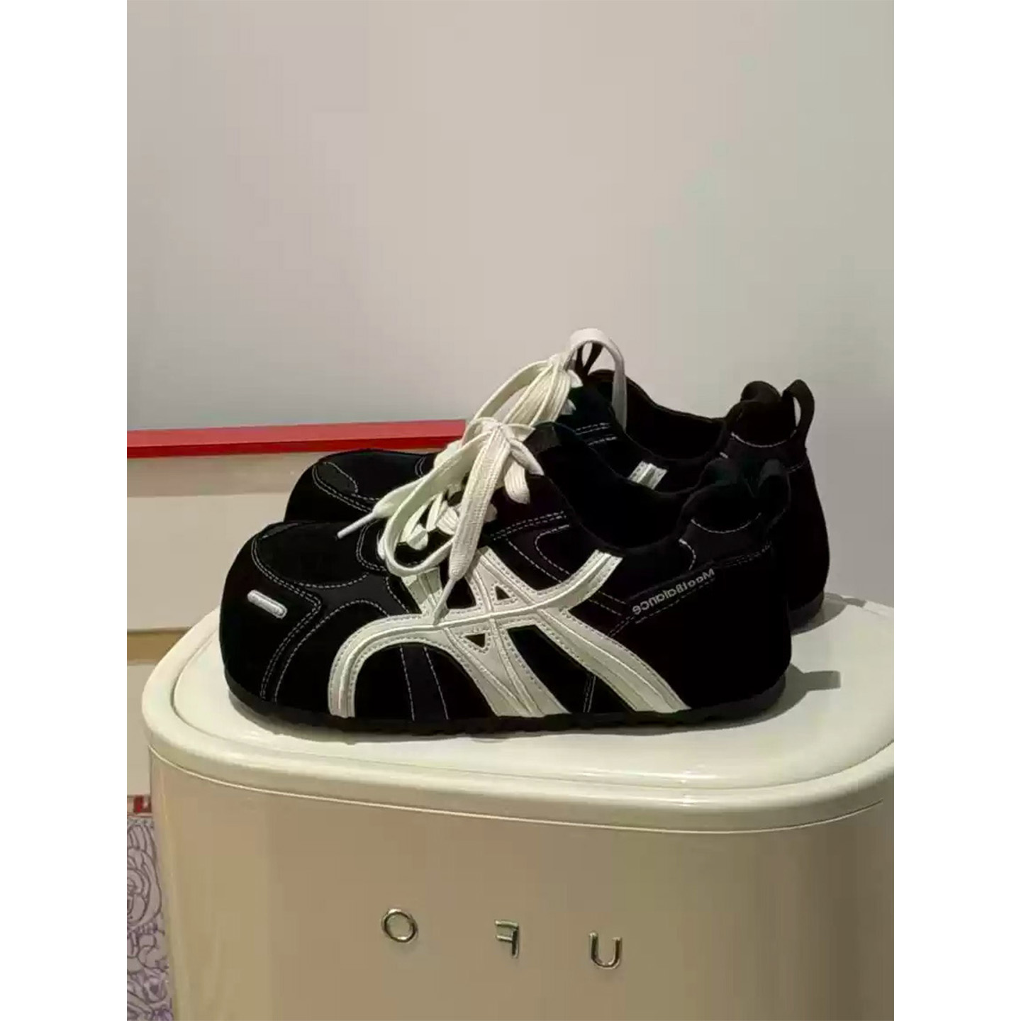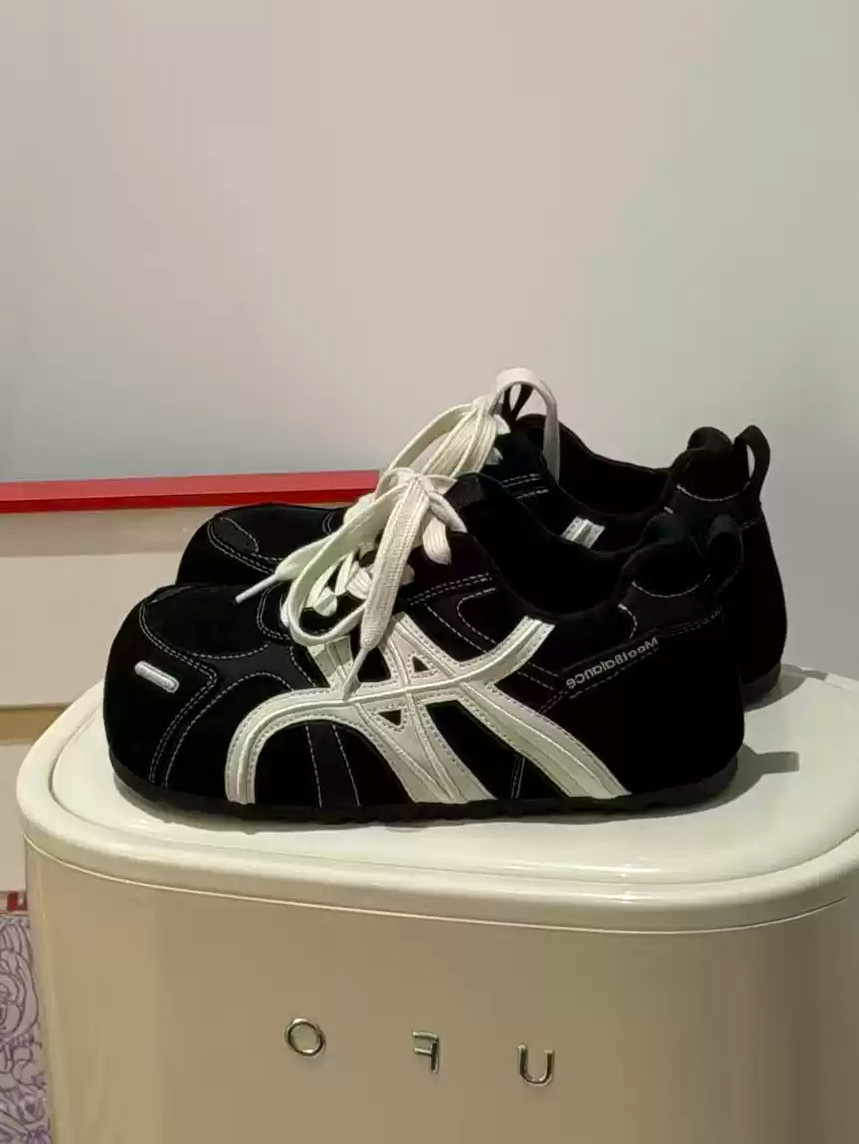 丑萌复古显脚小泡芙德训鞋女2025秋冬新款内增高休闲圆头面包板鞋