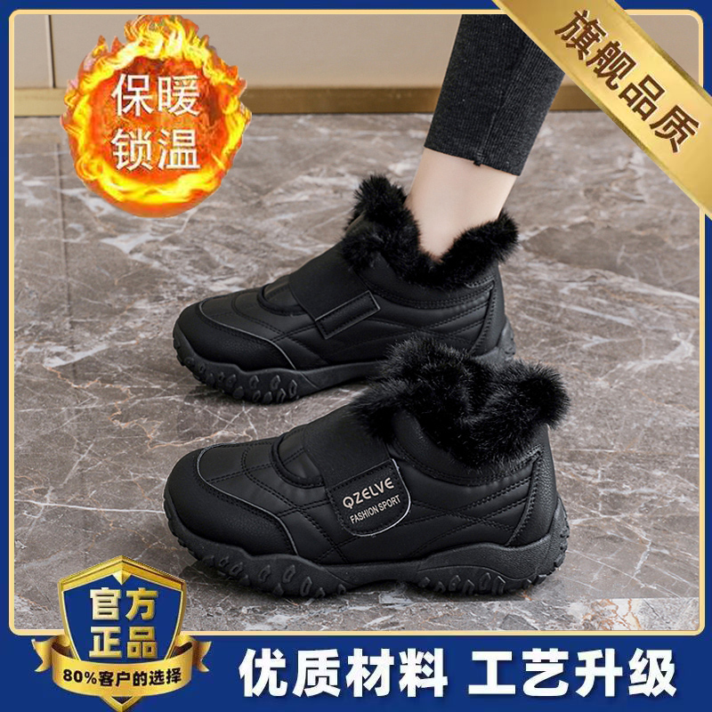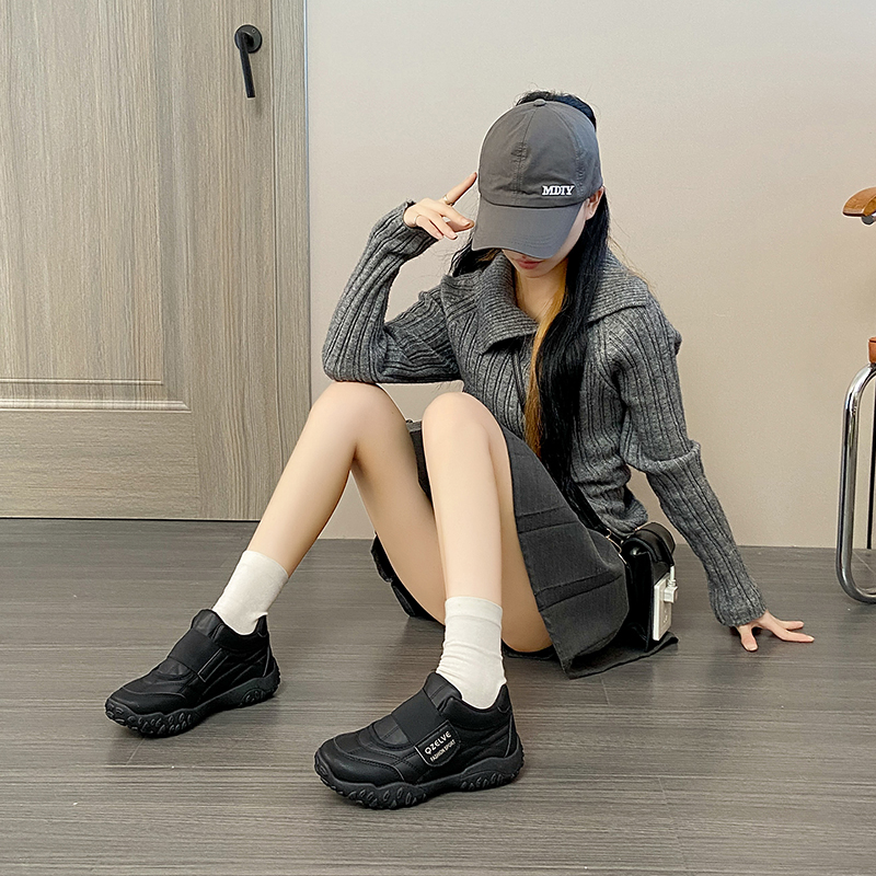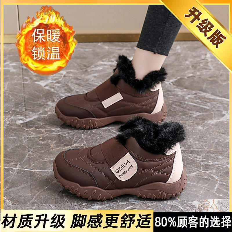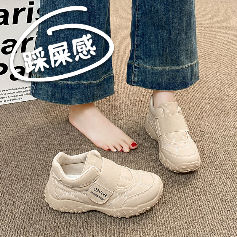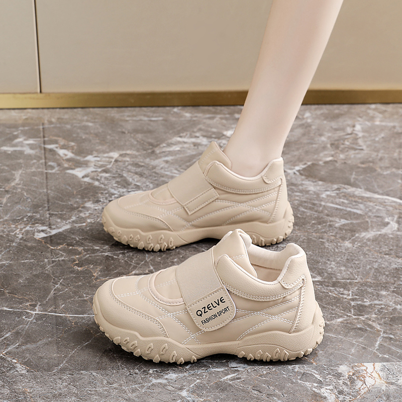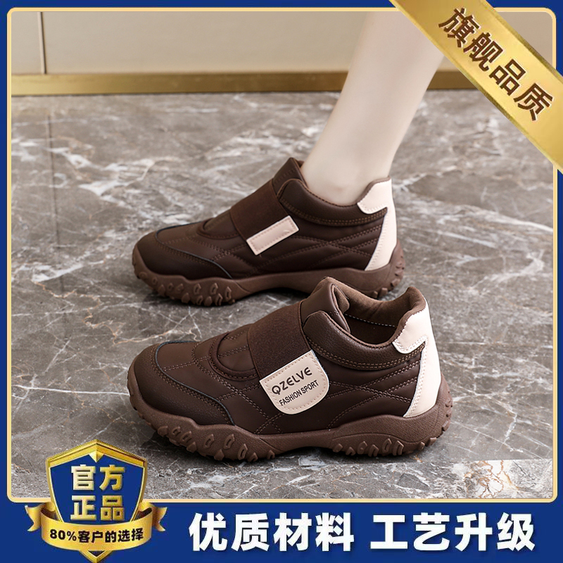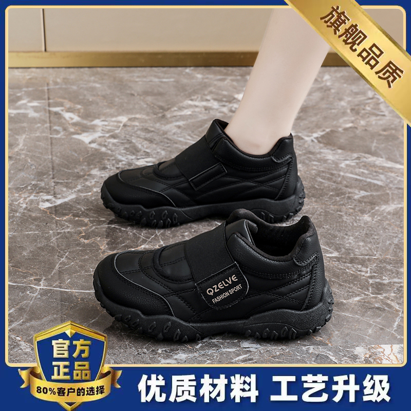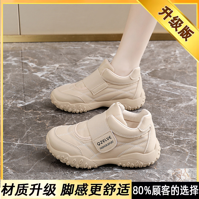 白鹿同款真皮加绒运动鞋女秋冬爆款一脚蹬二棉鞋软底孕妇休闲鞋