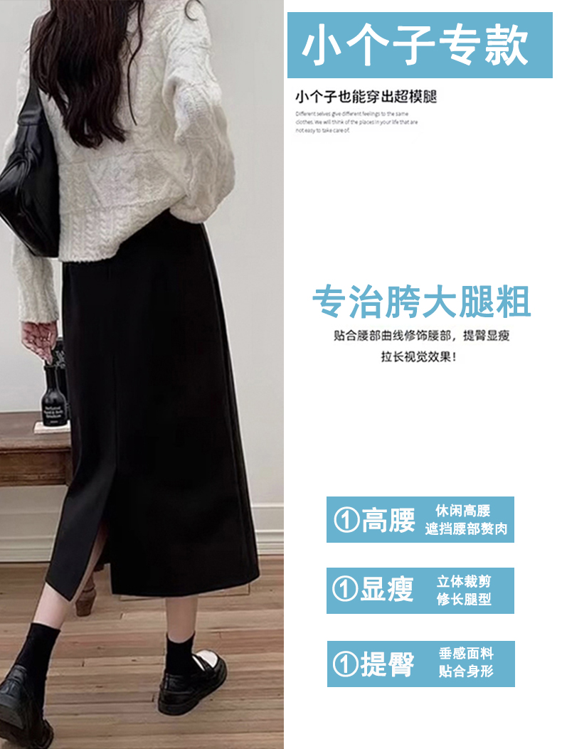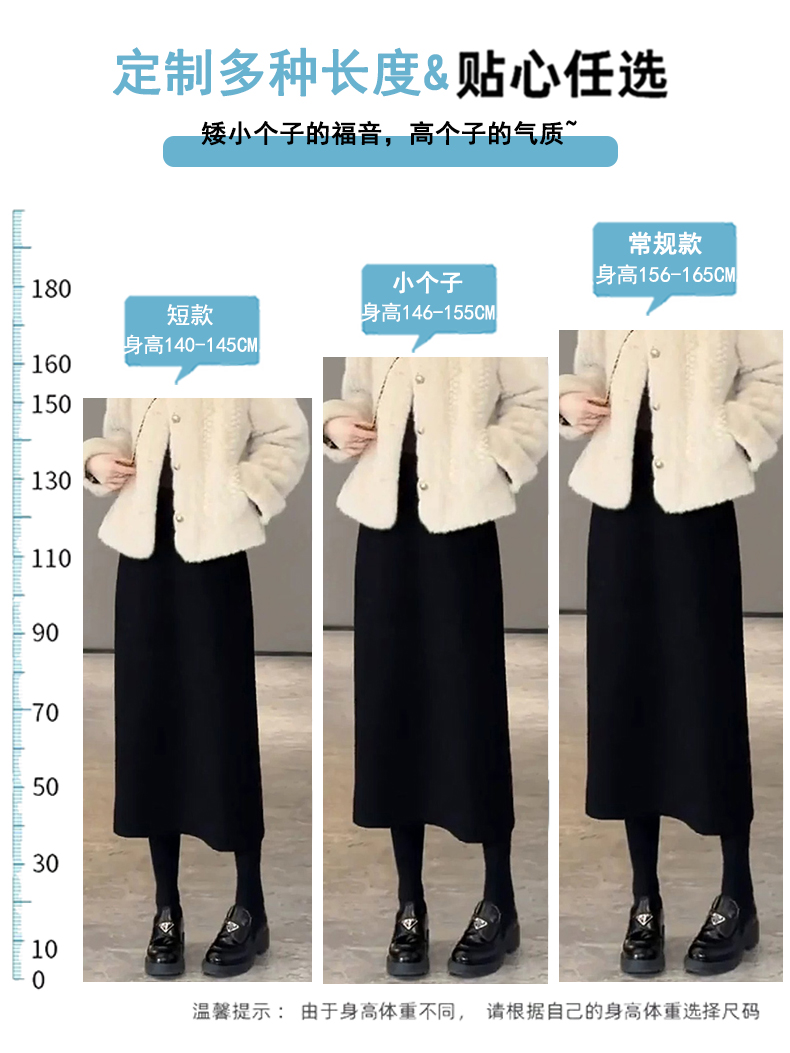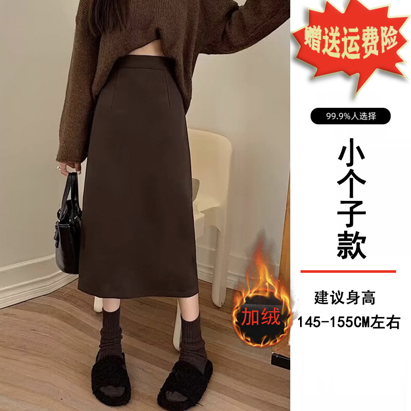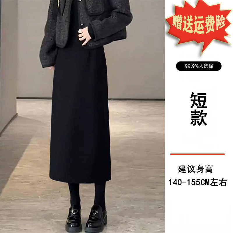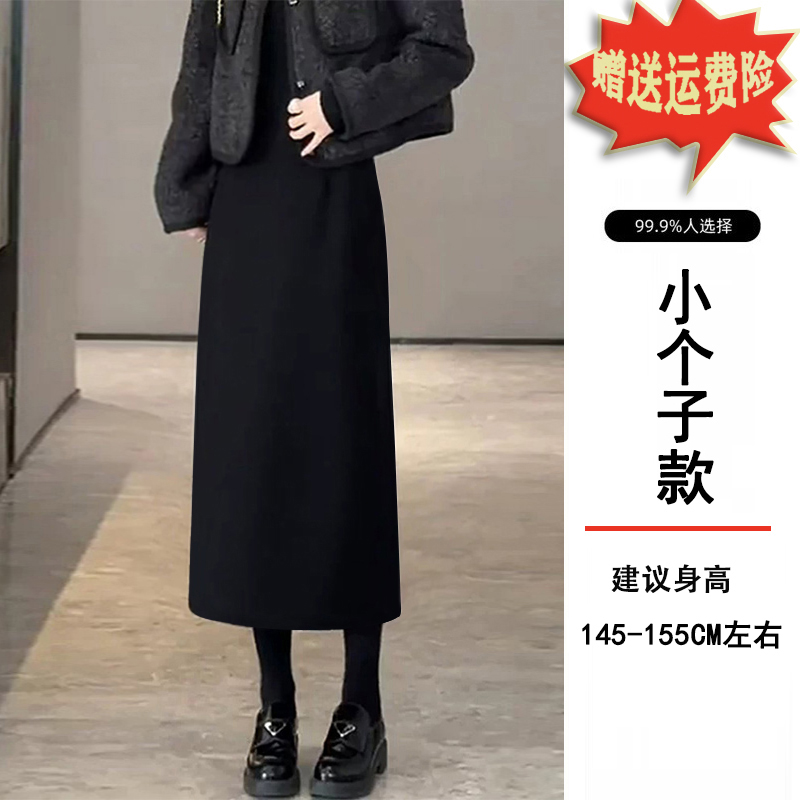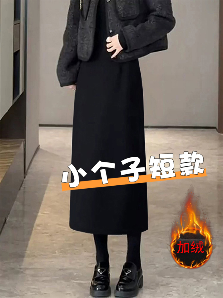 加绒加厚小个子黑色毛呢半身裙子女士秋冬季显瘦中长款a字包臀裙