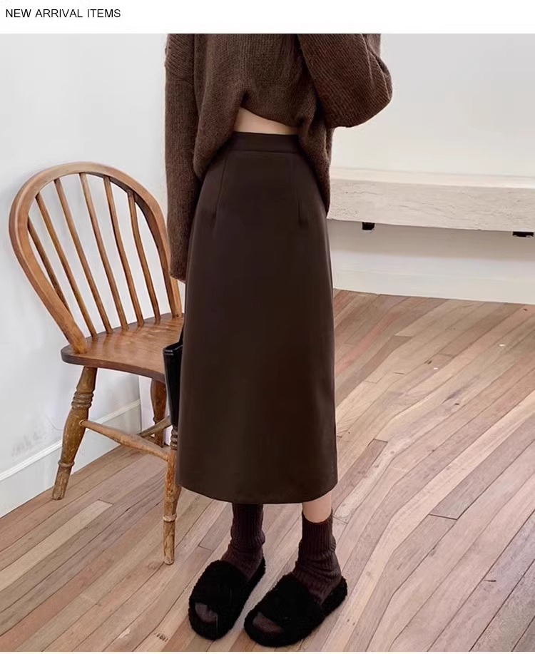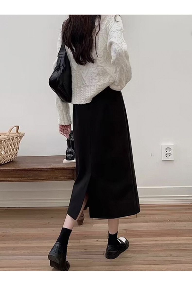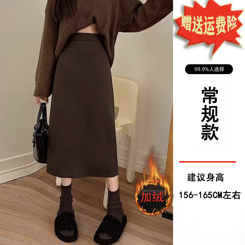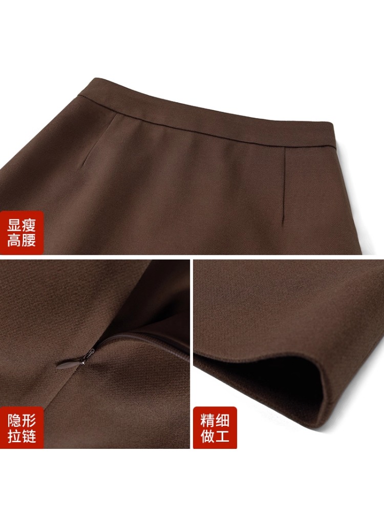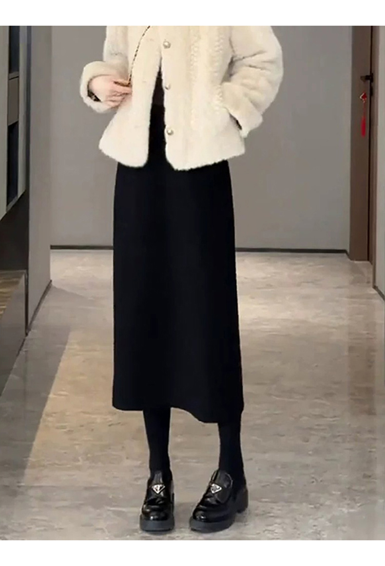 加绒加厚小个子黑色毛呢半身裙子女士秋冬季显瘦中长款a字包臀裙