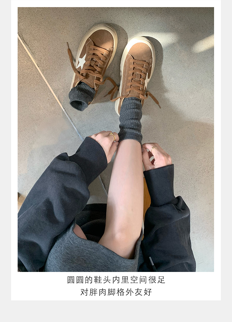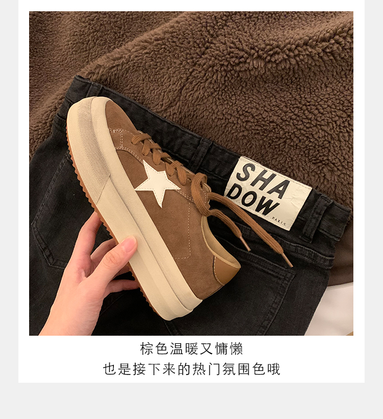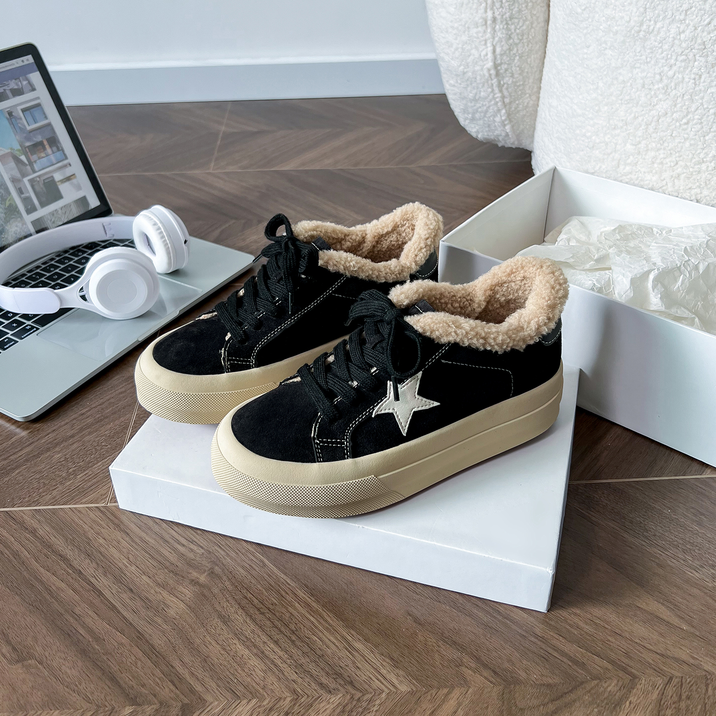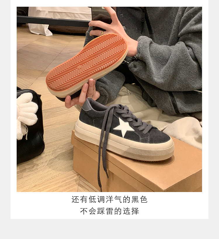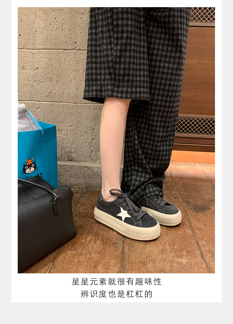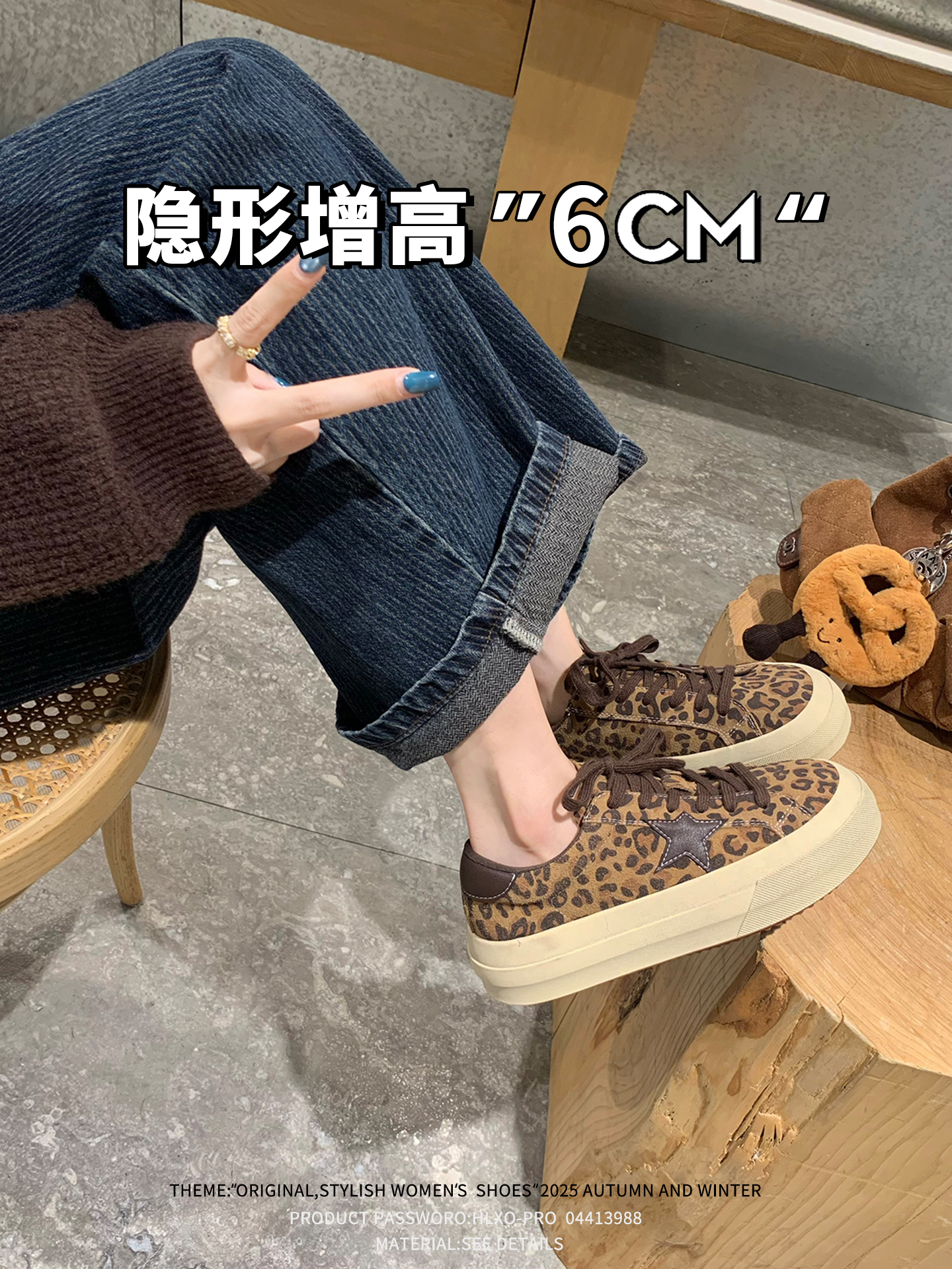增高6cm~ 真皮加绒星星德训鞋女2025新款圆头系带厚底休闲板鞋女