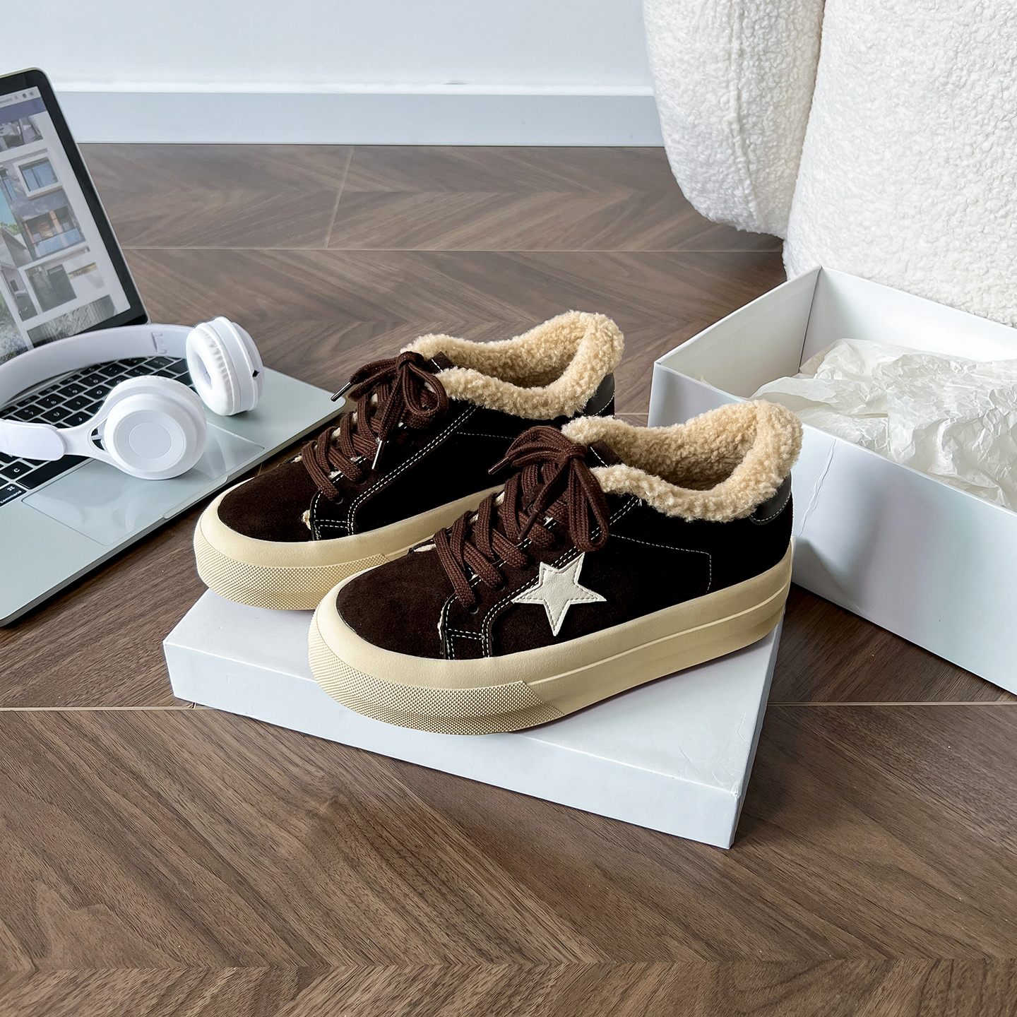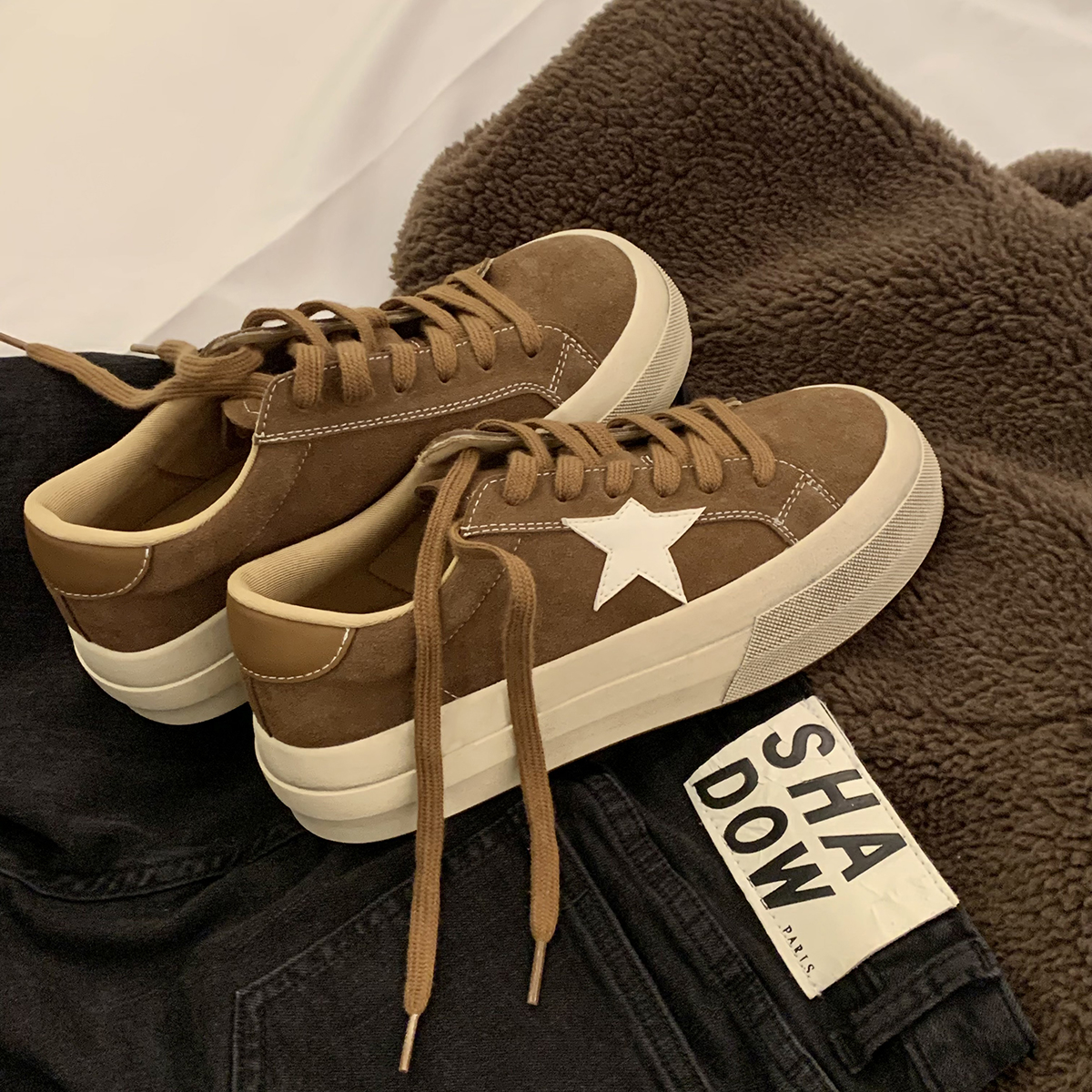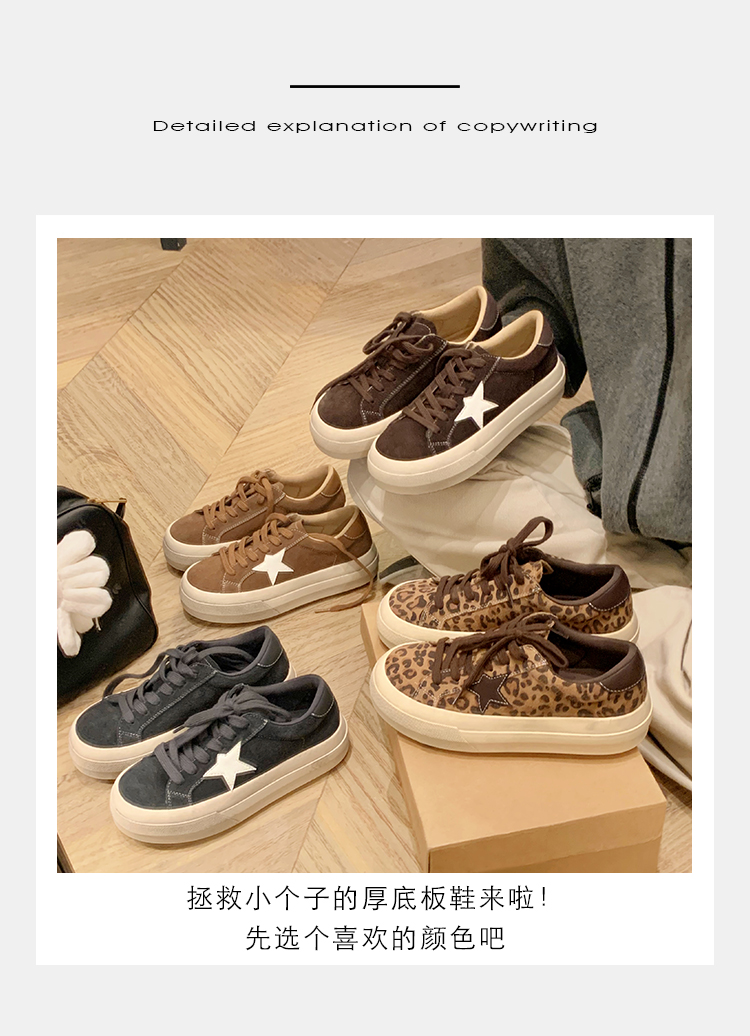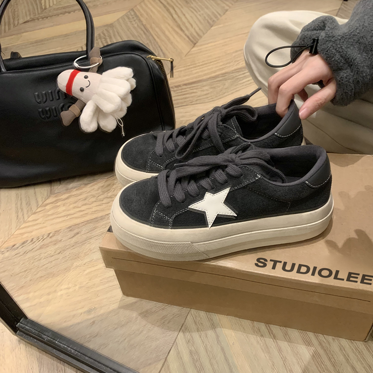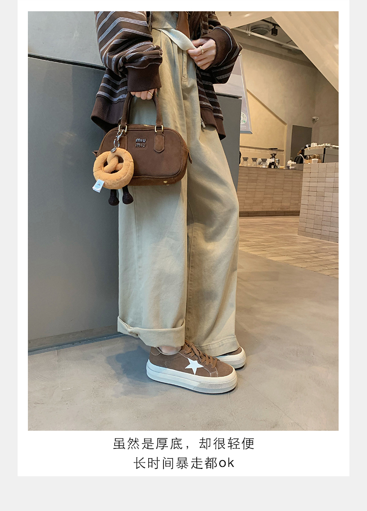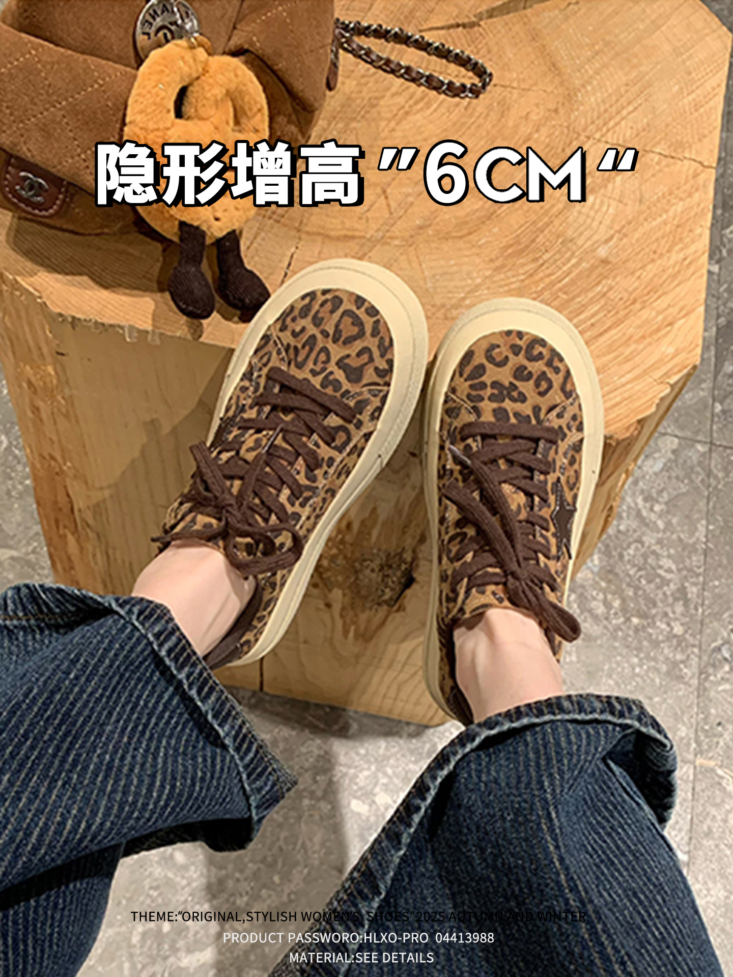 增高6cm~ 真皮加绒星星德训鞋女2025新款圆头系带厚底休闲板鞋女