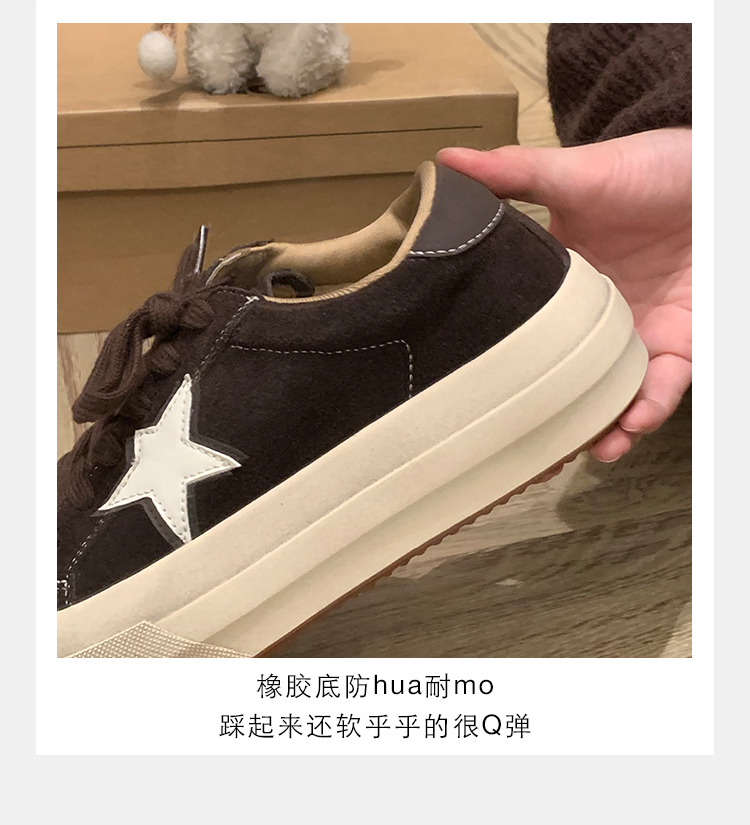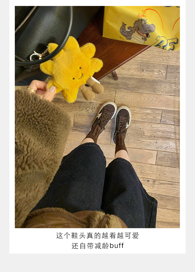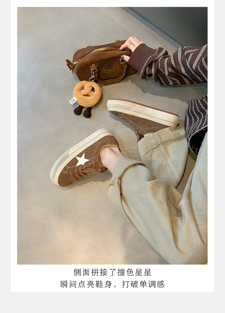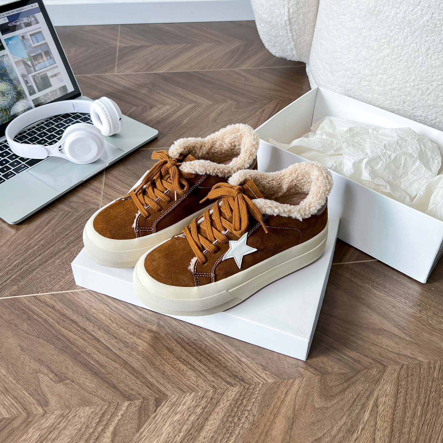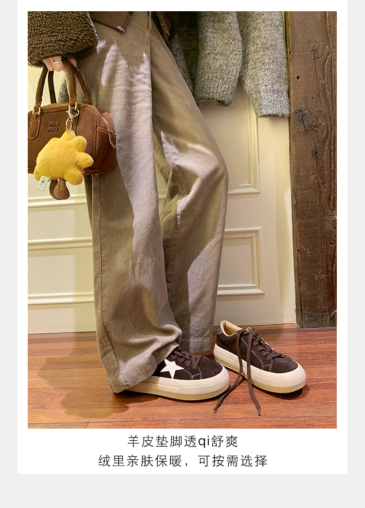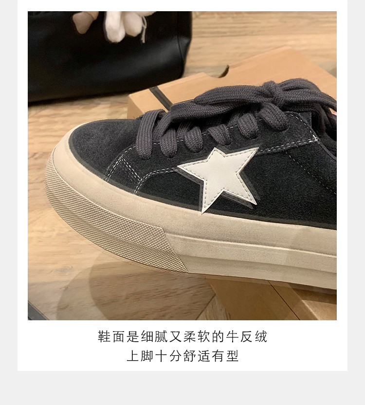 增高6cm~ 真皮加绒星星德训鞋女2025新款圆头系带厚底休闲板鞋女