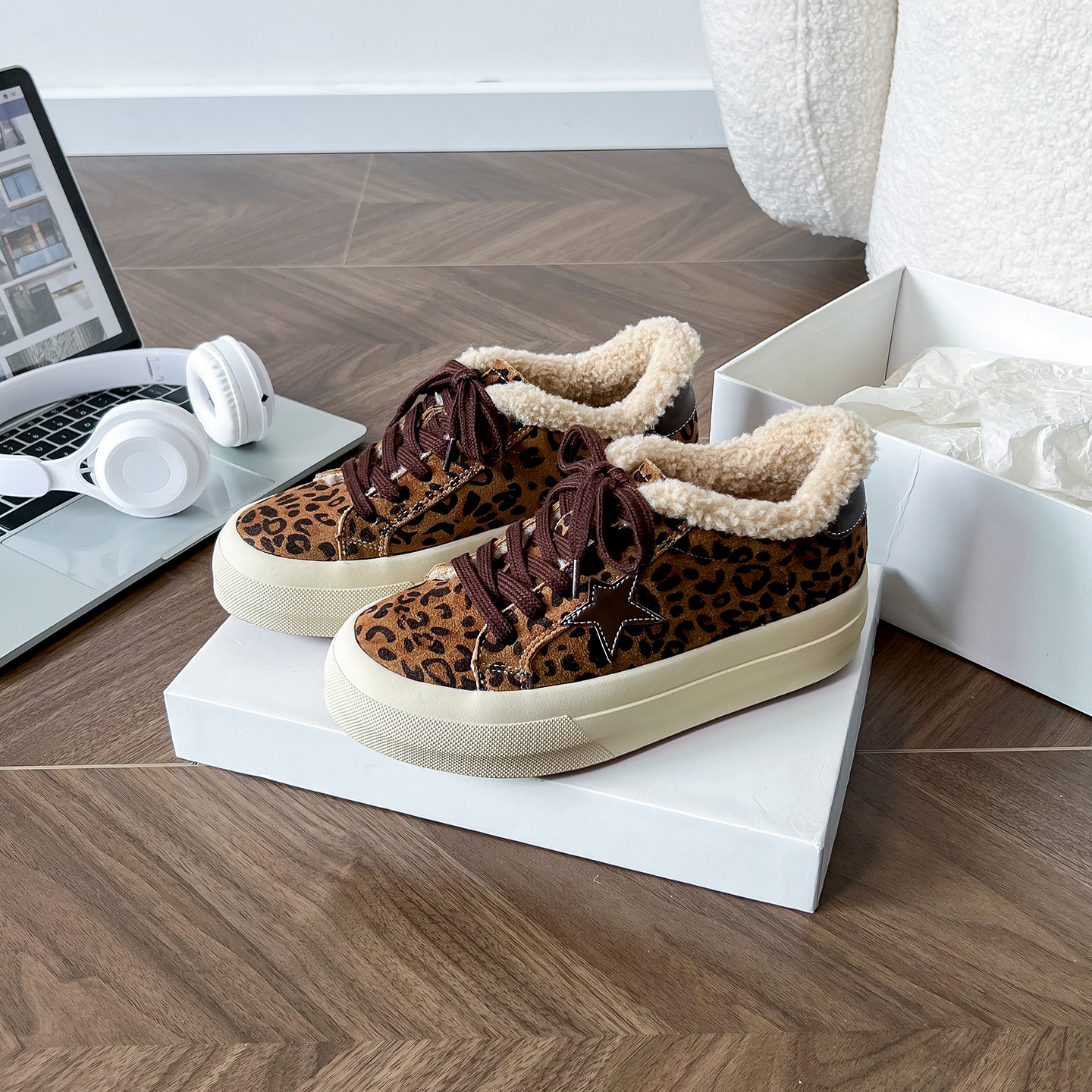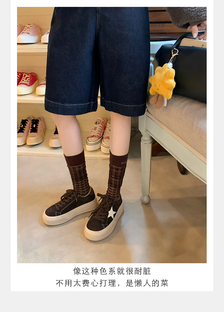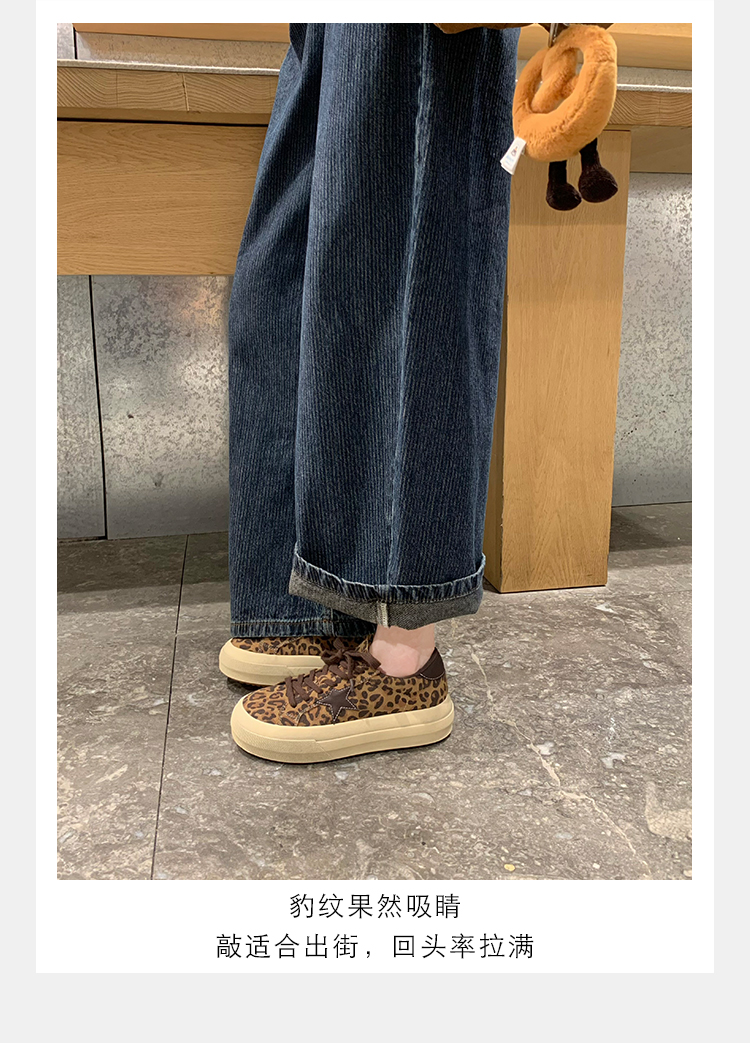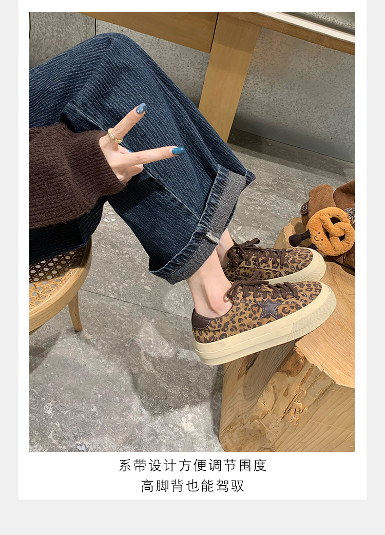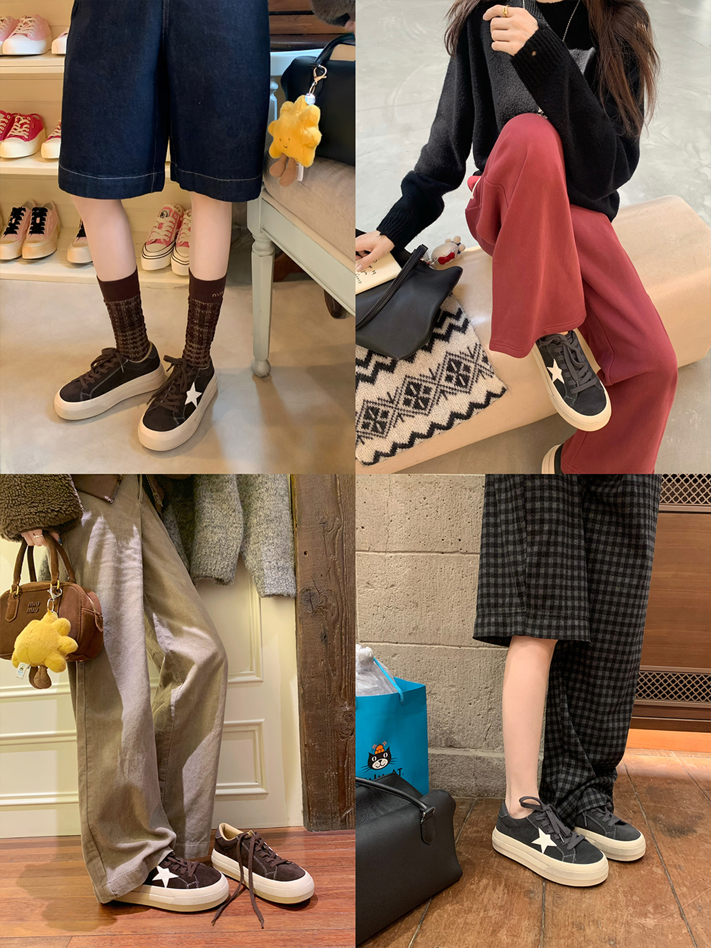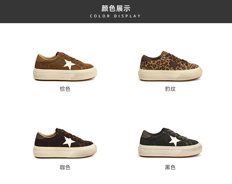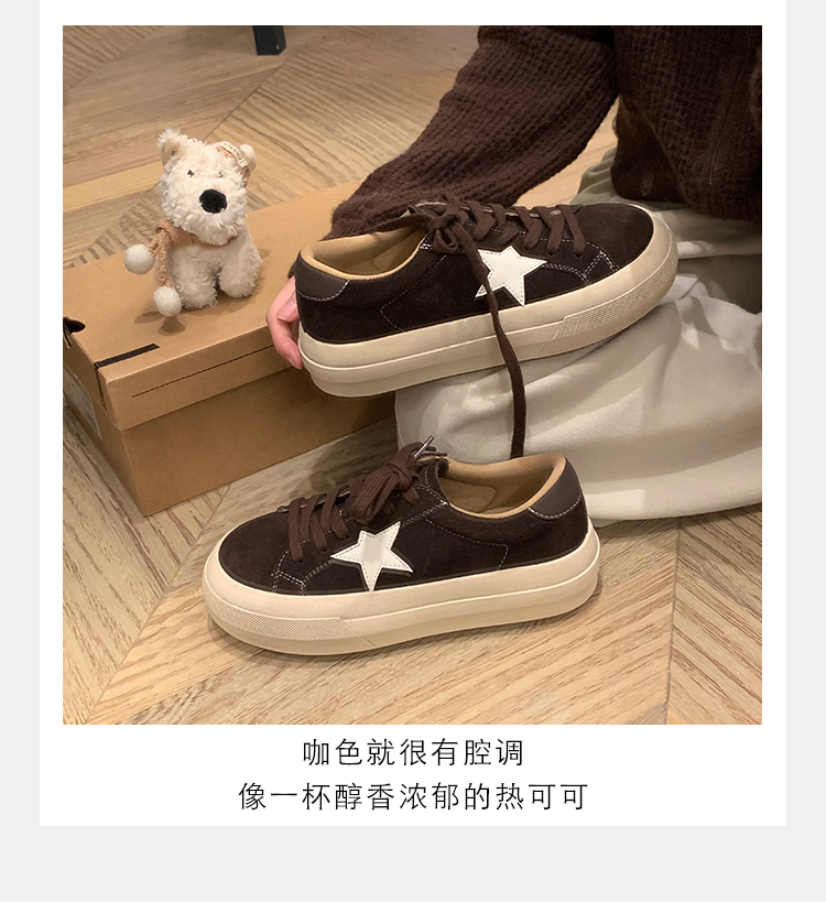 增高6cm~ 真皮加绒星星德训鞋女2025新款圆头系带厚底休闲板鞋女