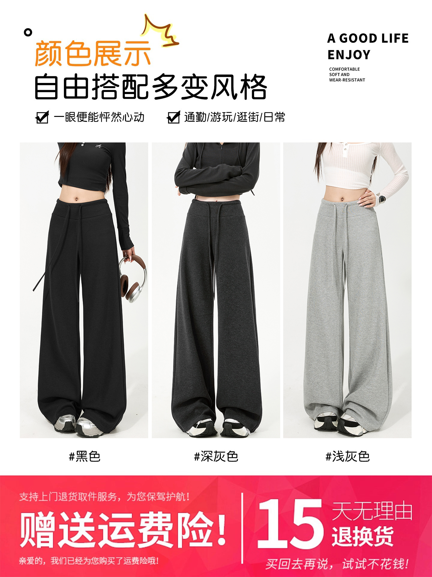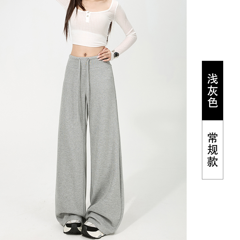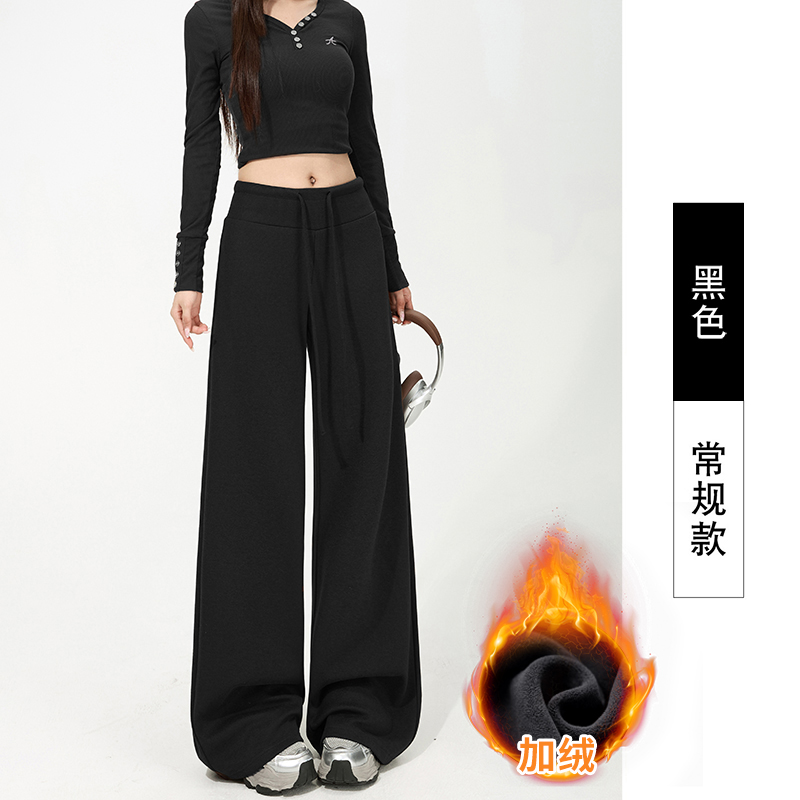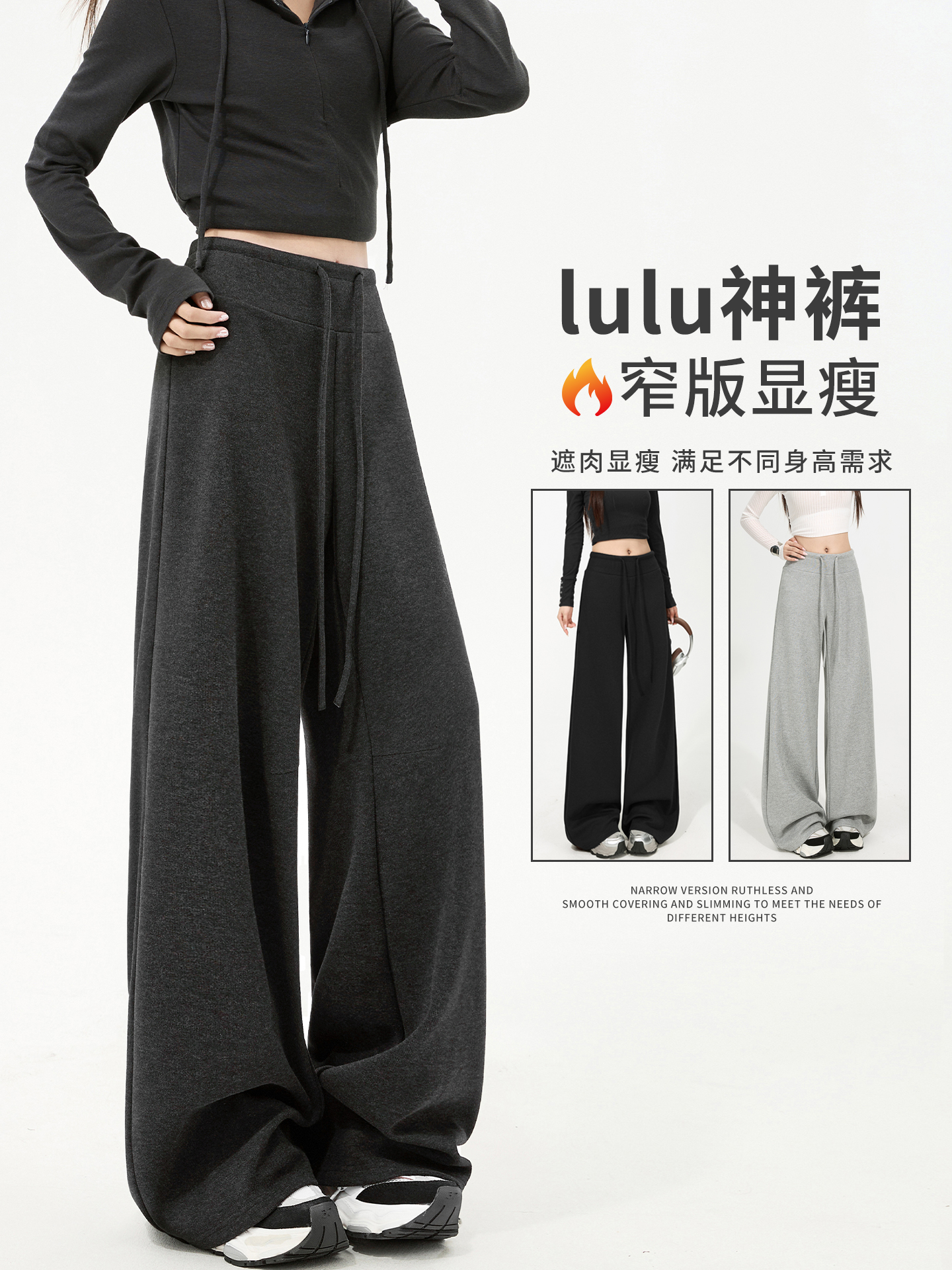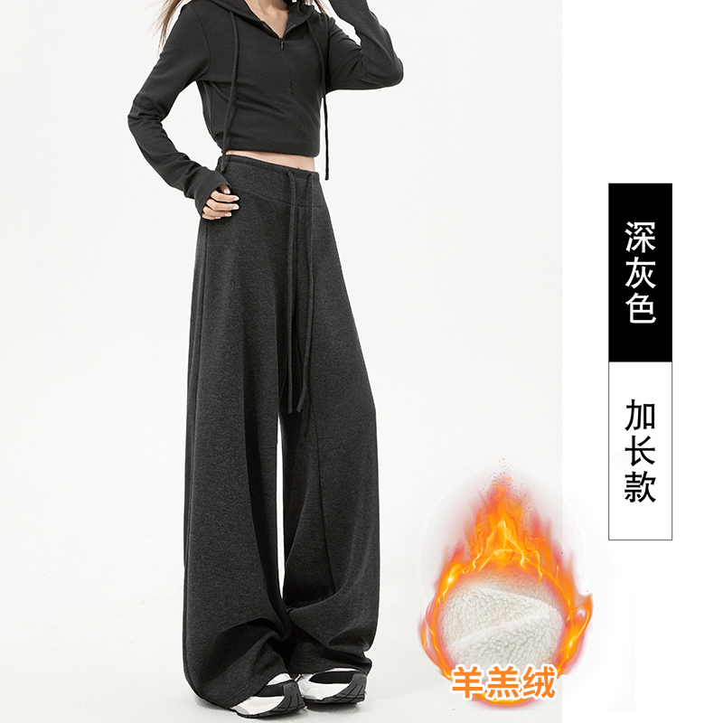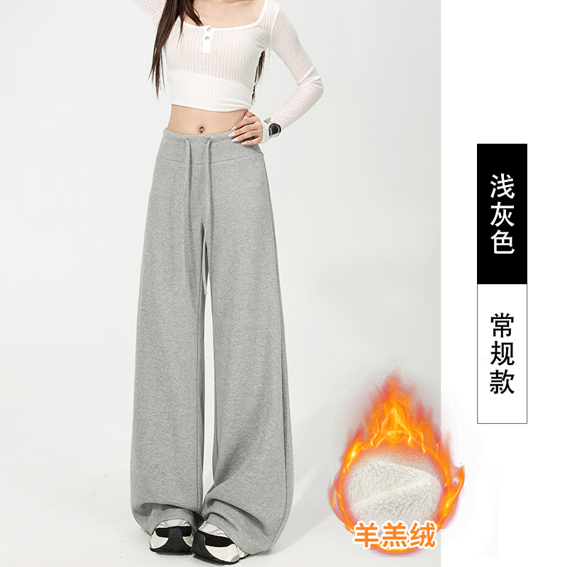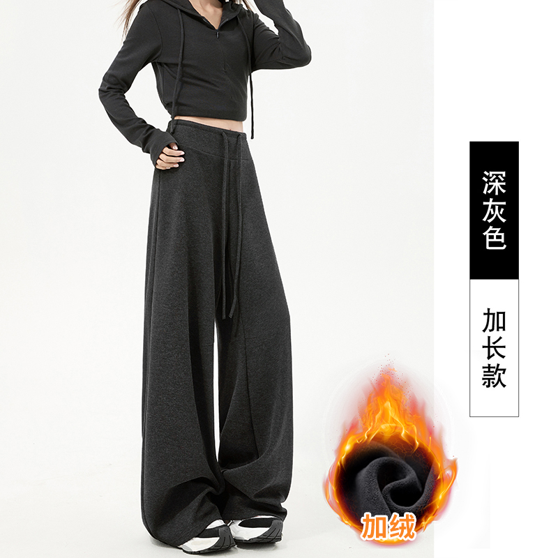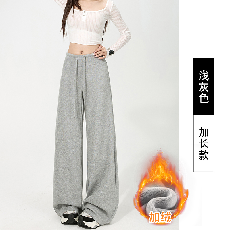 灰色加绒加厚运动裤女2025新款秋冬瑜伽直筒阔腿裤窄版显瘦卫裤子