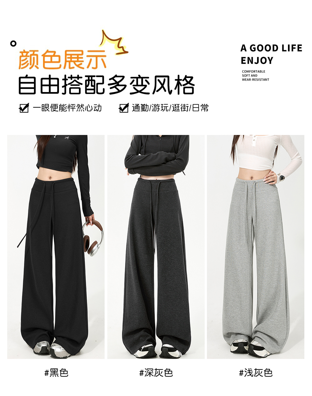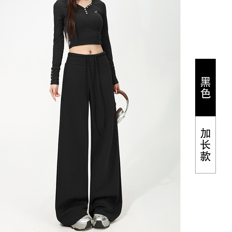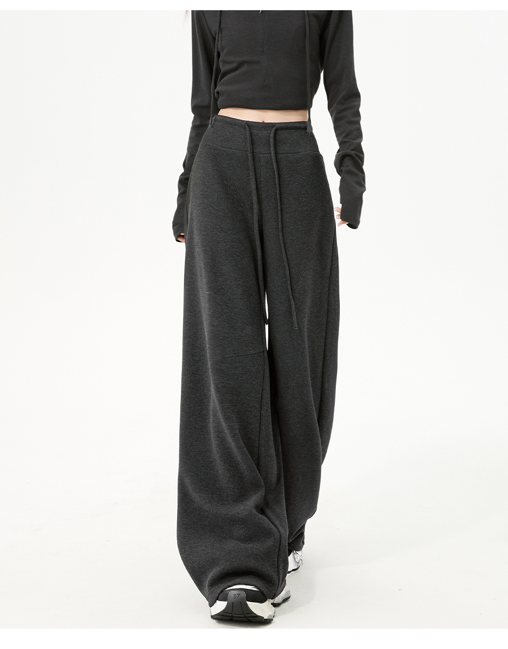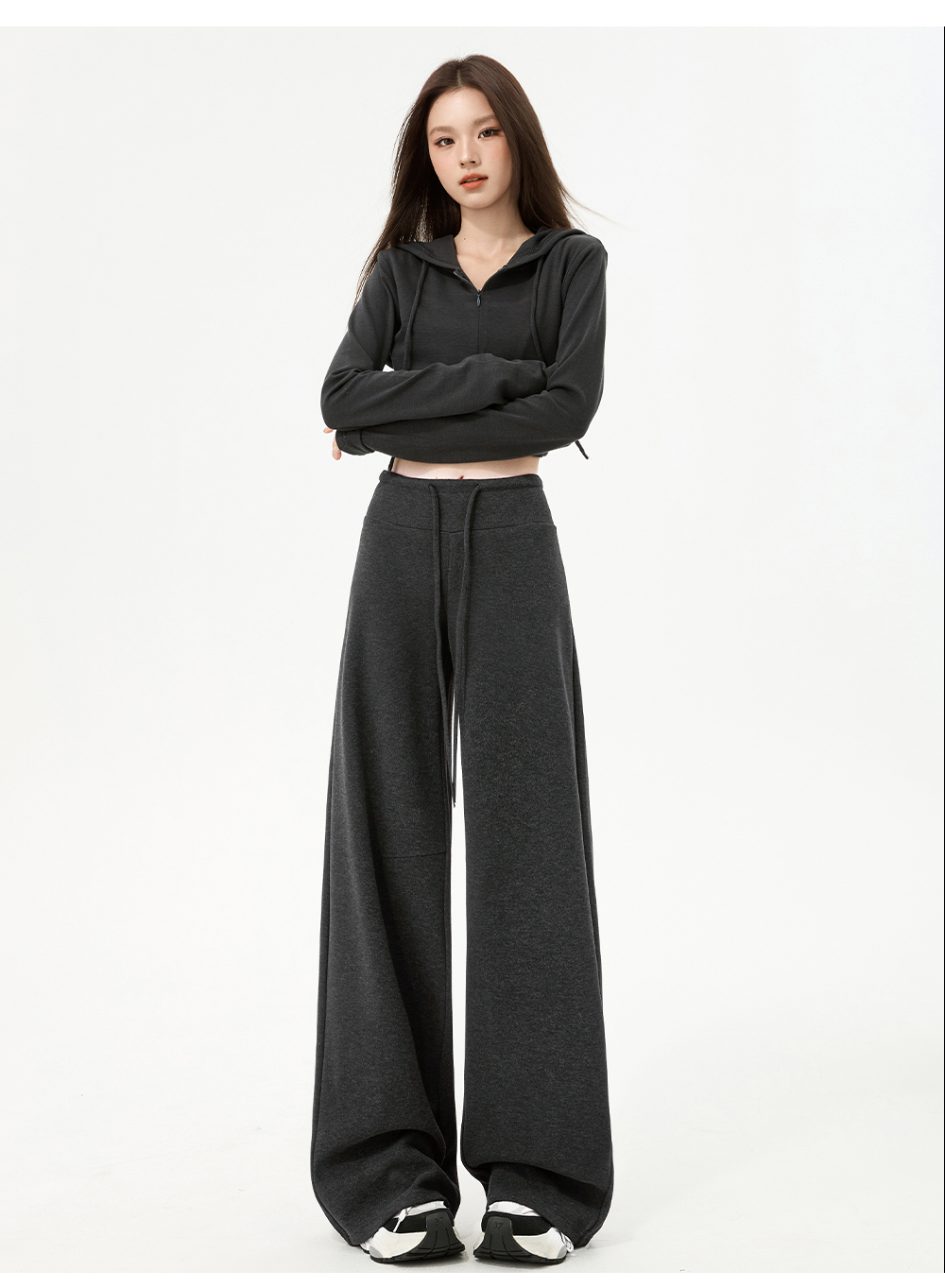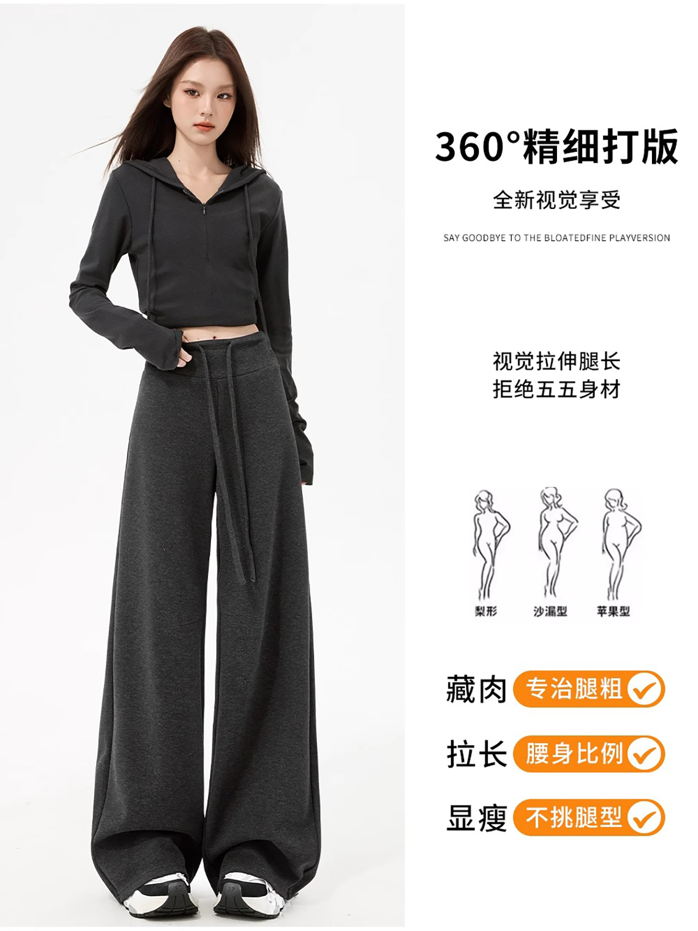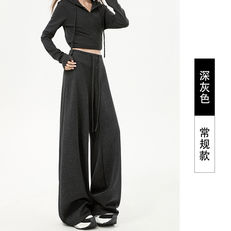 灰色加绒加厚运动裤女2025新款秋冬瑜伽直筒阔腿裤窄版显瘦卫裤子