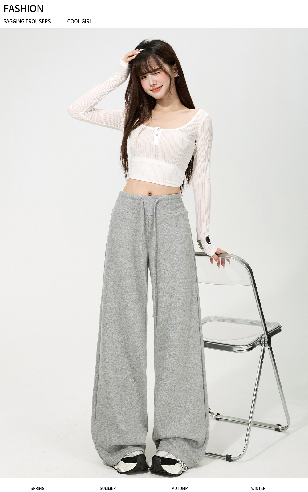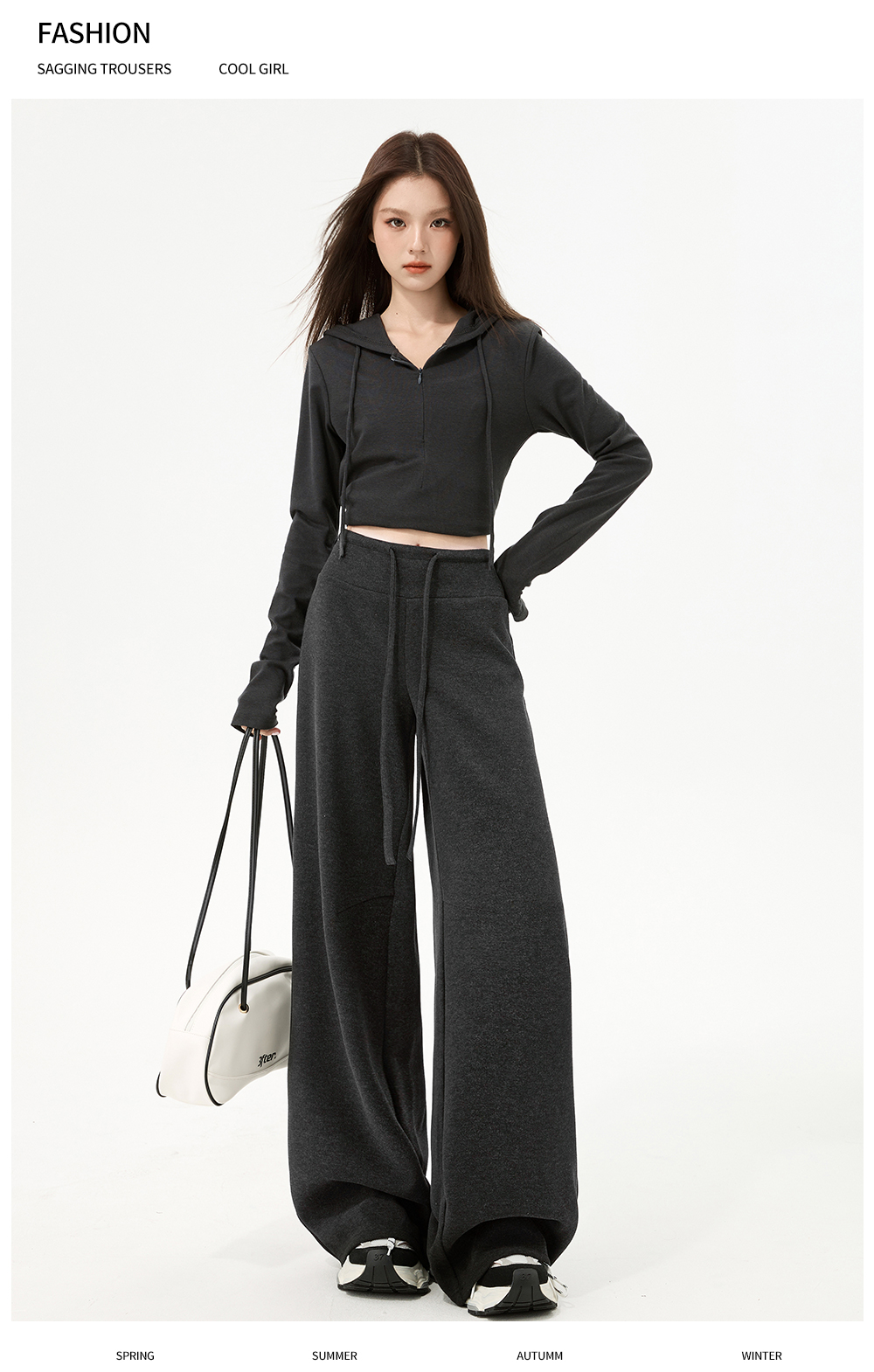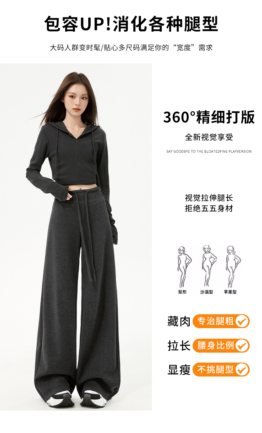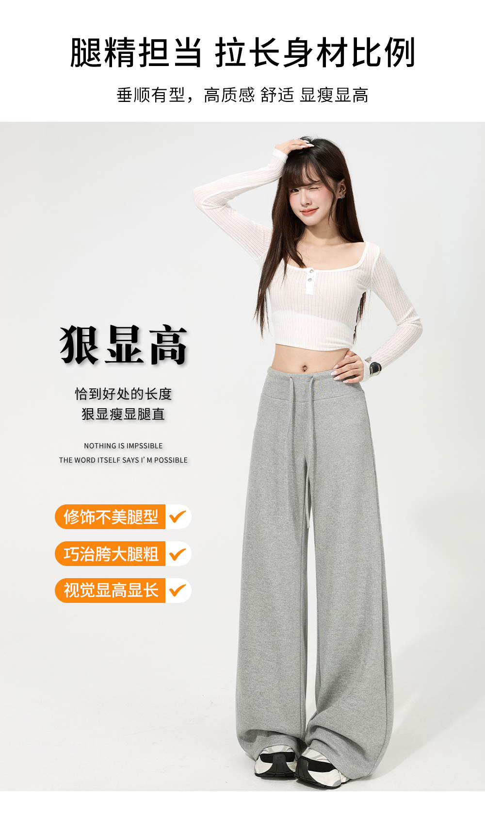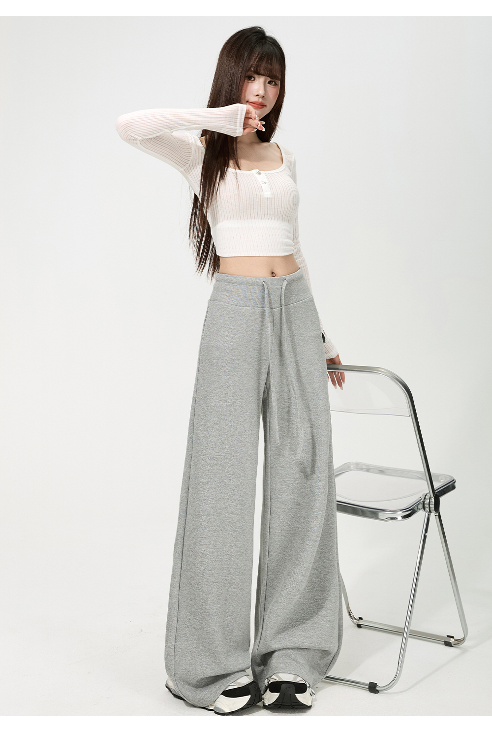 灰色加绒加厚运动裤女2025新款秋冬瑜伽直筒阔腿裤窄版显瘦卫裤子