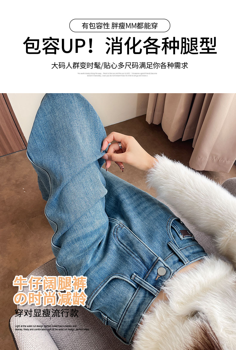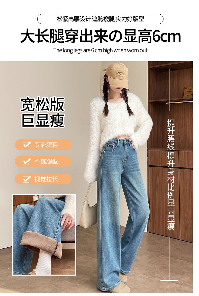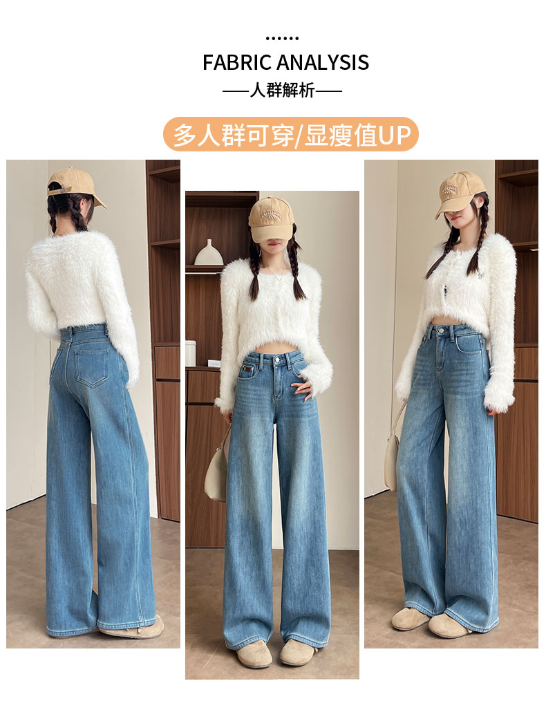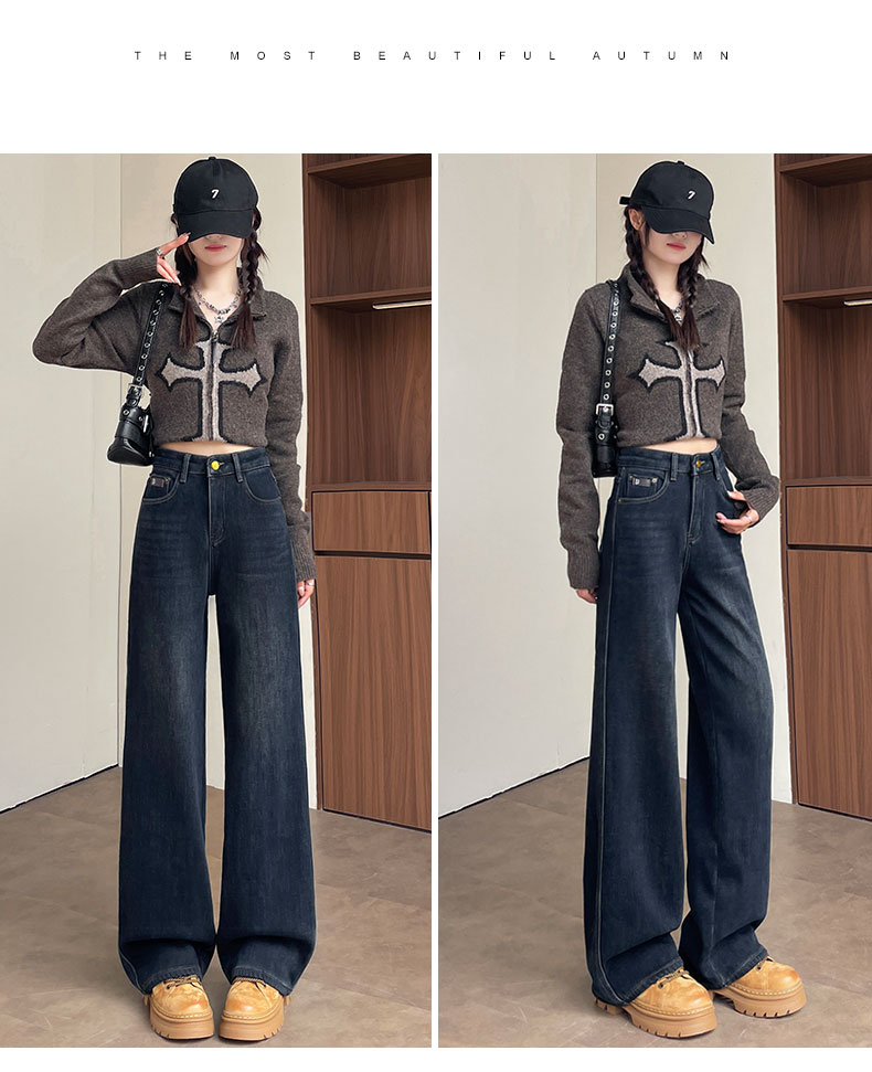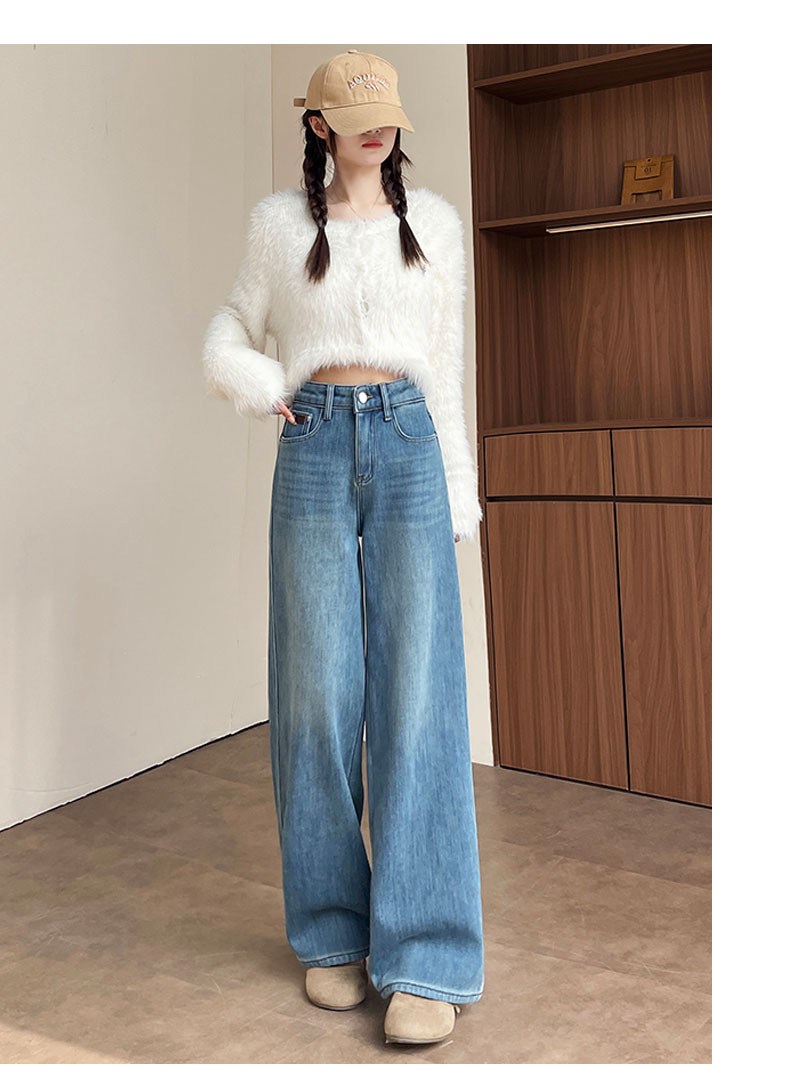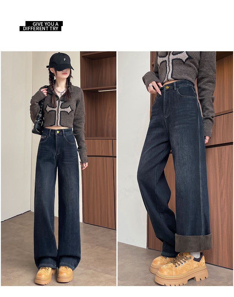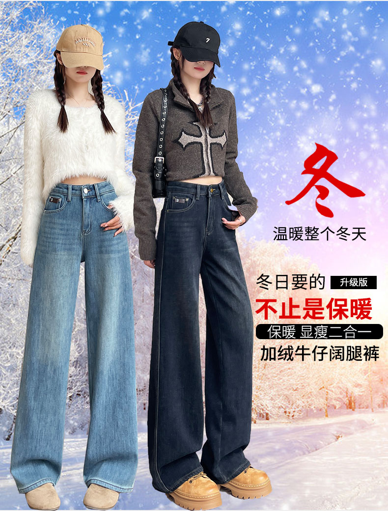 复古加绒加厚阔腿牛仔裤女小个子2025新款冬季高腰显瘦垂感直筒裤