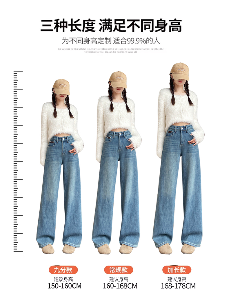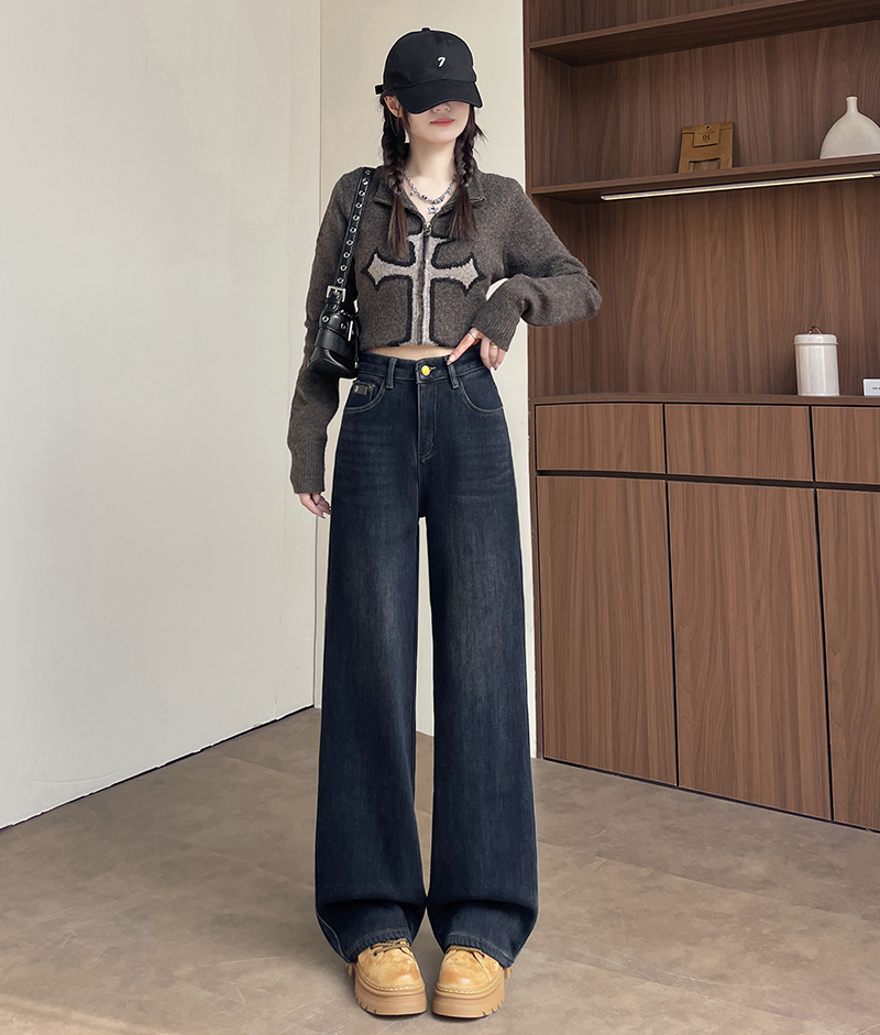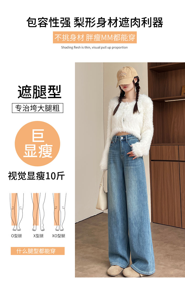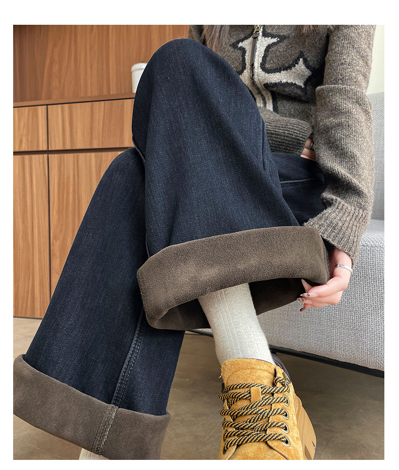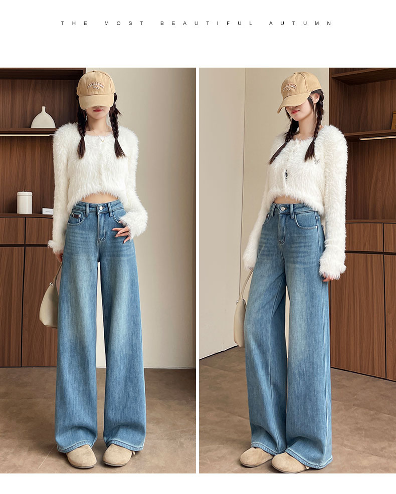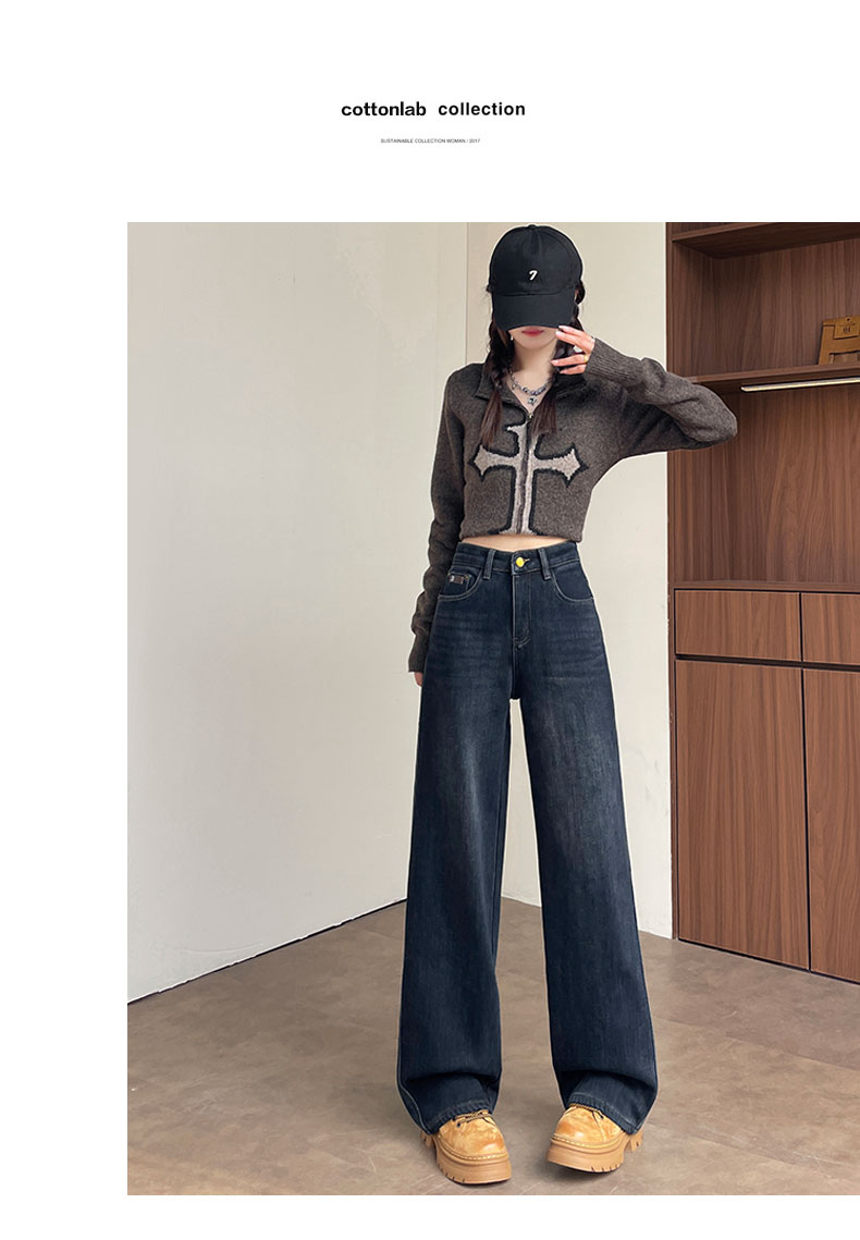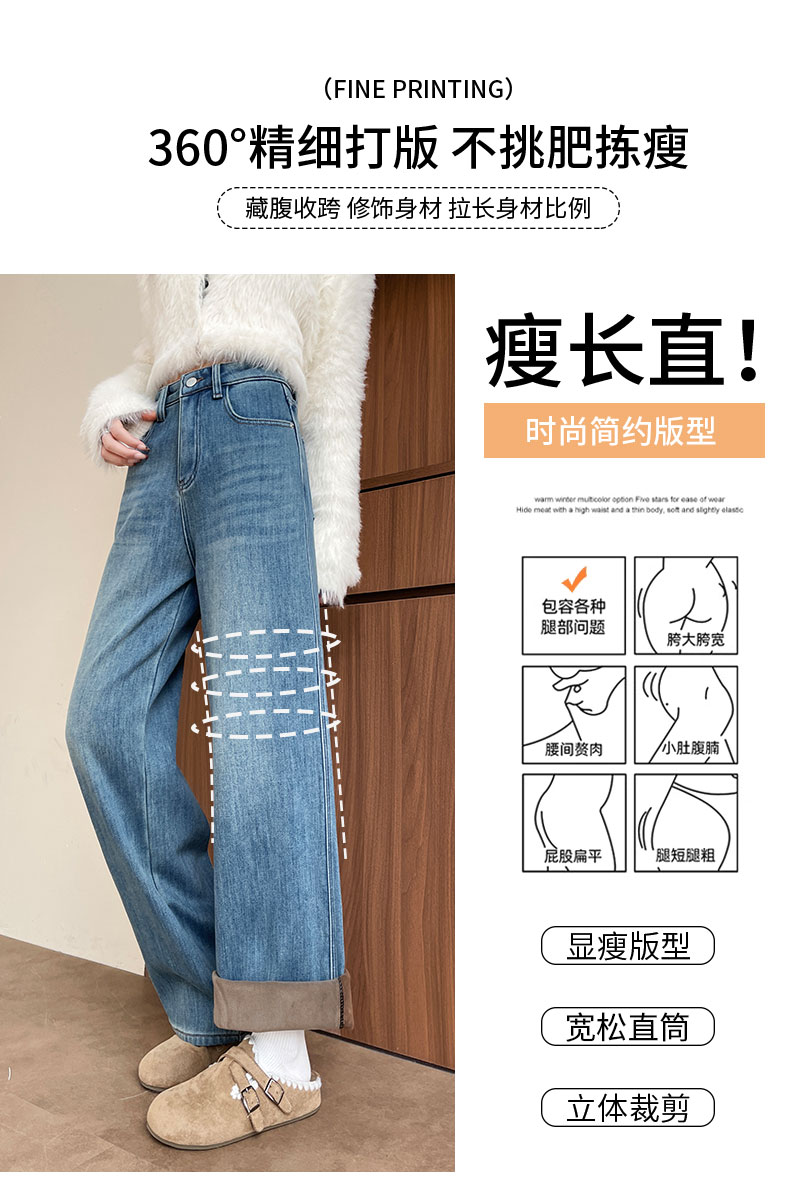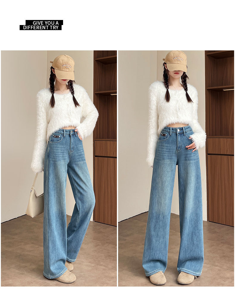 复古加绒加厚阔腿牛仔裤女小个子2025新款冬季高腰显瘦垂感直筒裤
