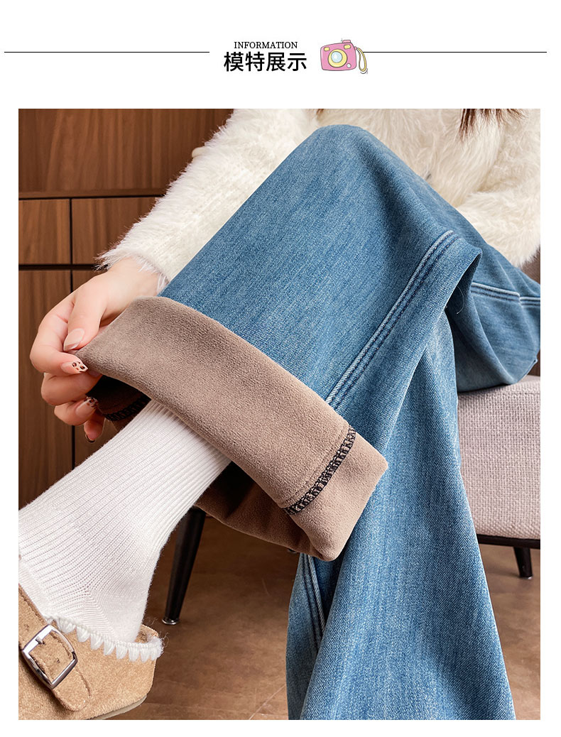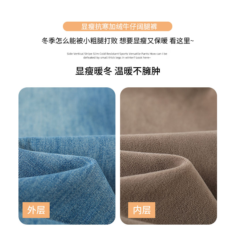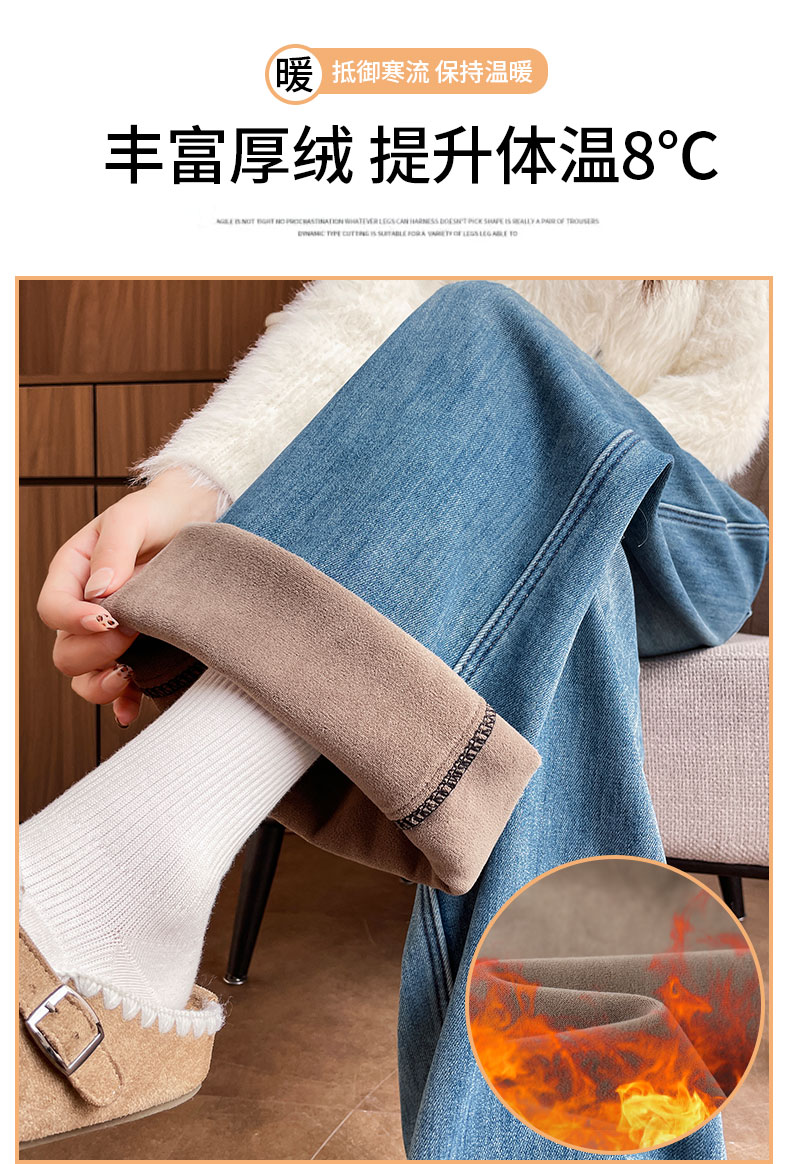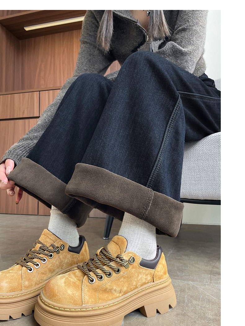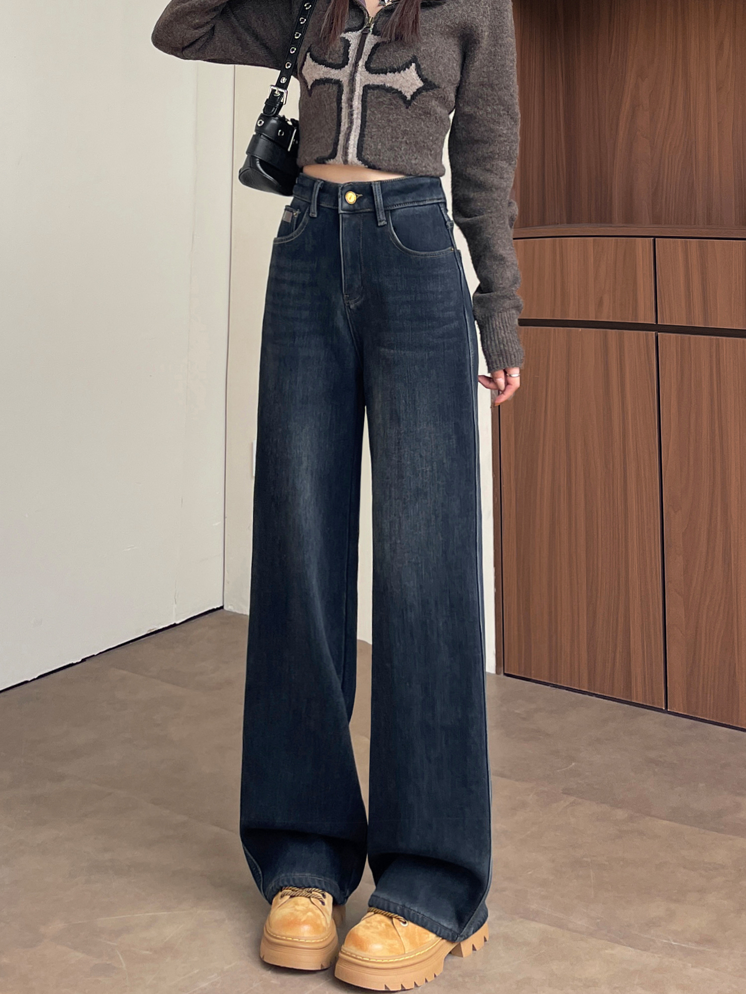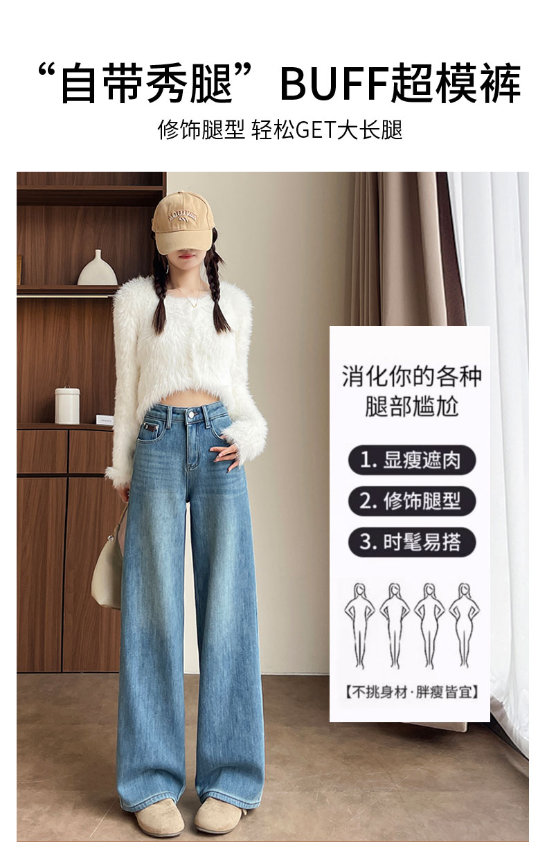 复古加绒加厚阔腿牛仔裤女小个子2025新款冬季高腰显瘦垂感直筒裤