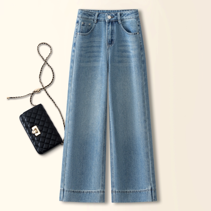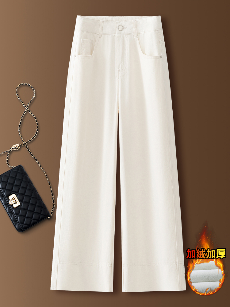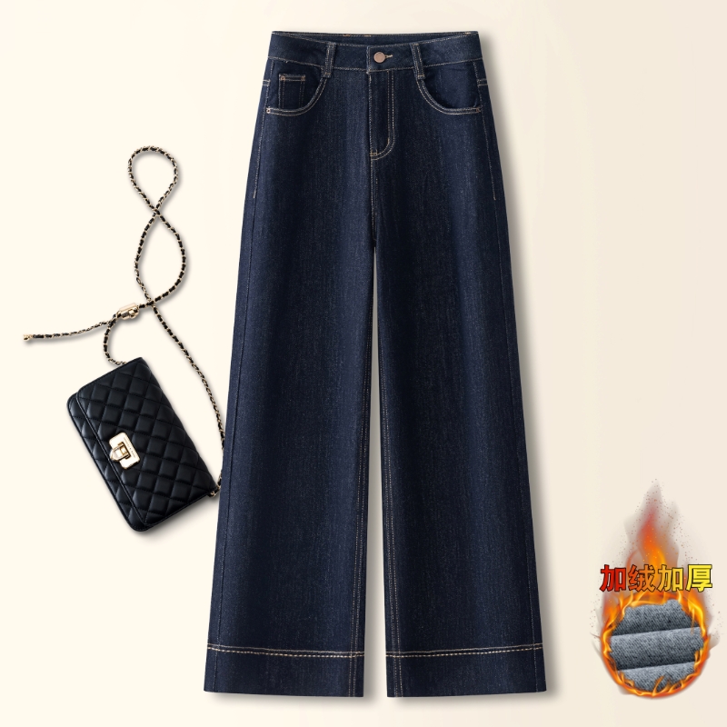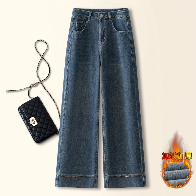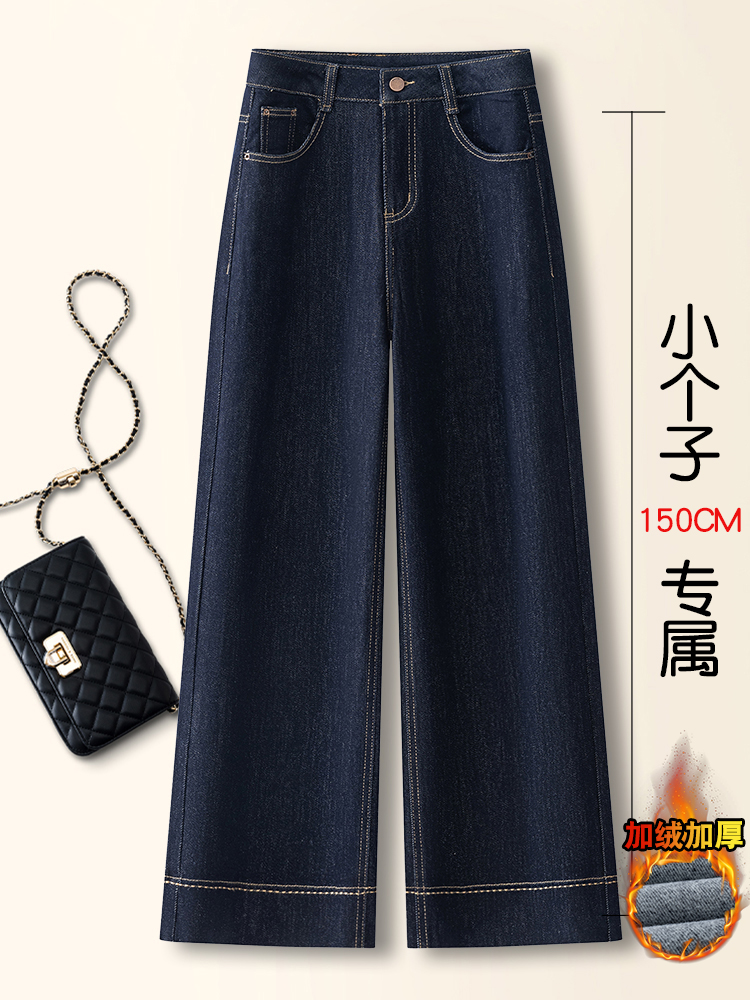 小个子加绒直筒牛仔裤女冬季2025新款高腰加厚九分窄版浅色阔腿裤