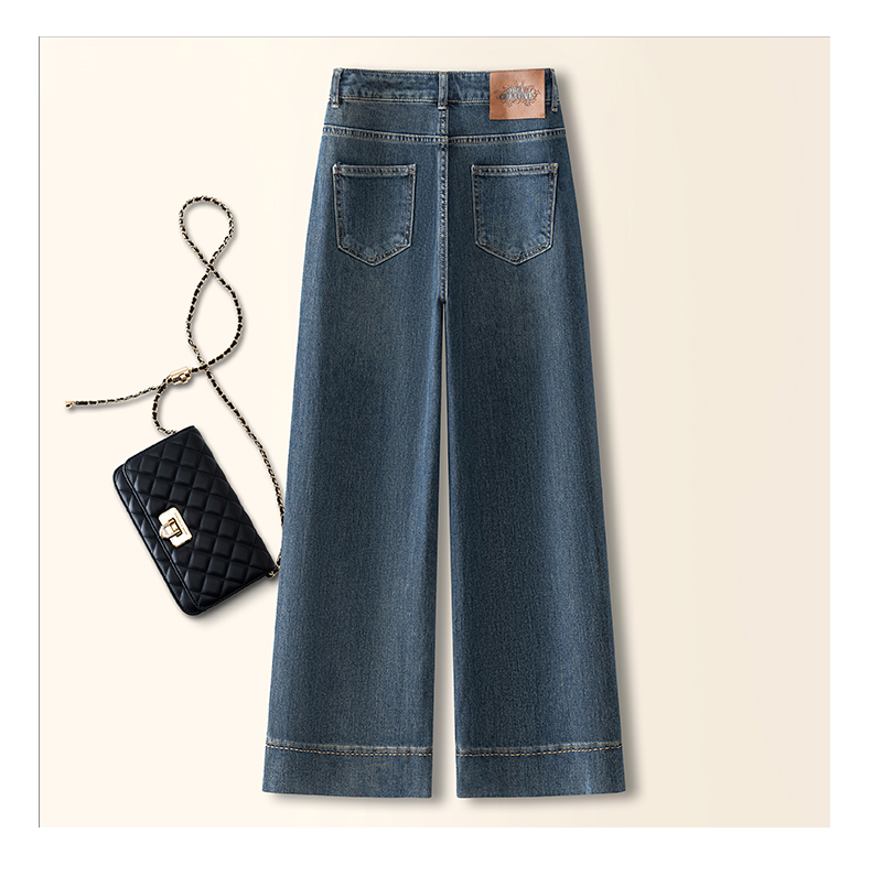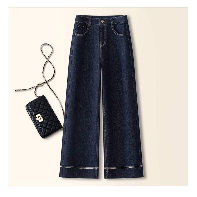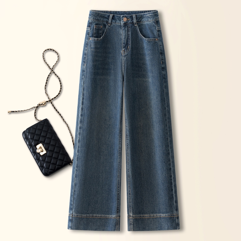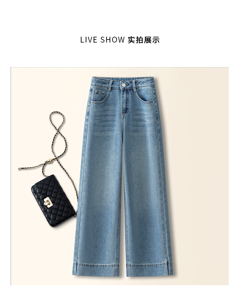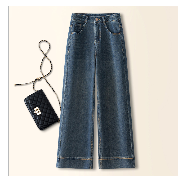 小个子加绒直筒牛仔裤女冬季2025新款高腰加厚九分窄版浅色阔腿裤