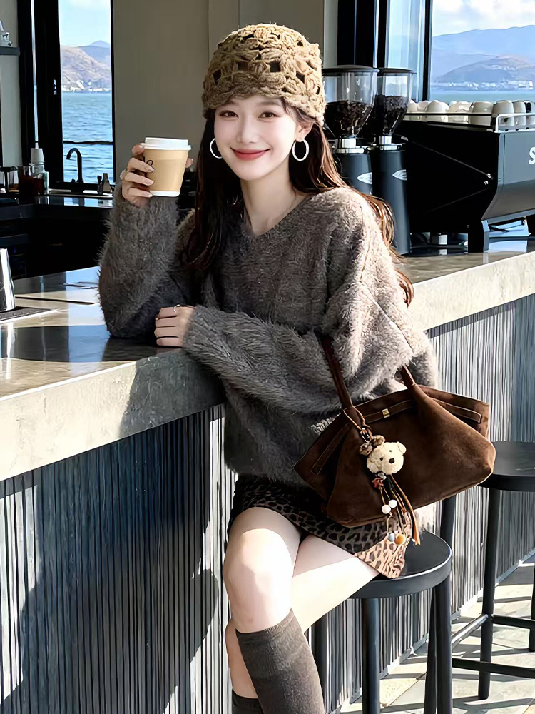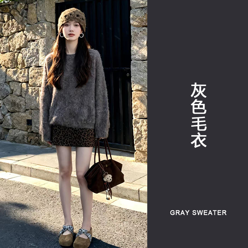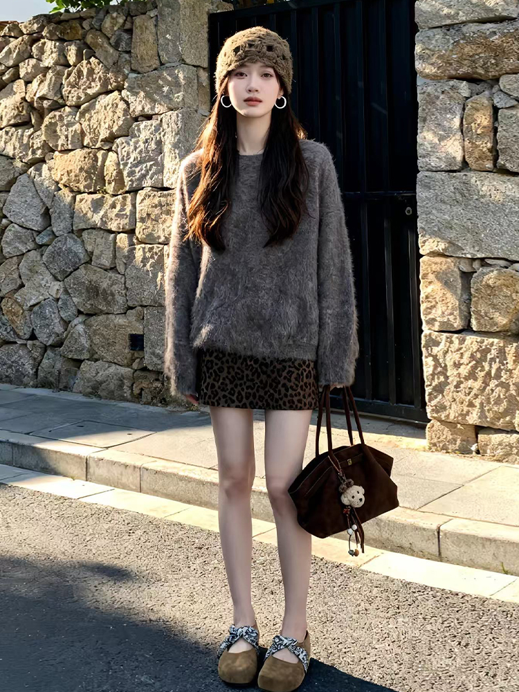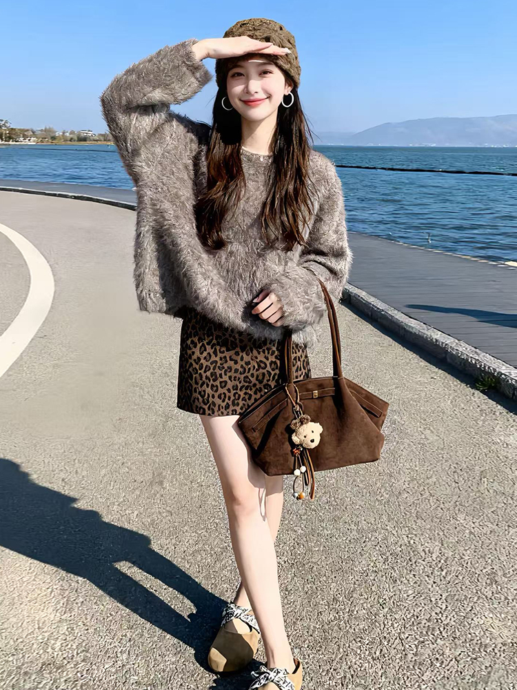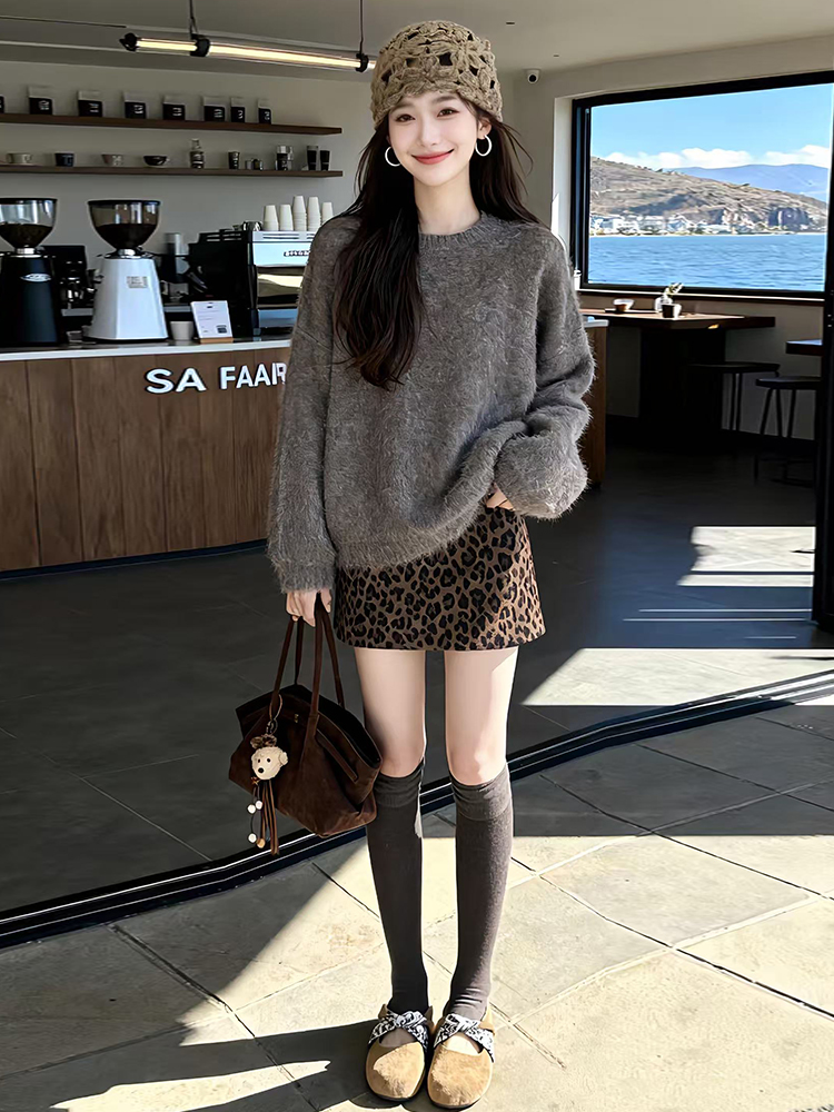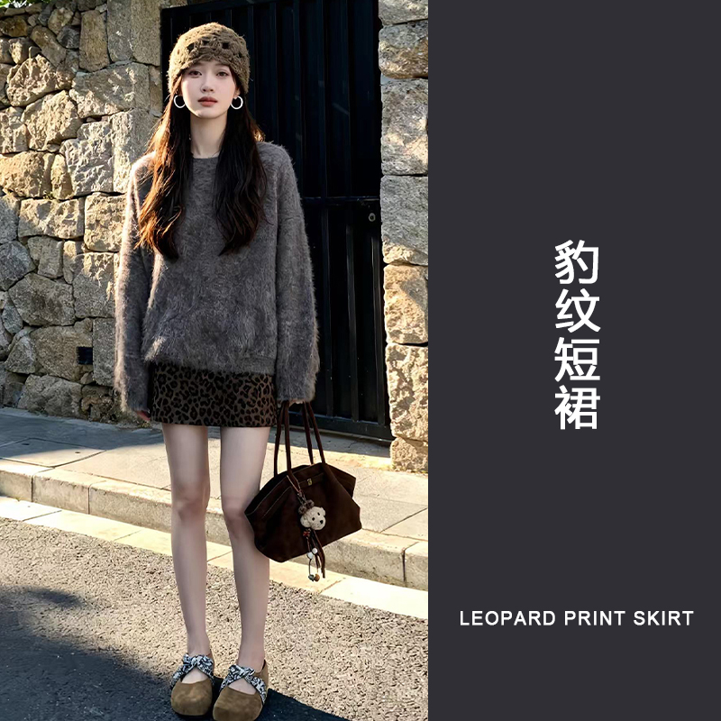 巨好看冬装一整套减龄穿搭御姐盐系轻熟风漂亮豹纹裙子毛衣套装女