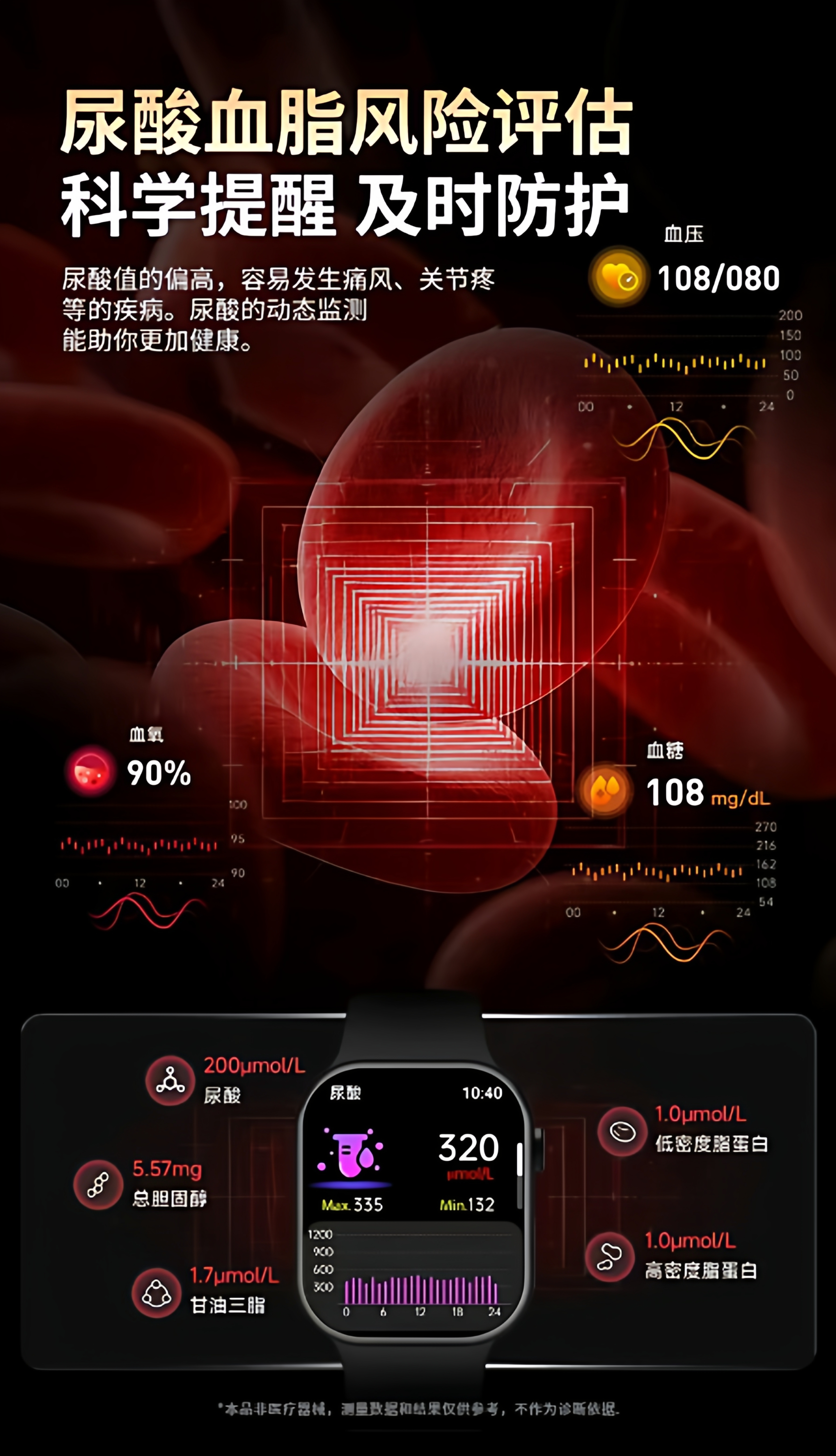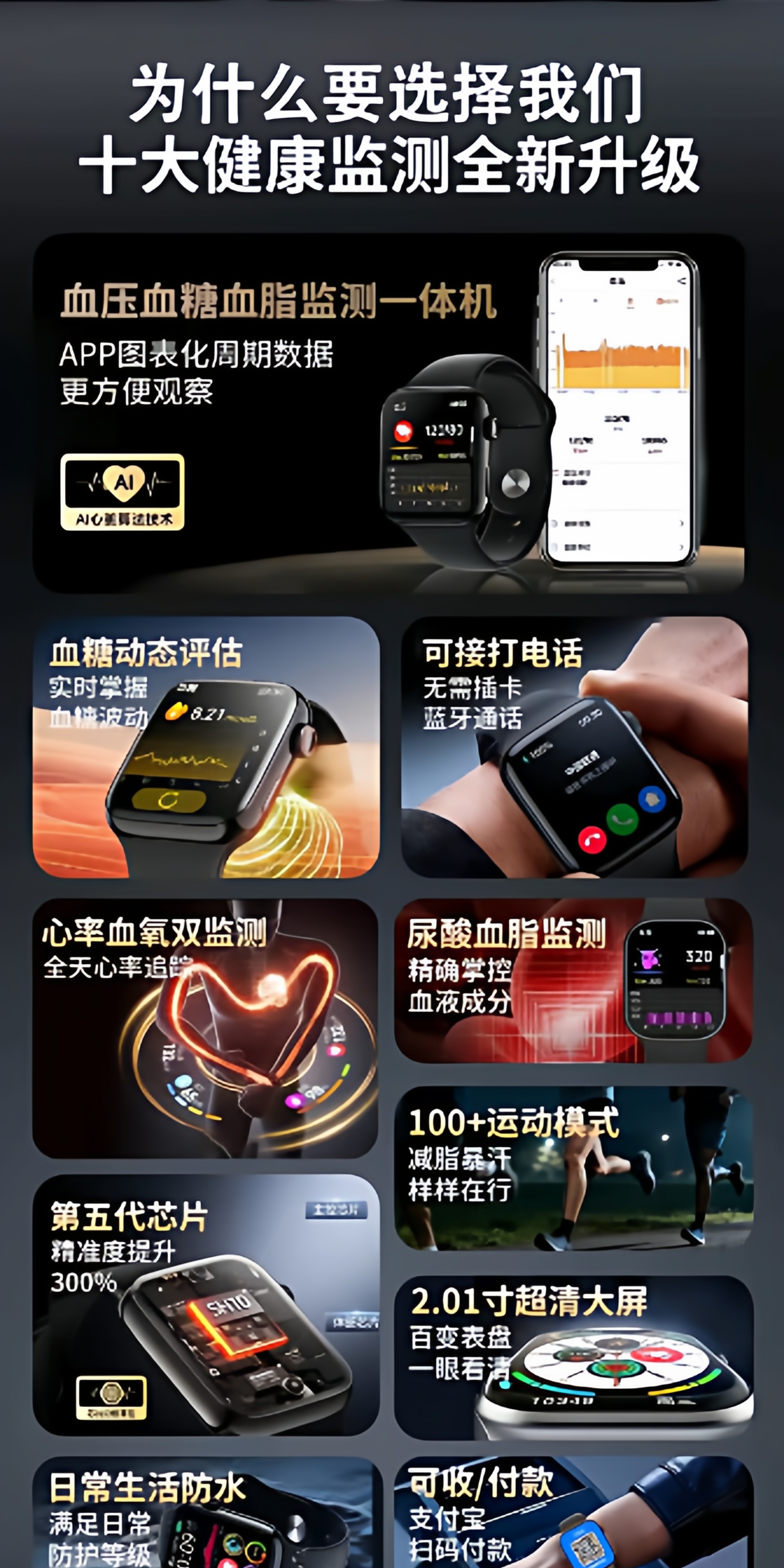 精准度99% l 血糖血压估智能手表血氧心率睡眠24小时动态监控手环