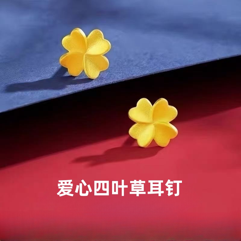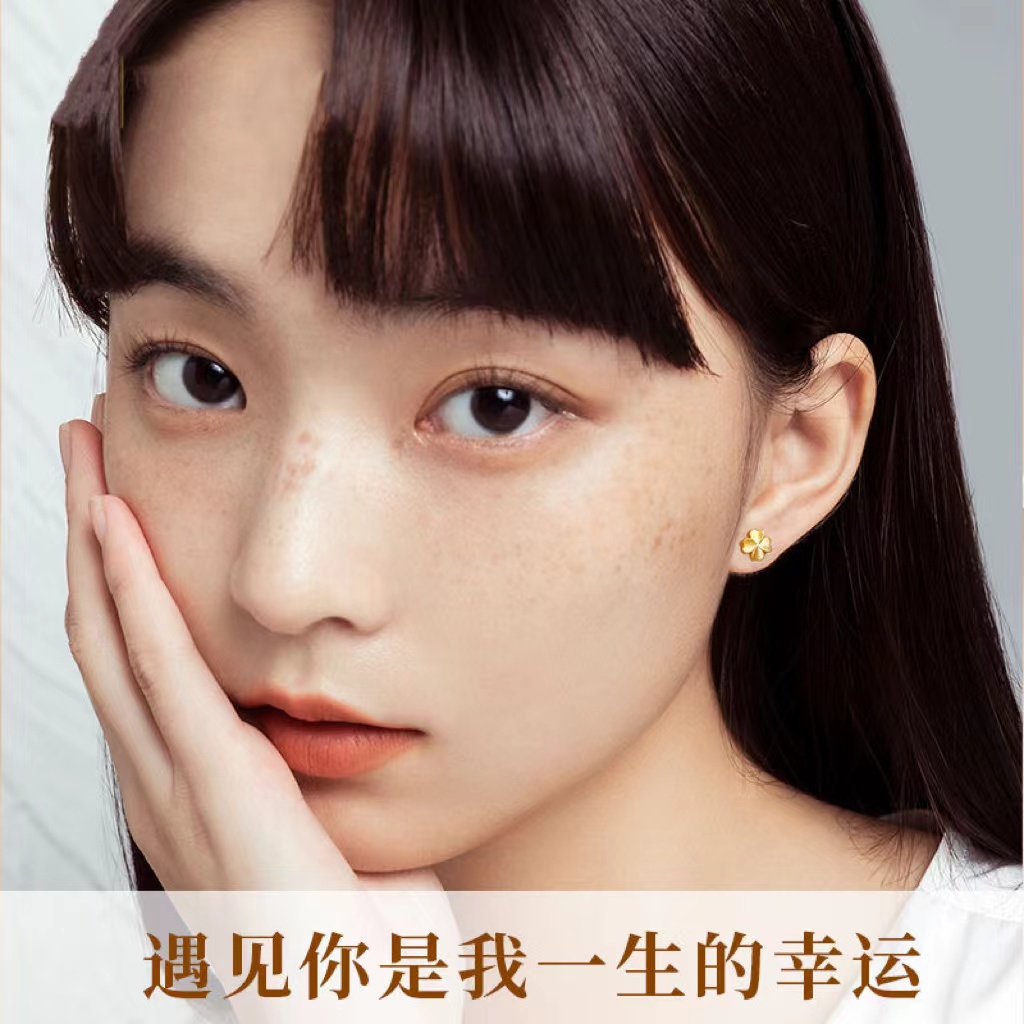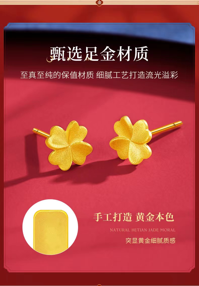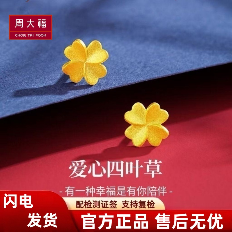 周­大­福黄金四叶草耳钉女高级感耳环耳饰送女友生日情人节礼物