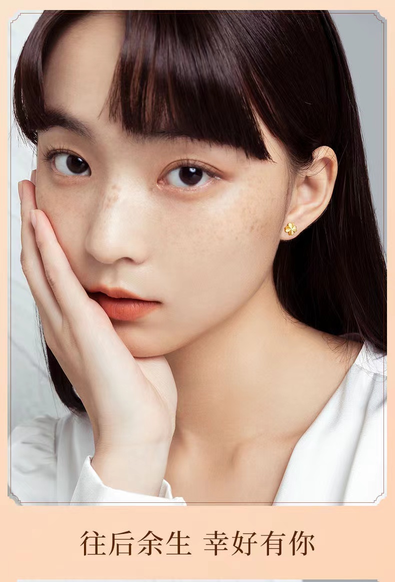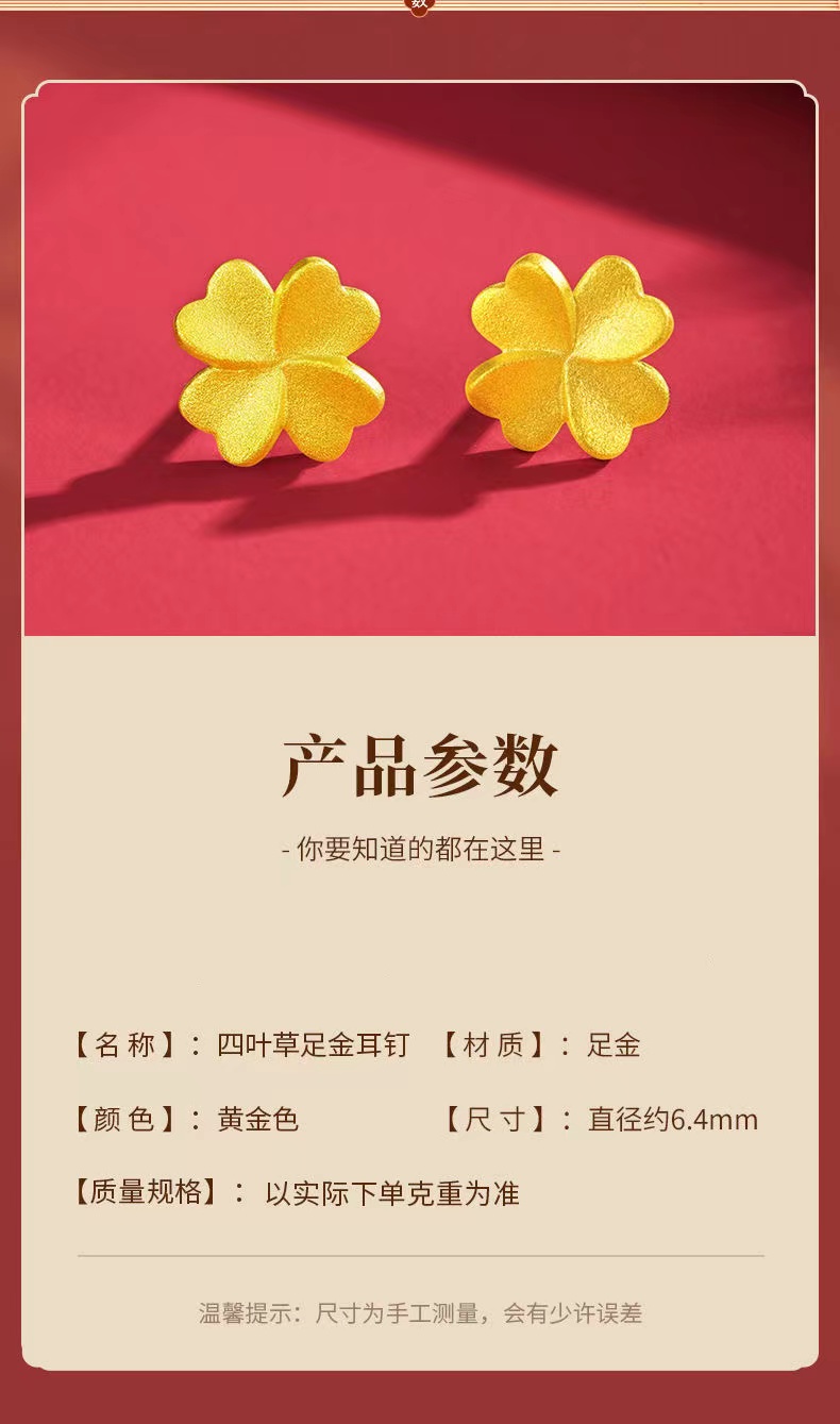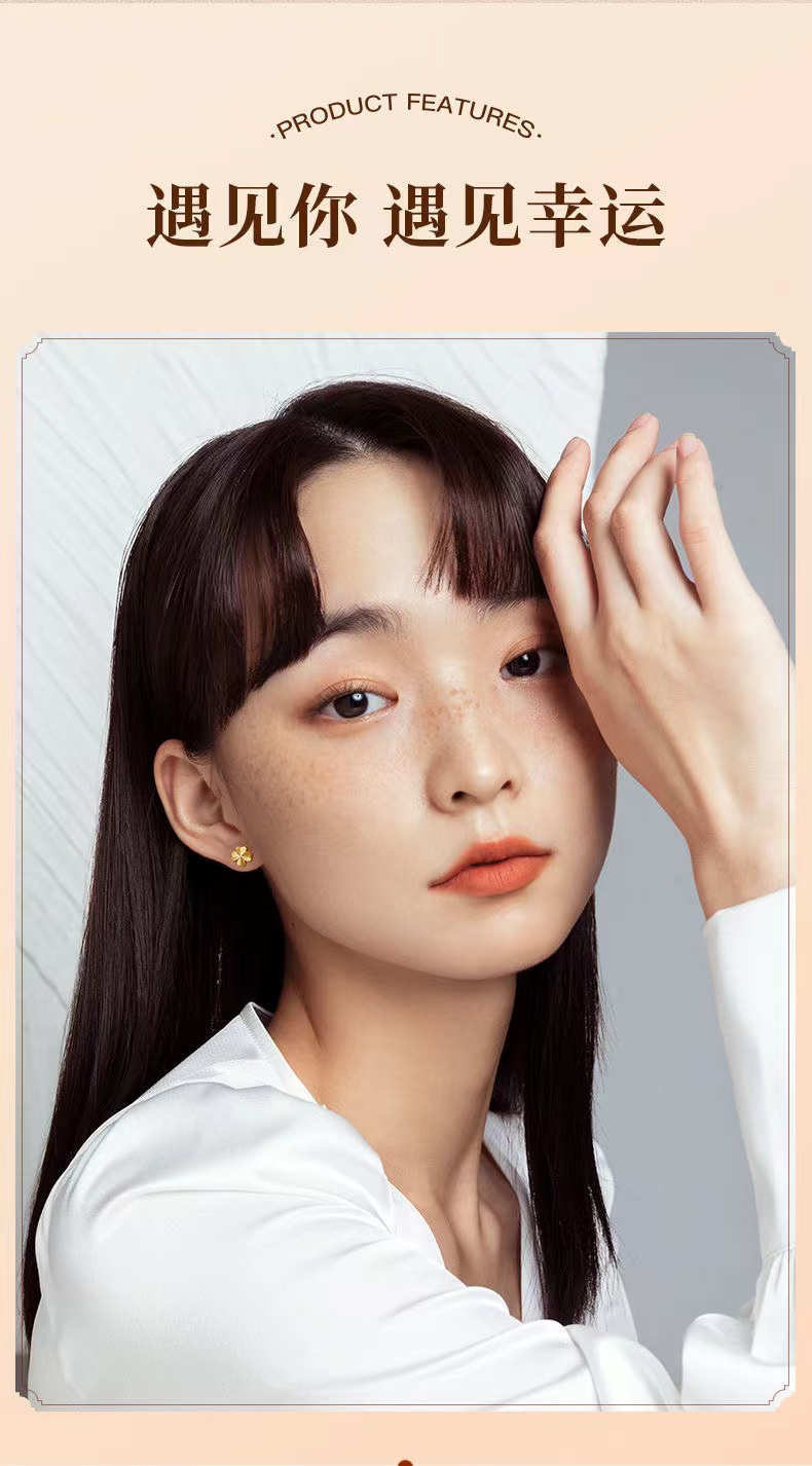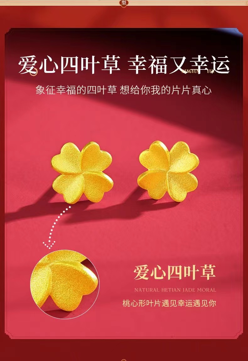 周­大­福黄金四叶草耳钉女高级感耳环耳饰送女友生日情人节礼物
