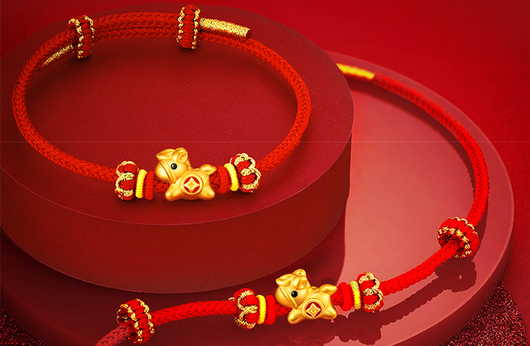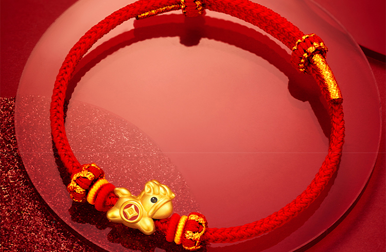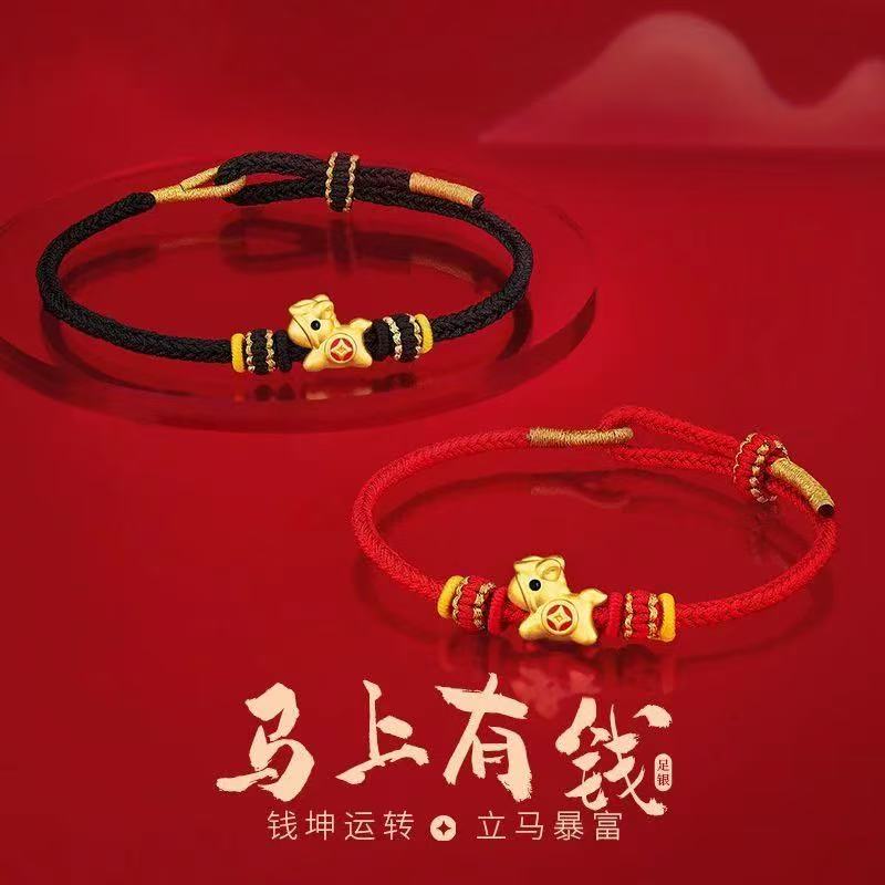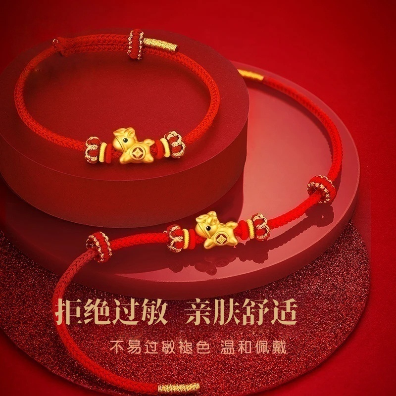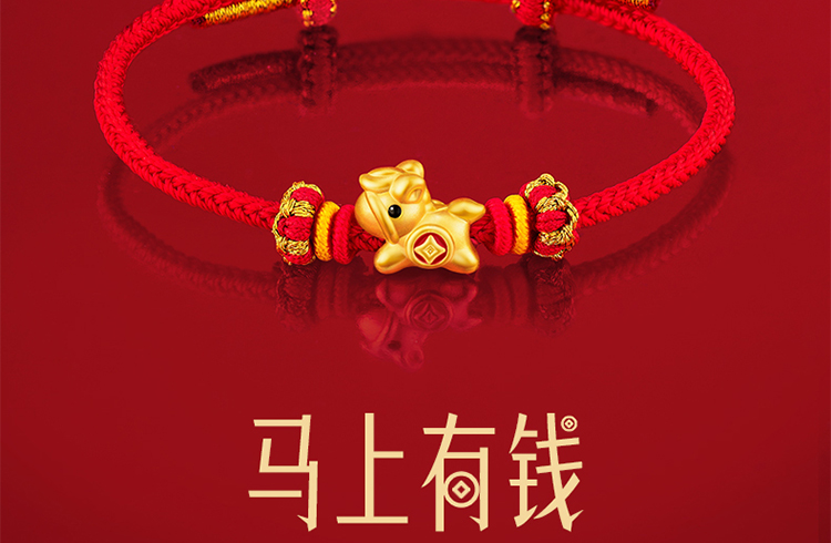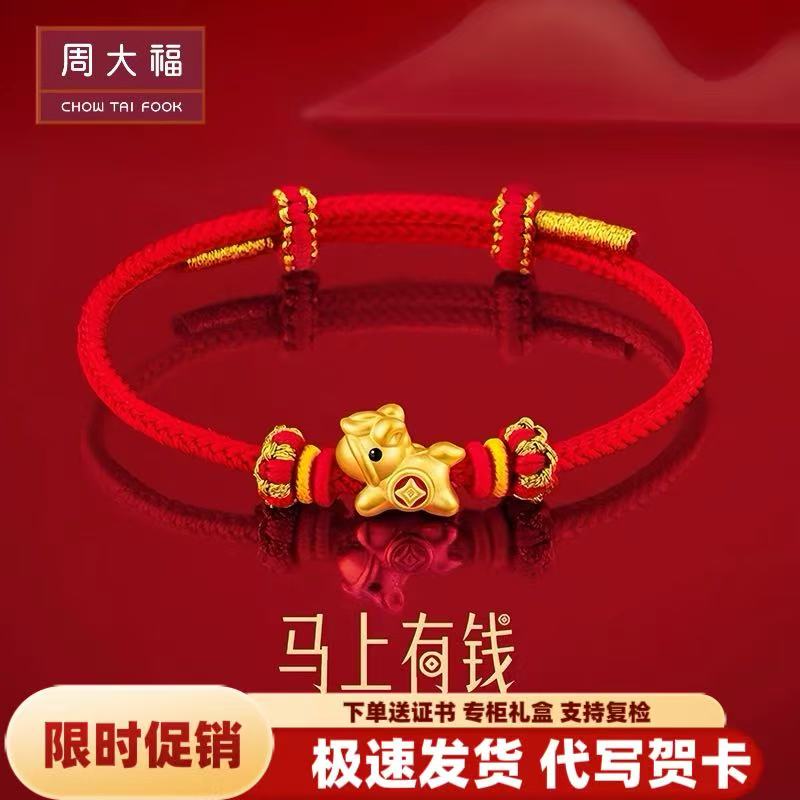 周­大­福黄金马上有钱手链女生肖马本命年转运珠红绳送女友礼物