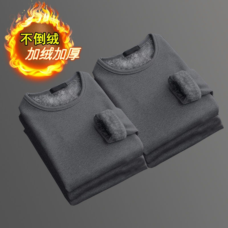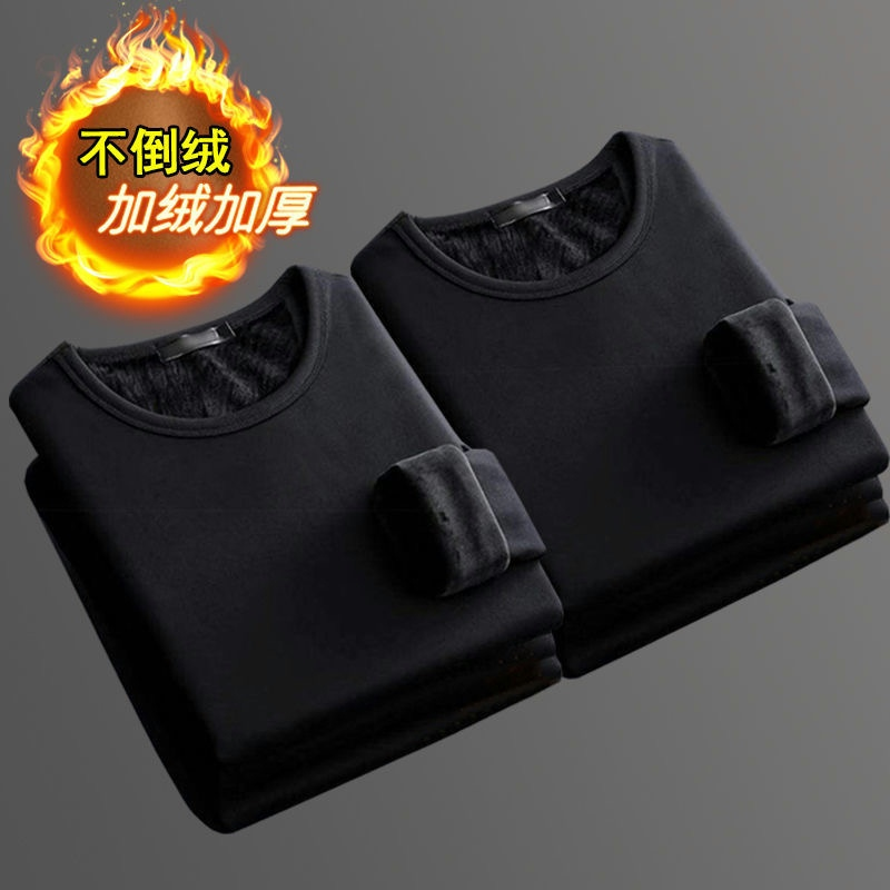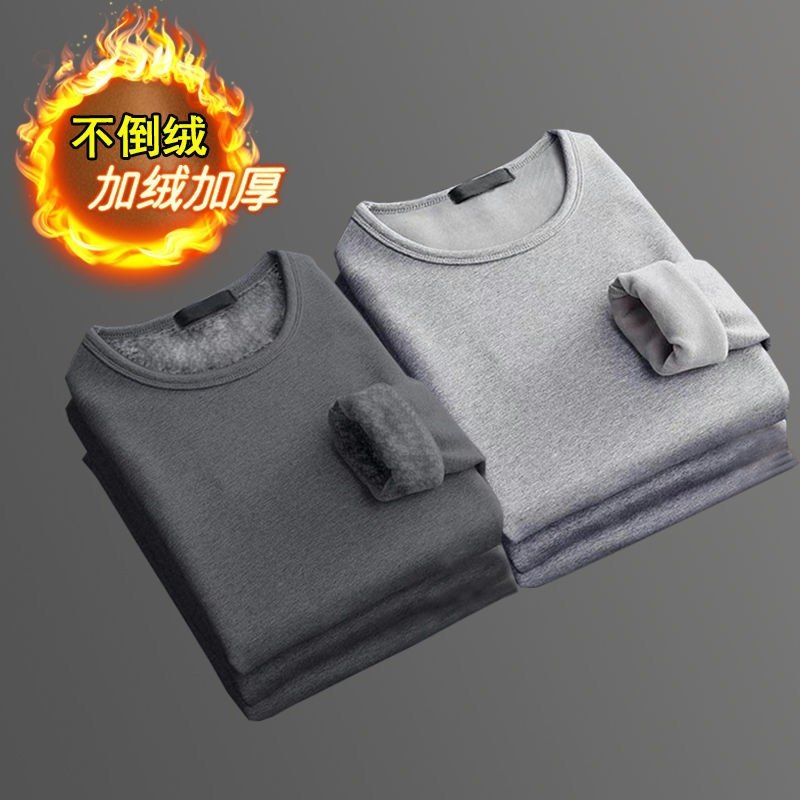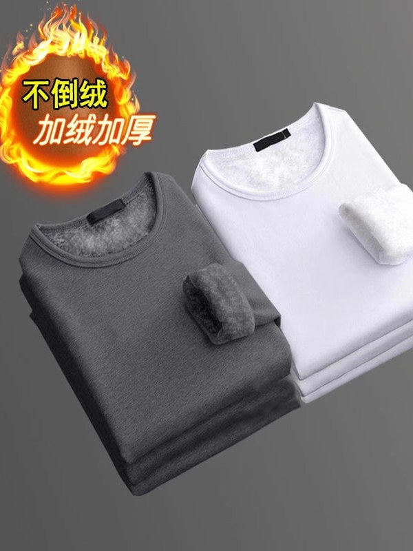 秋冬季男士加绒加厚打底衫修身保暖衣服长袖t恤秋衣内衣服内外穿T