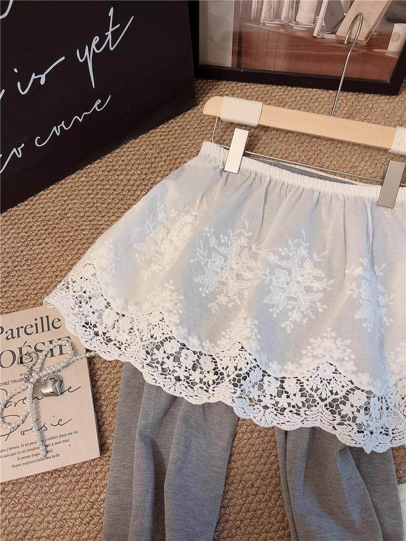 白色蕾丝屁帘女秋冬配鲨鱼裤大码胖mm遮臀屁股显瘦叠穿下摆短裙子