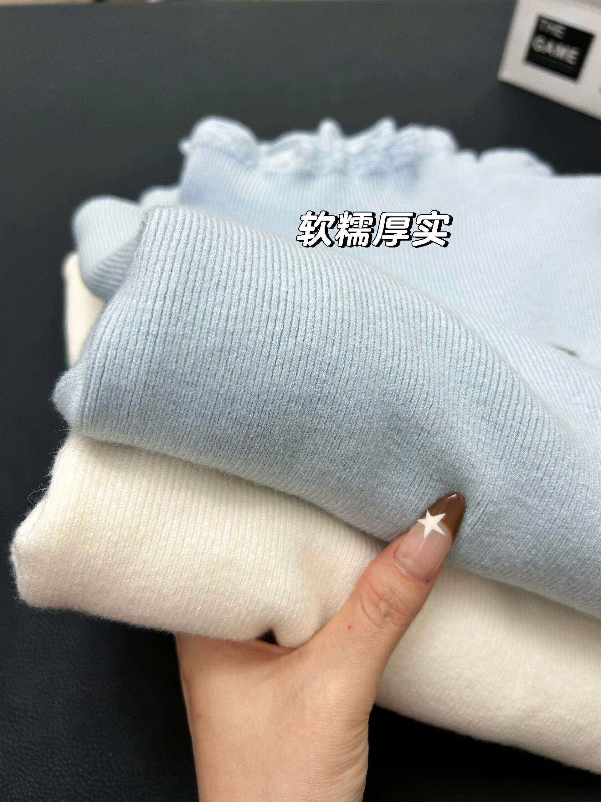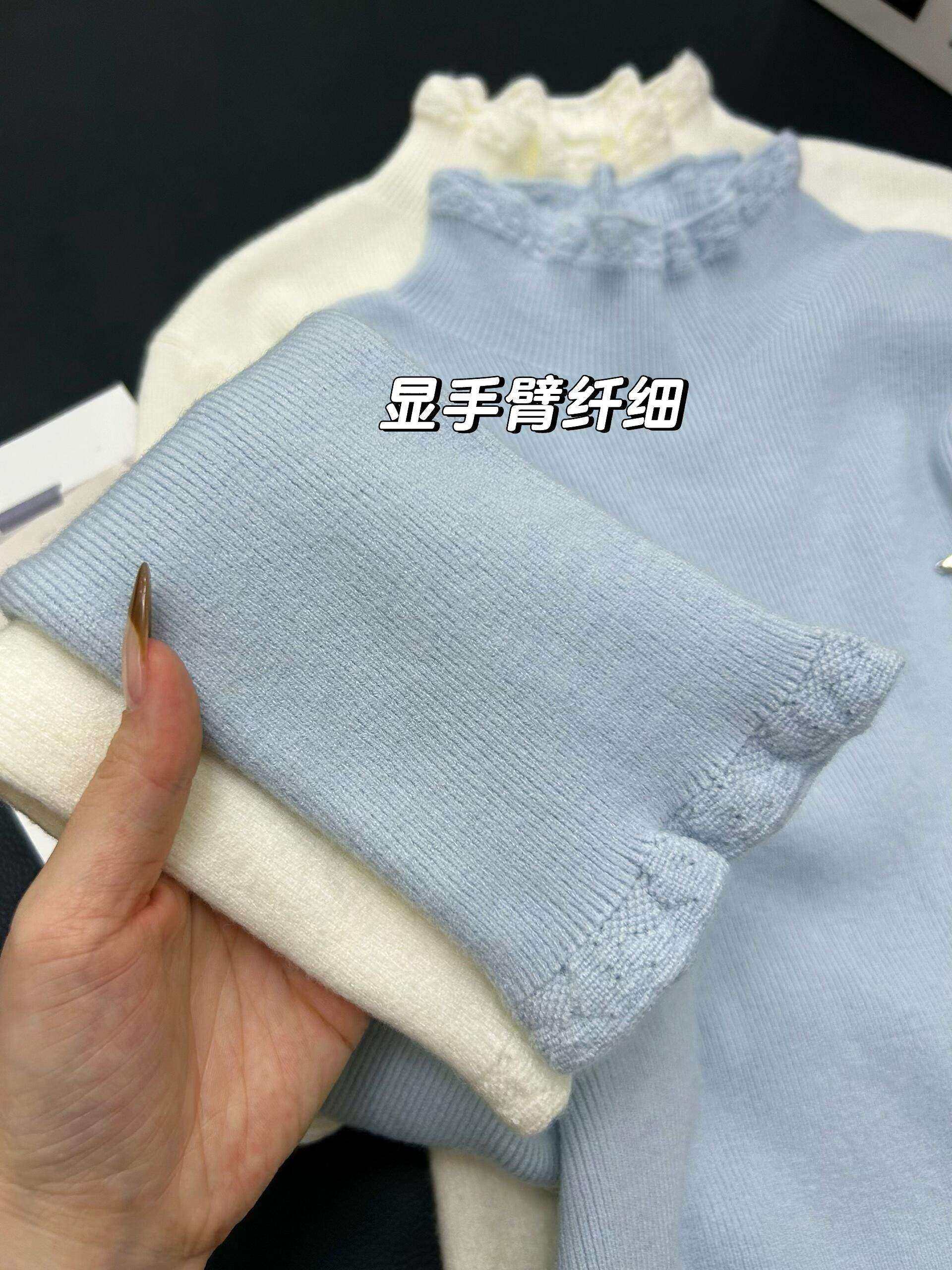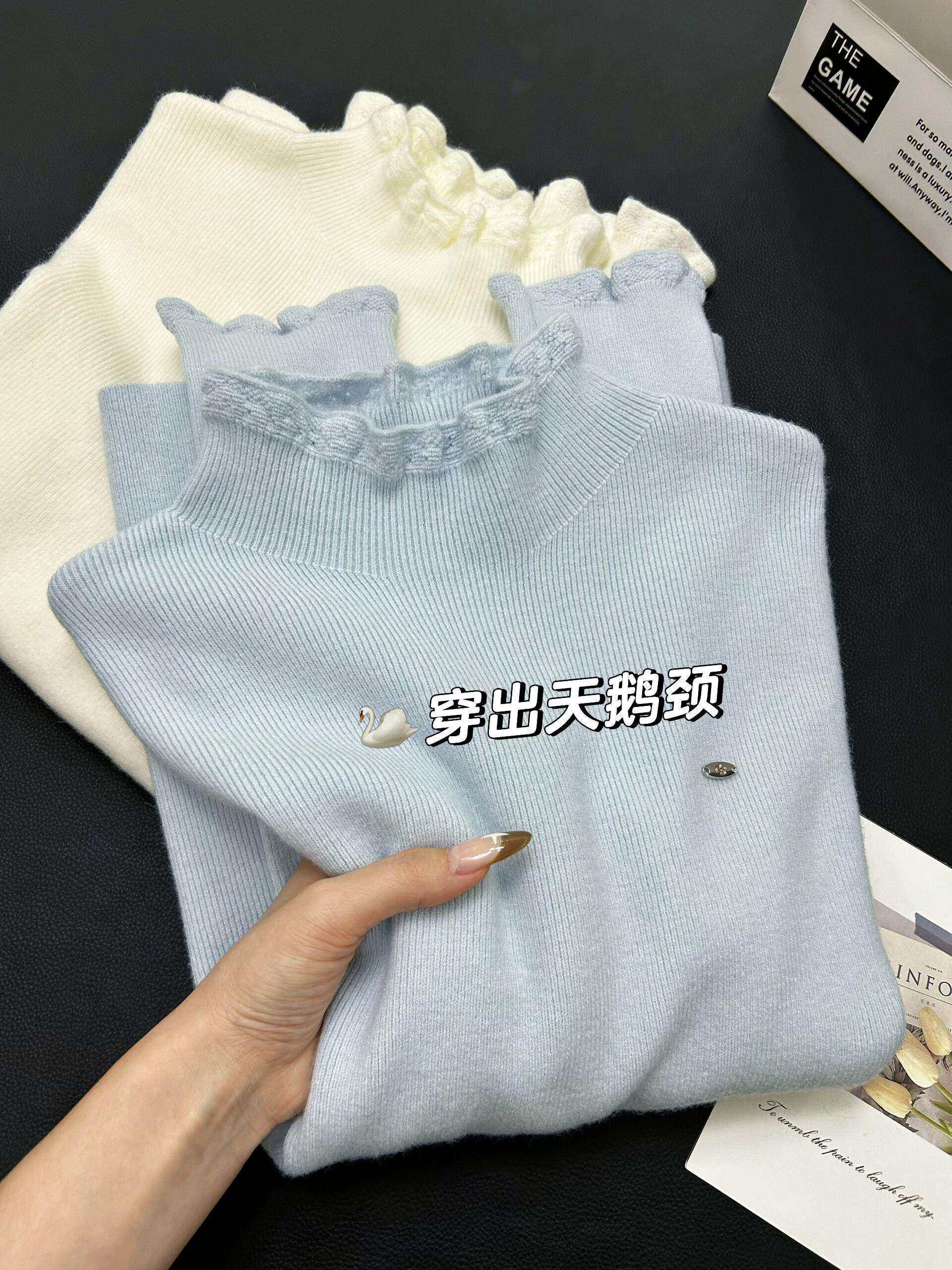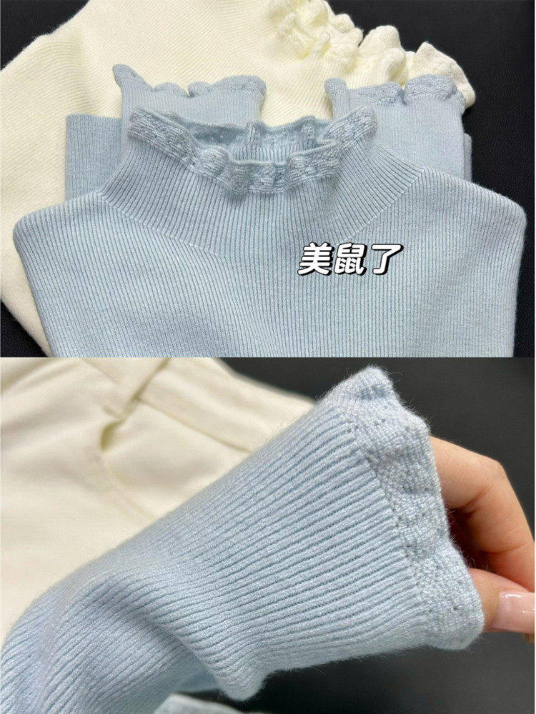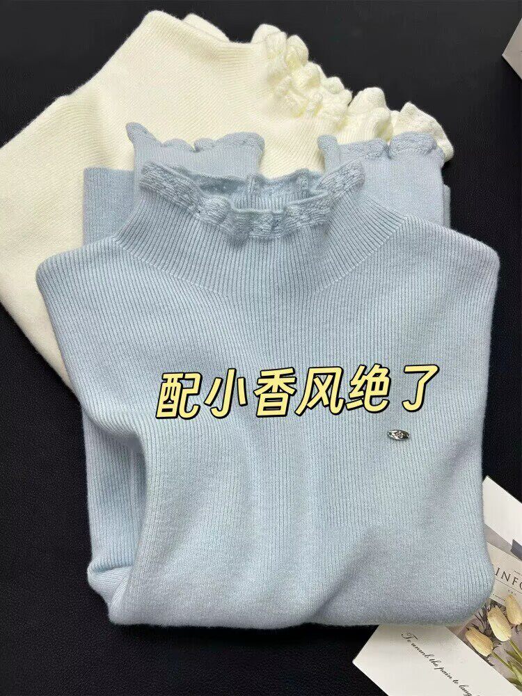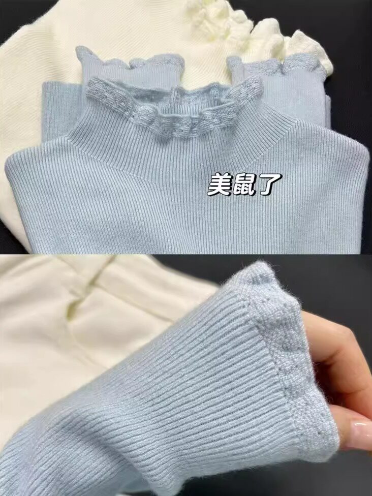 淡颜系蓝色显白半高领针织衫毛衣女秋冬内搭木耳边软糯打底衫上衣