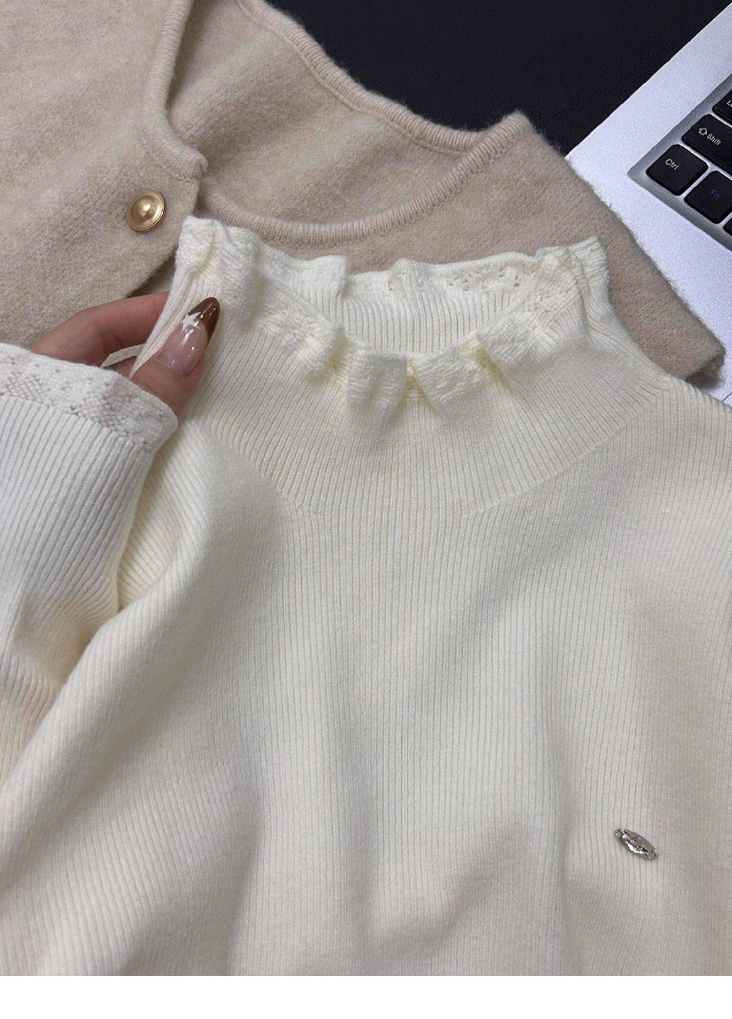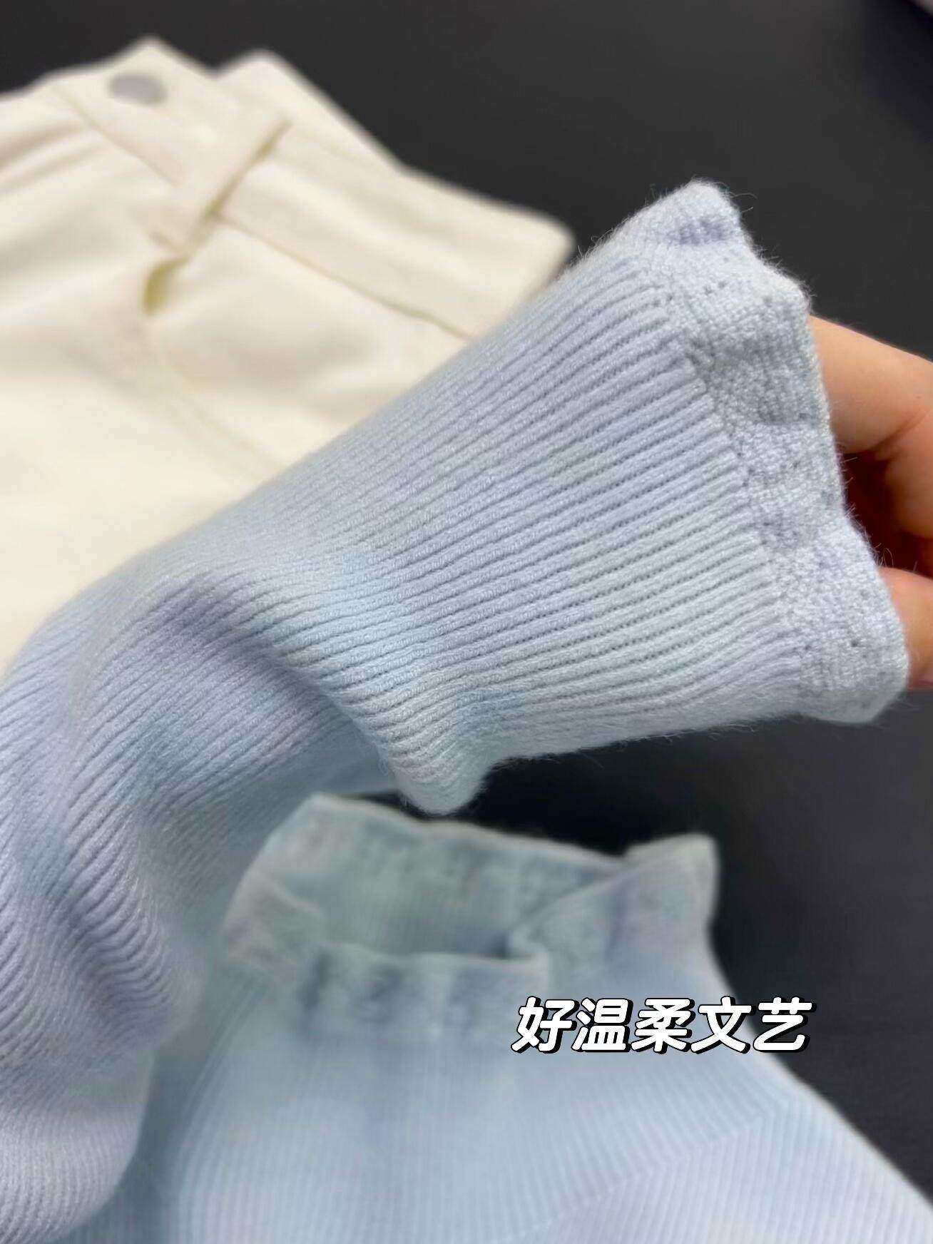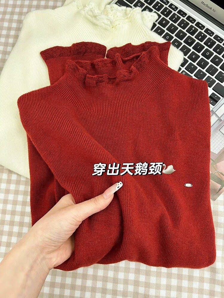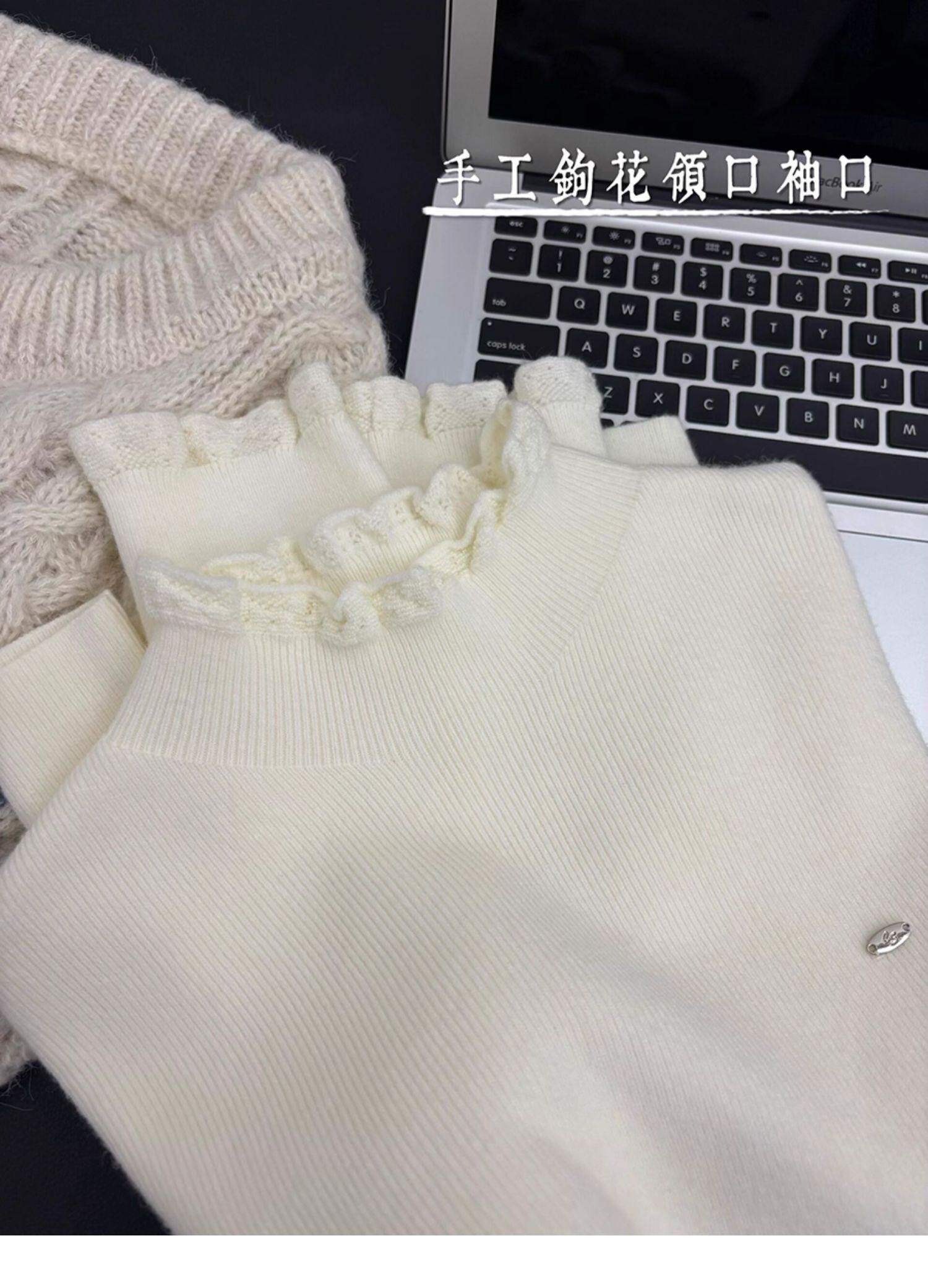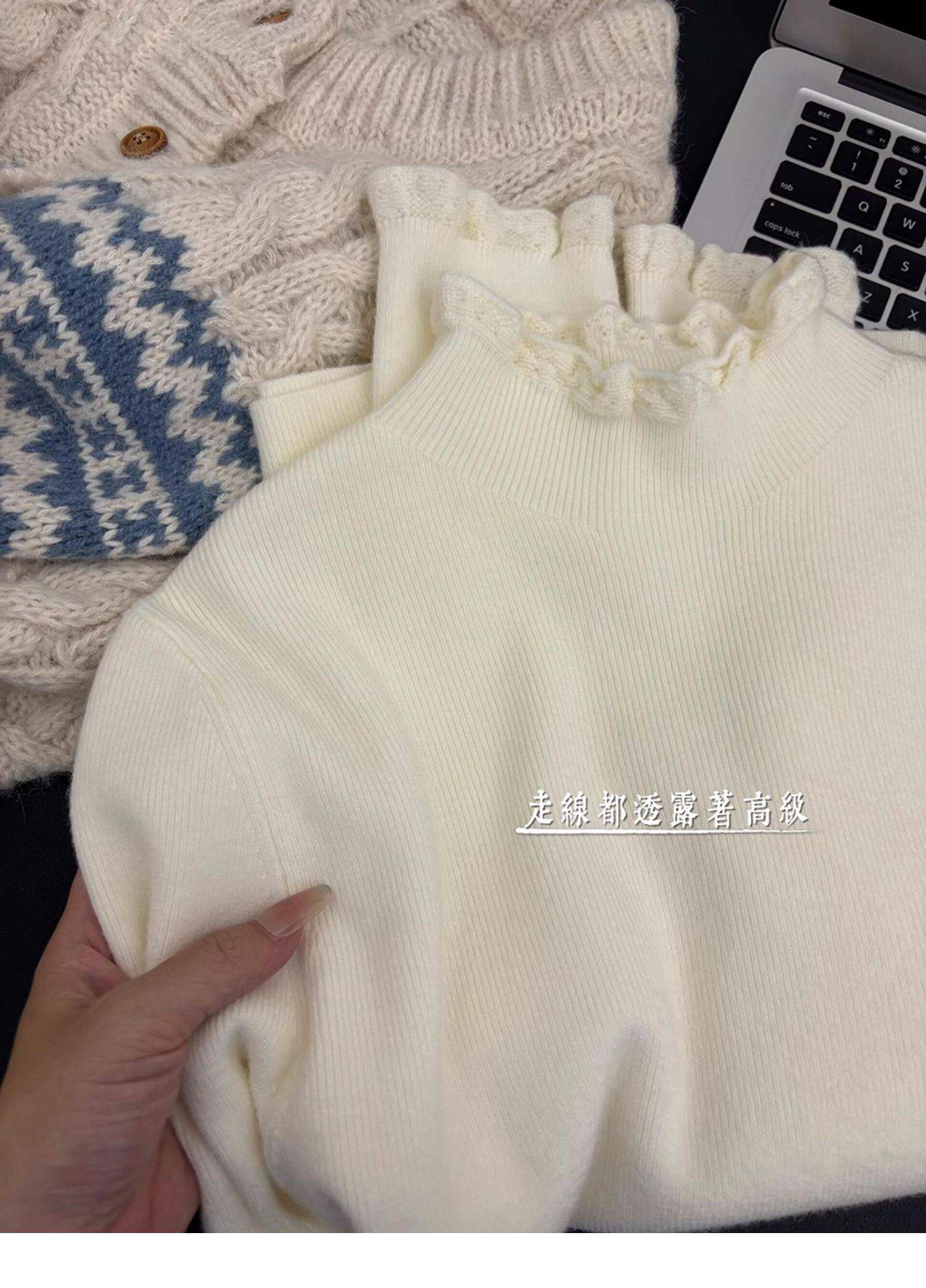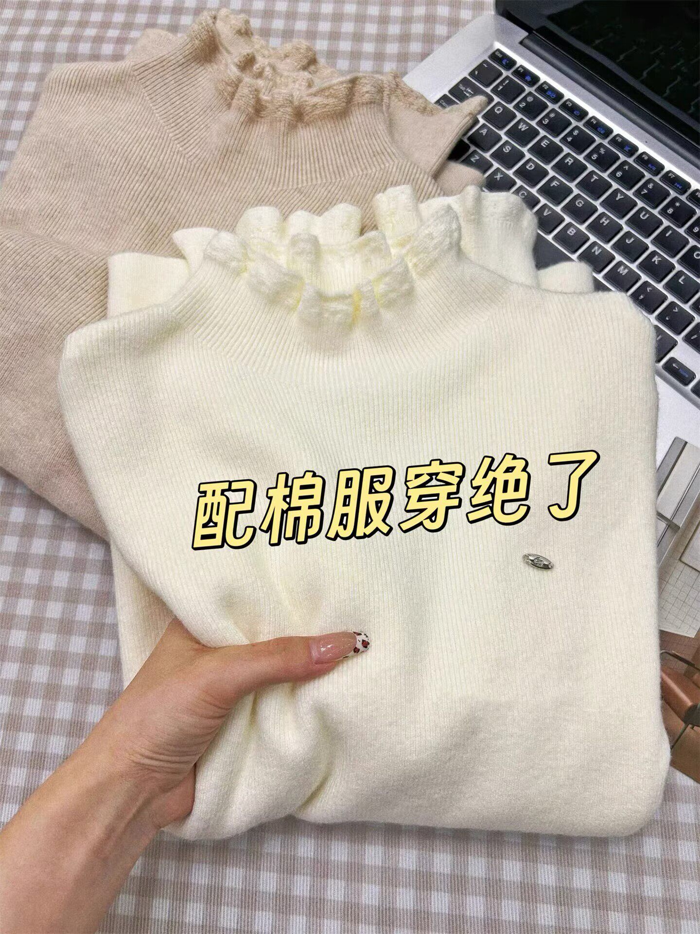 淡颜系蓝色显白半高领针织衫毛衣女秋冬内搭木耳边软糯打底衫上衣
