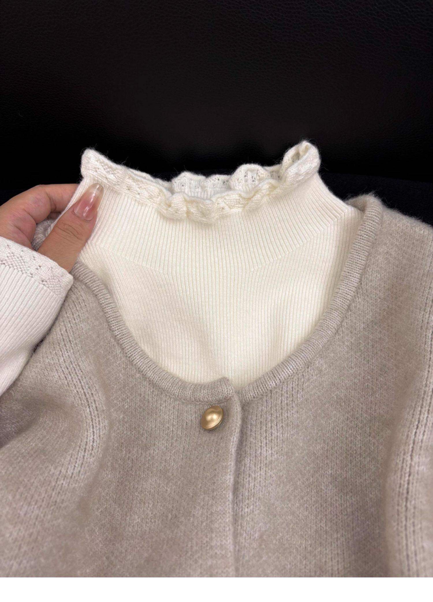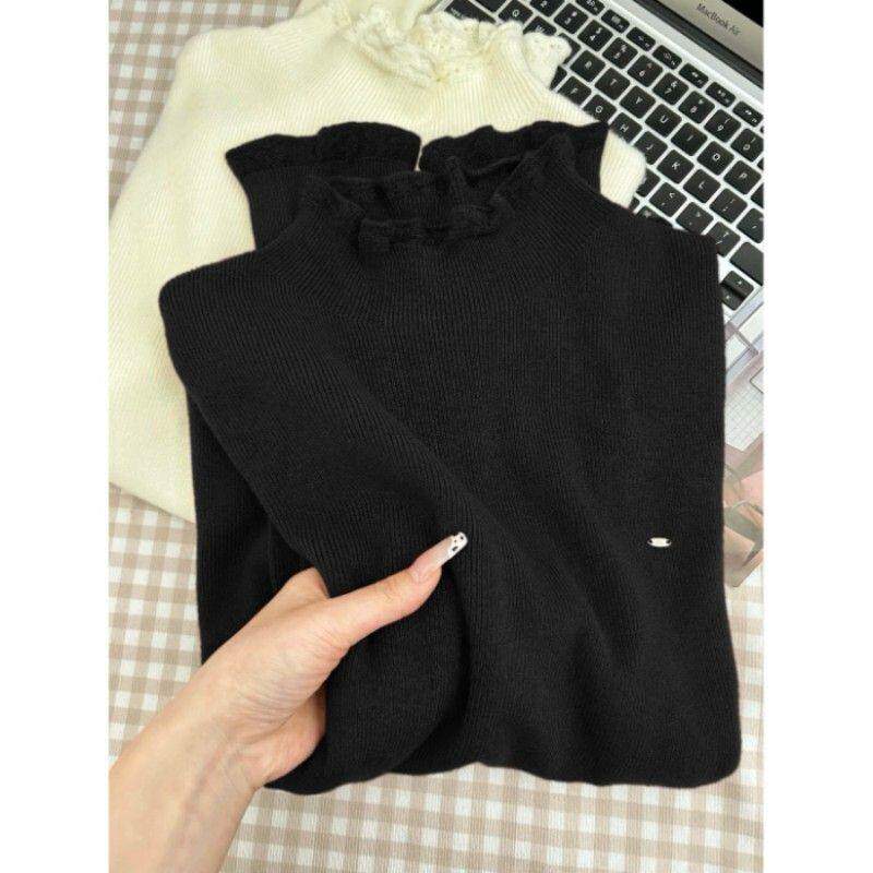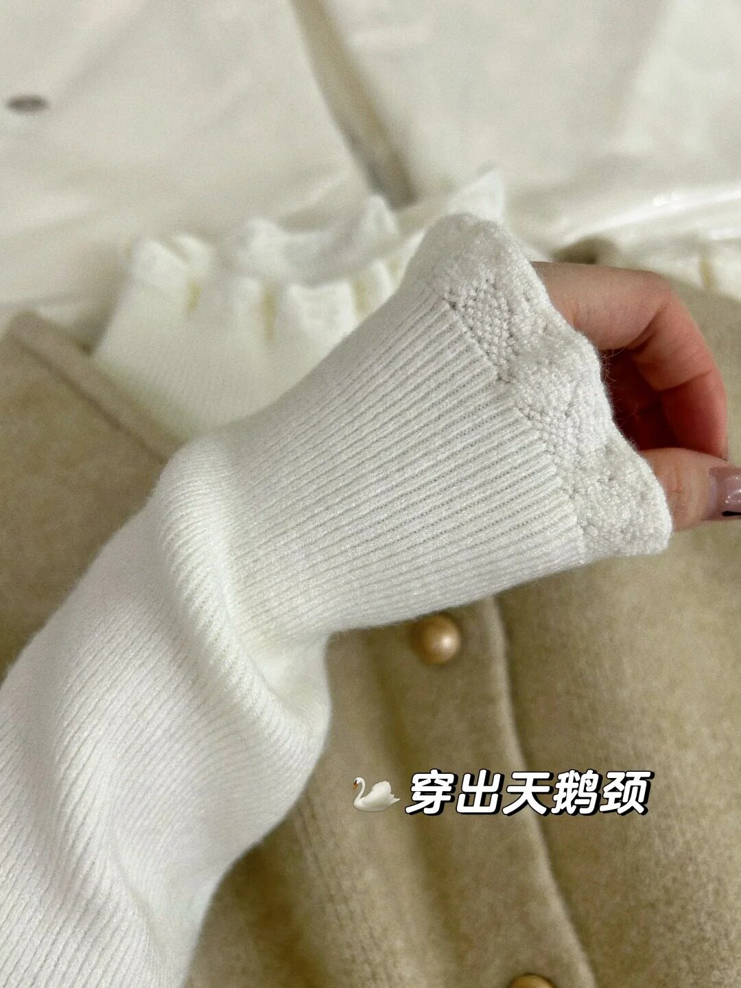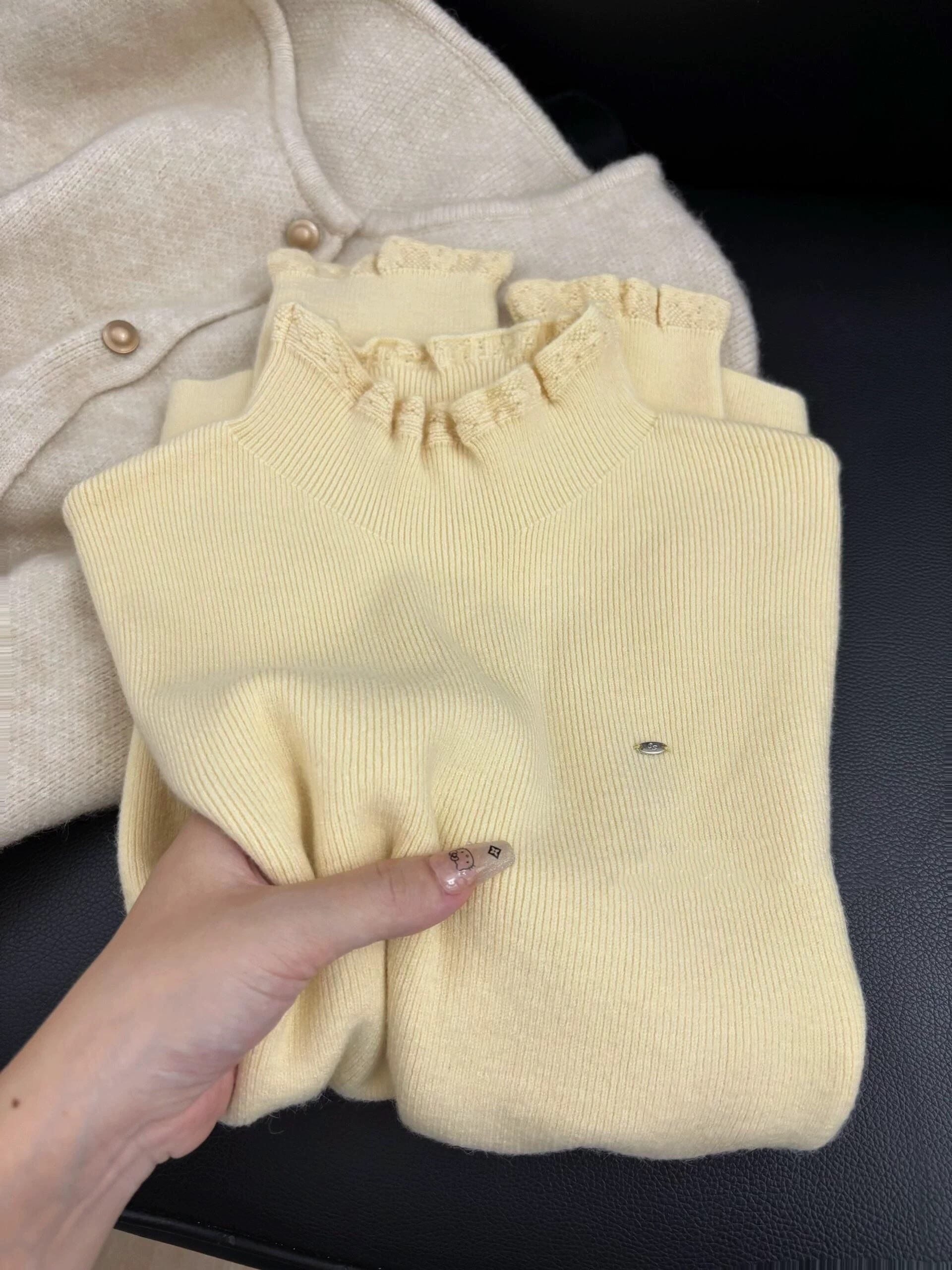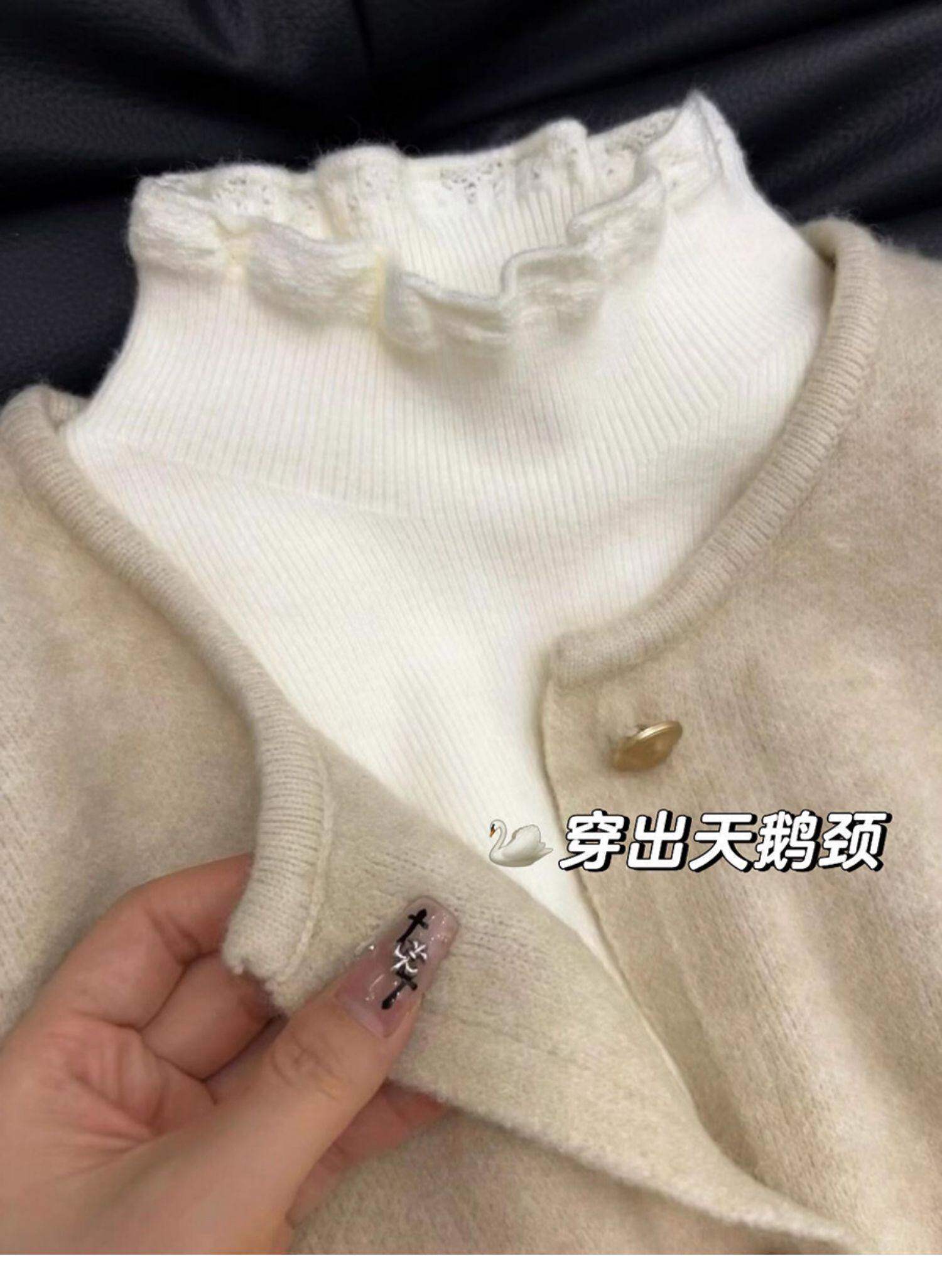 淡颜系蓝色显白半高领针织衫毛衣女秋冬内搭木耳边软糯打底衫上衣