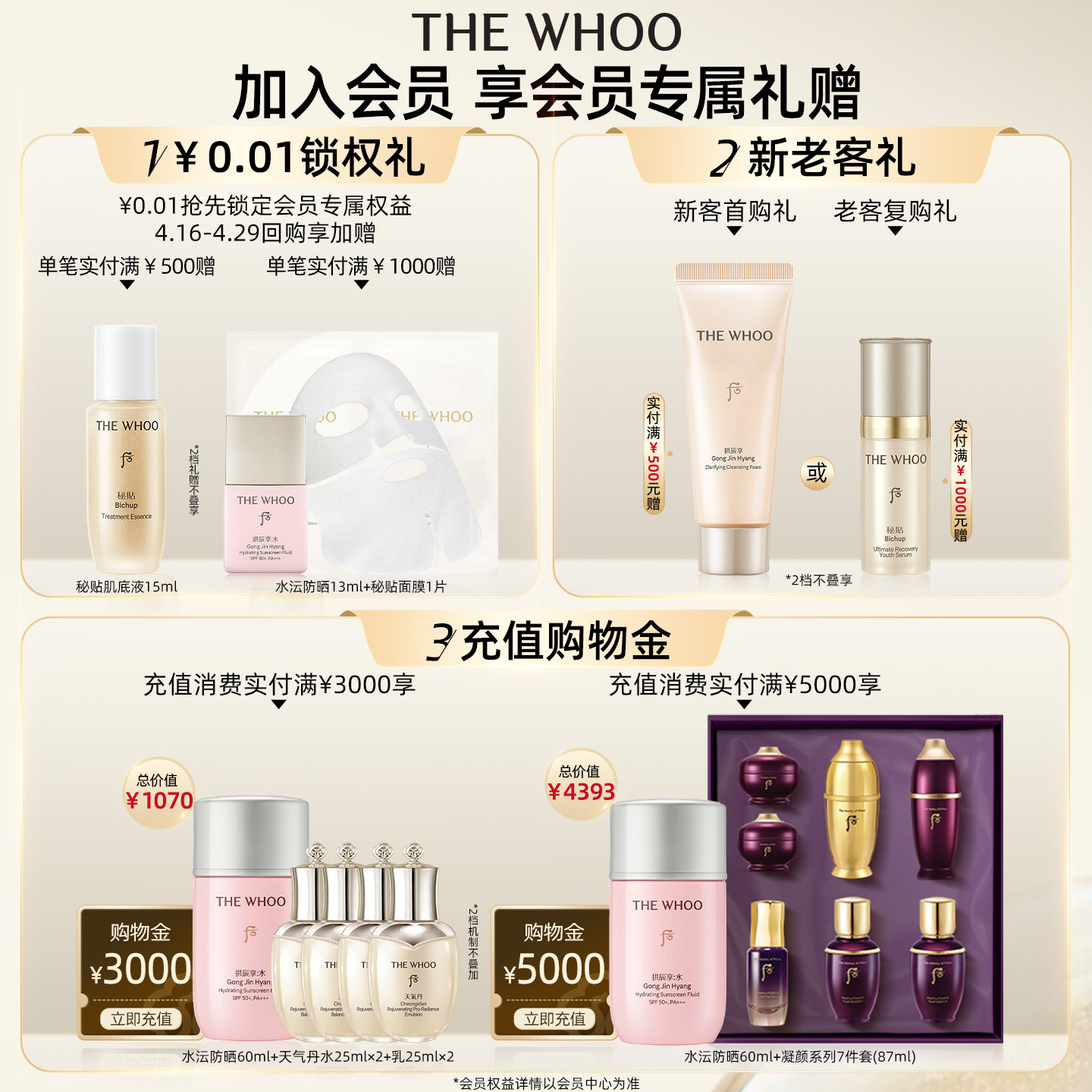 【官方正品】Whoo后津率享密集平颜精华液礼盒5件套95ml 保湿紧致