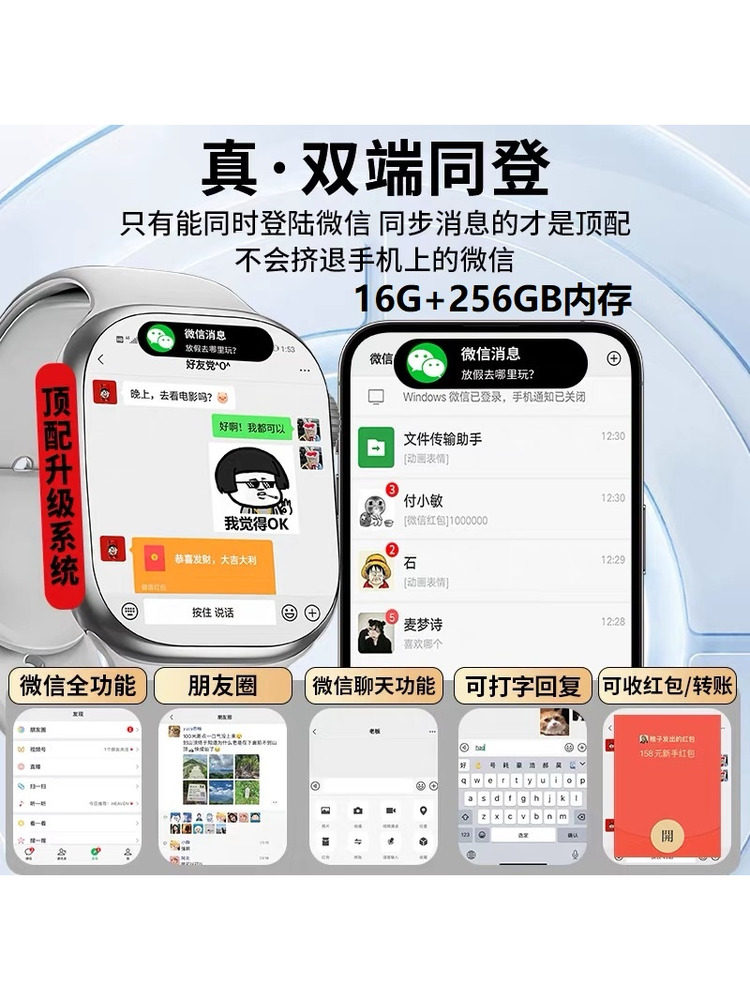 16GB+256GB插卡通话运动学习办公便宜手表全网通5G智能手表S11pro