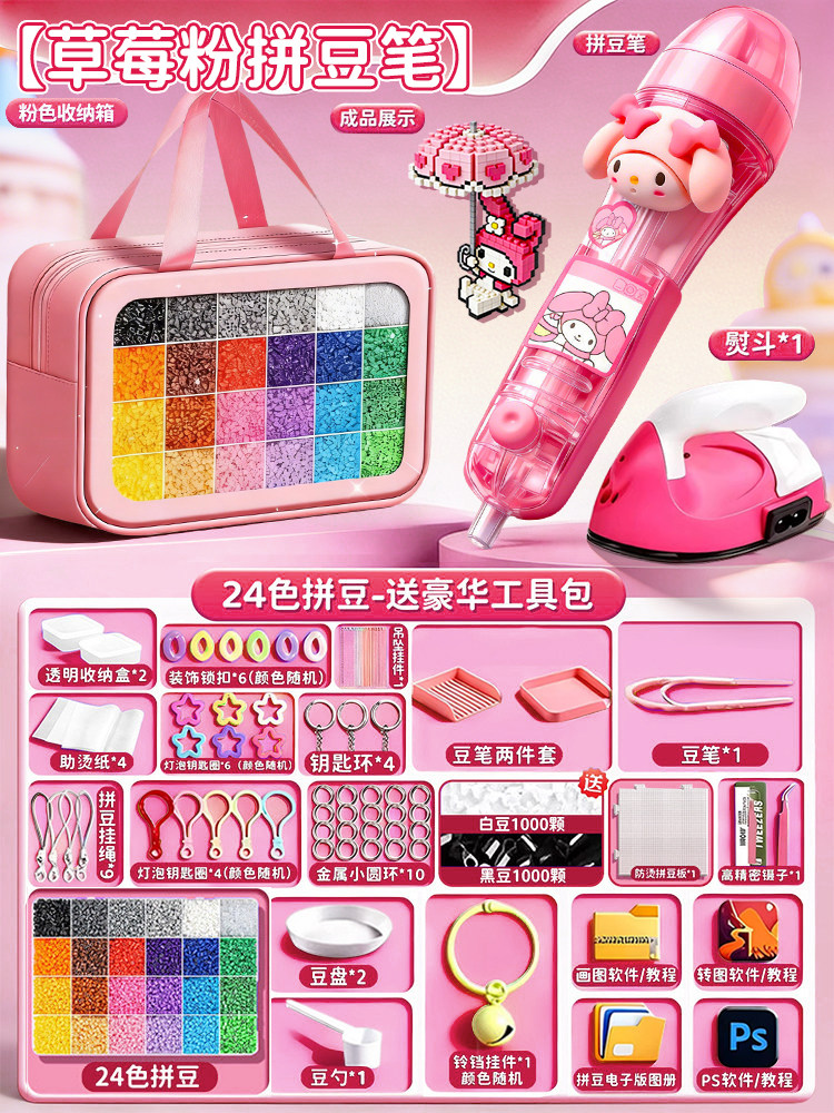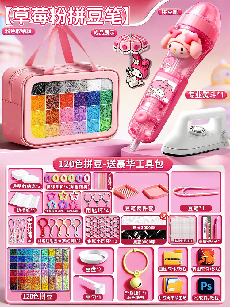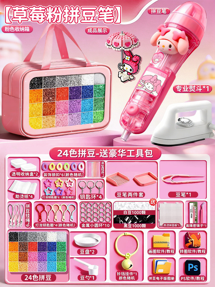 拼豆豆手工diy套装自动拼豆笔专用熨斗全套工具补充材料包玩具女8