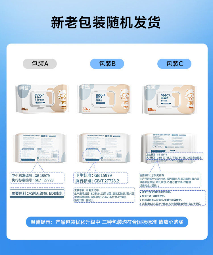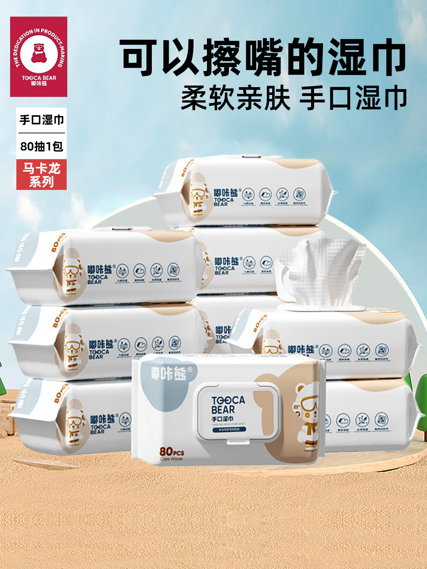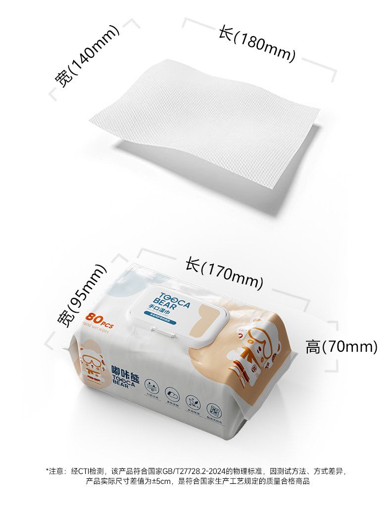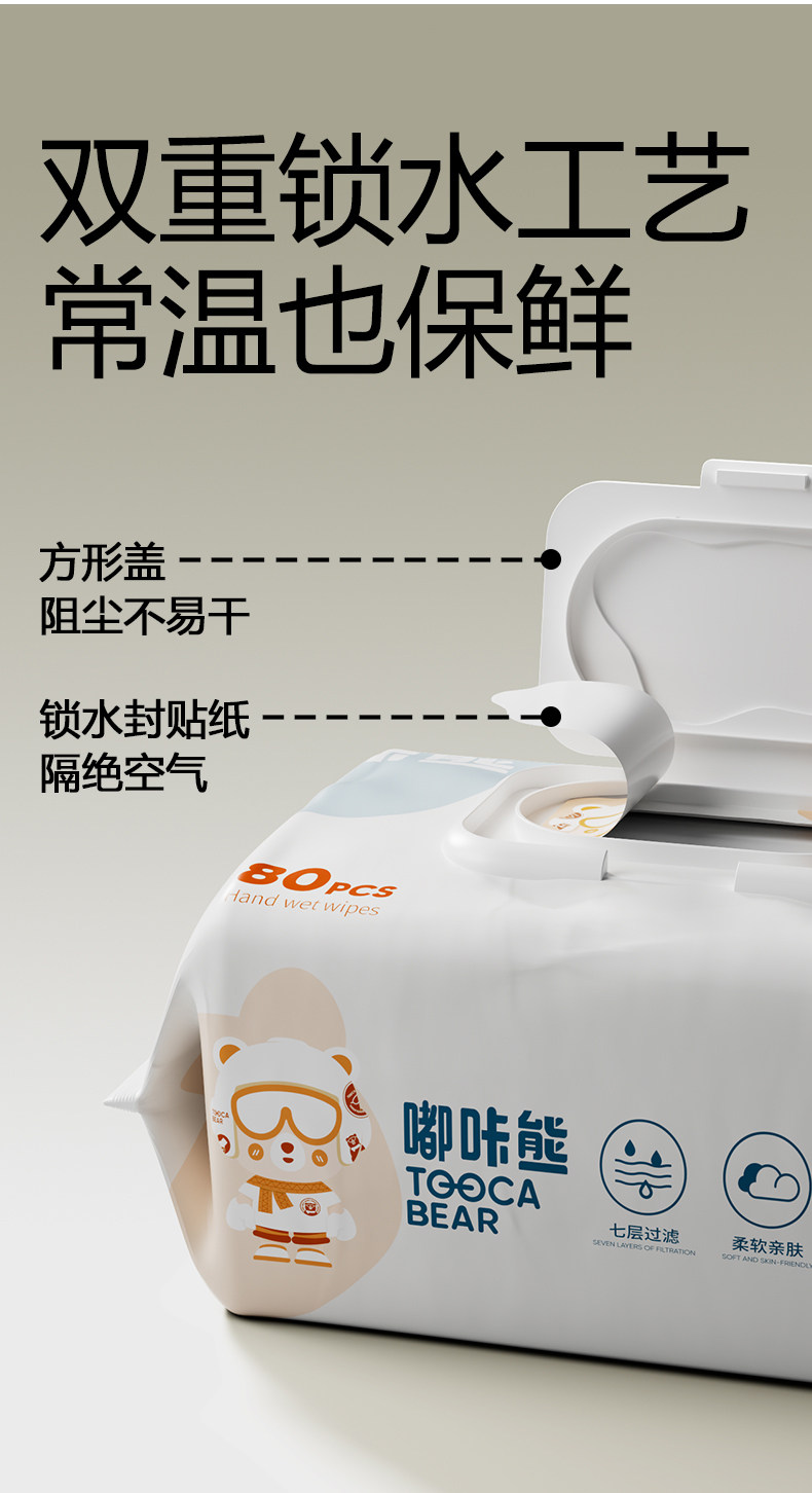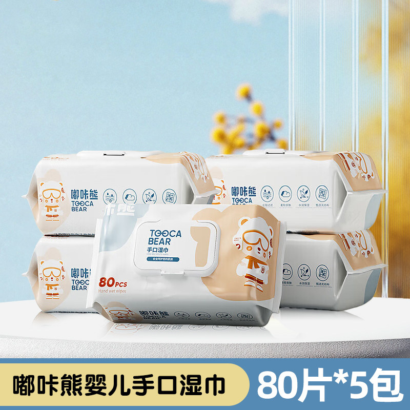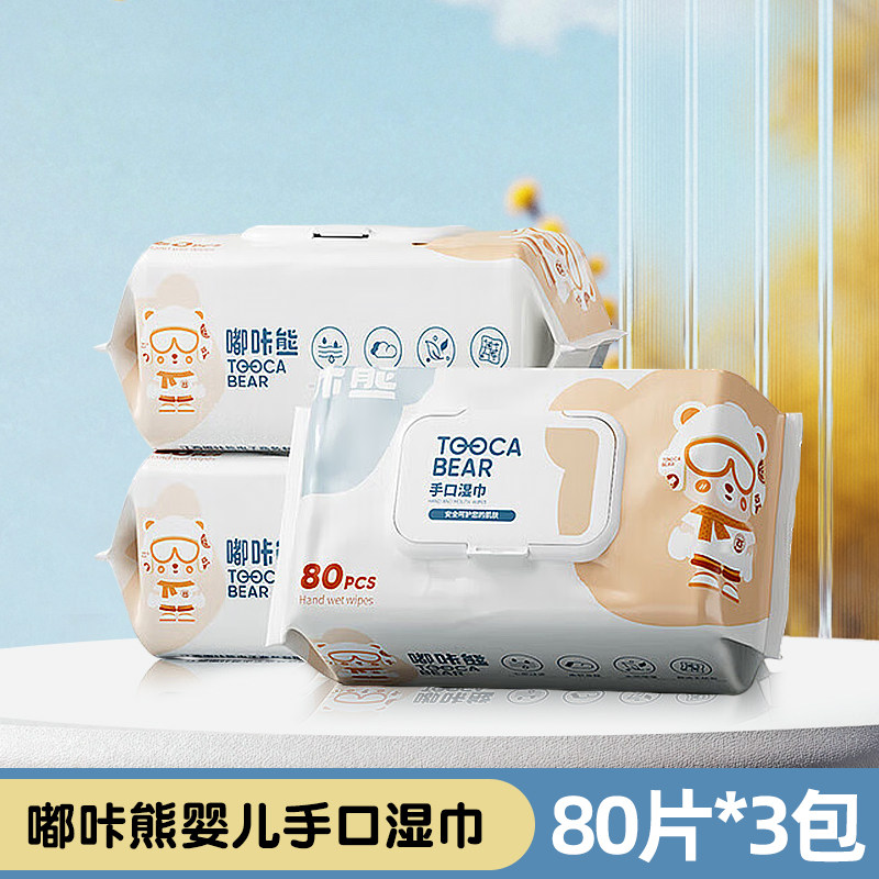 嘟咔熊婴儿湿巾婴幼儿宝宝手口屁专用湿巾纸加大加厚80抽实惠大包