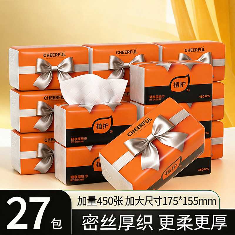 植护450张大包抽纸整箱实惠装车载用婴儿面巾纸卫生纸擦手一整箱