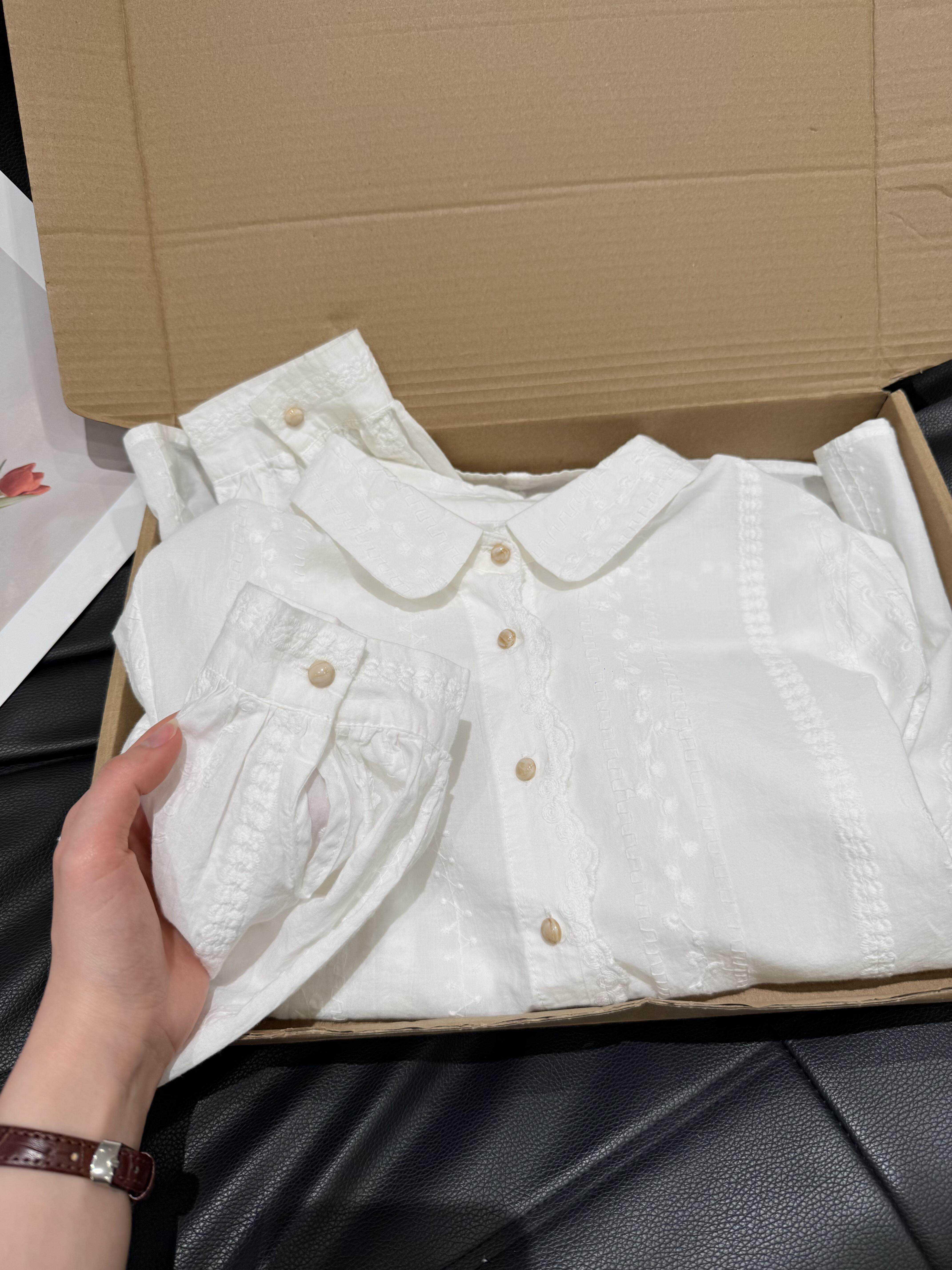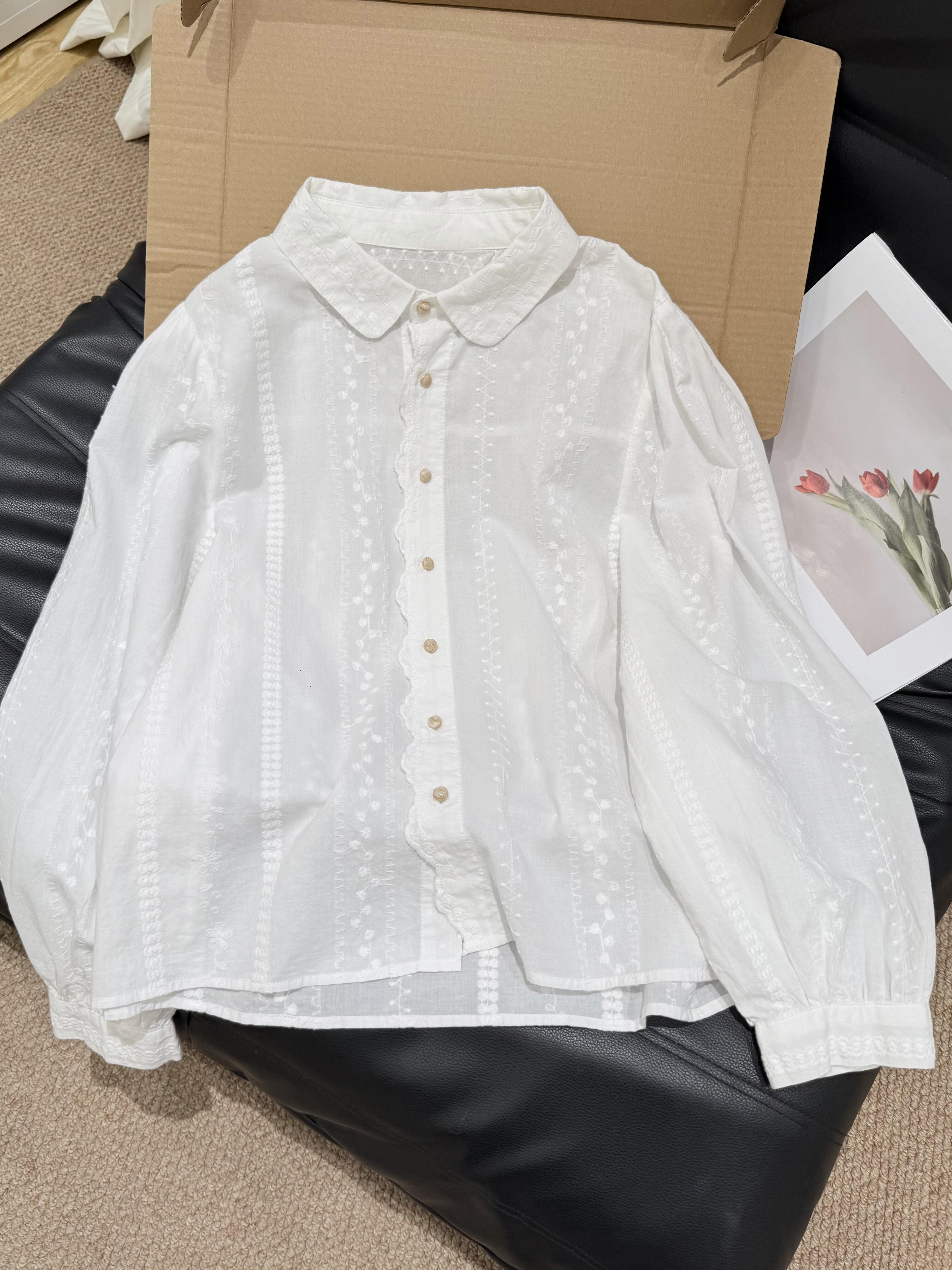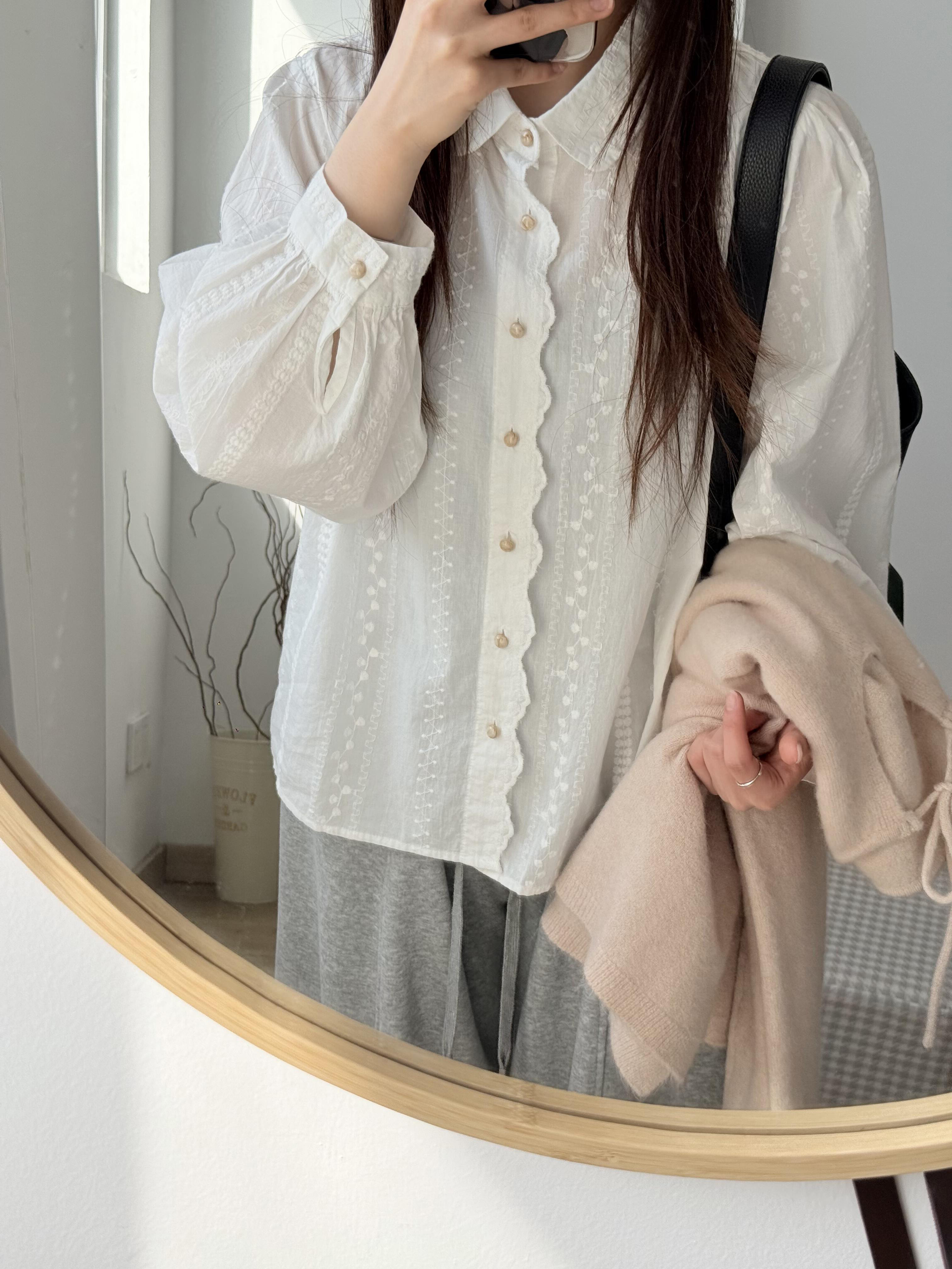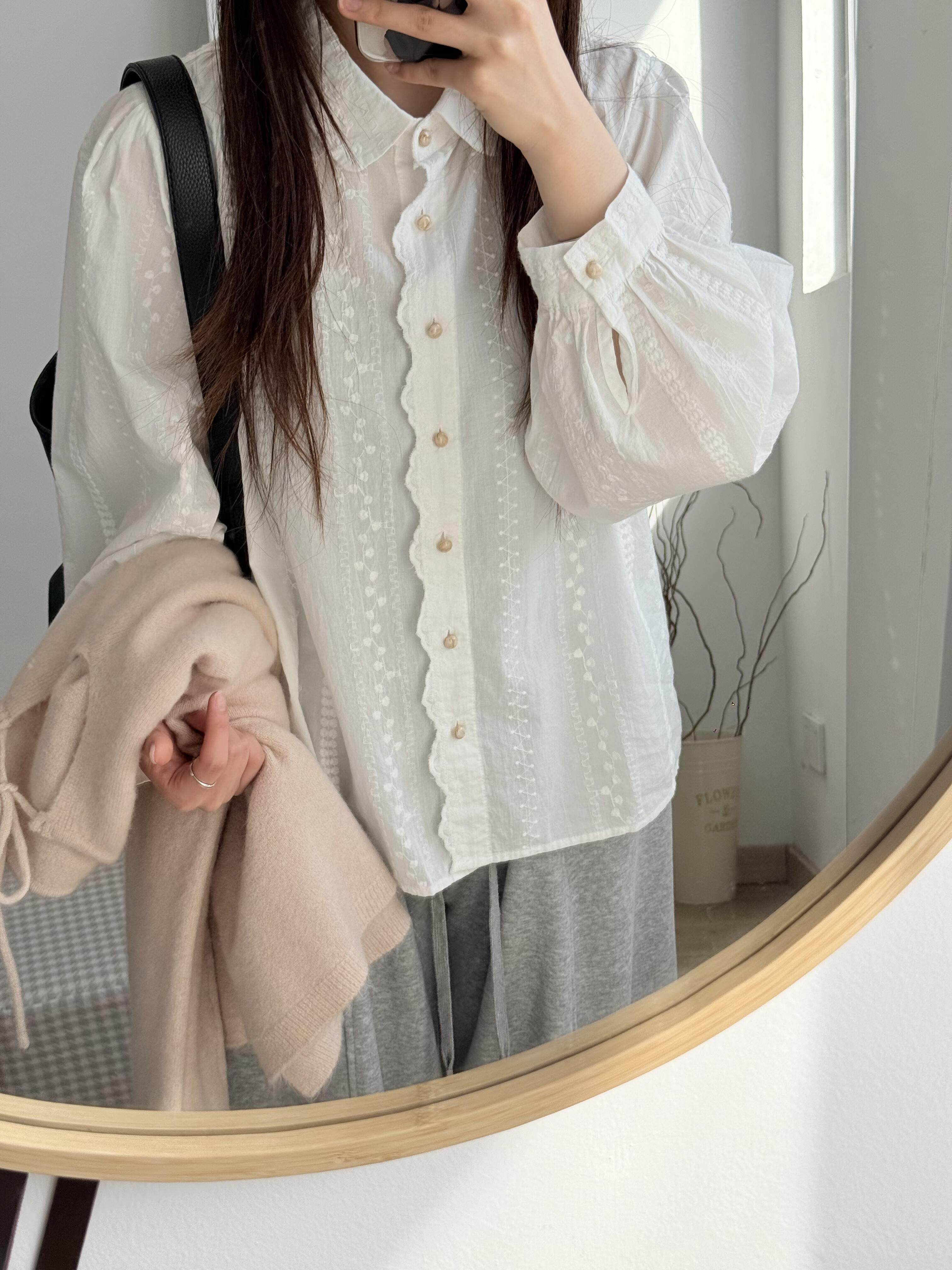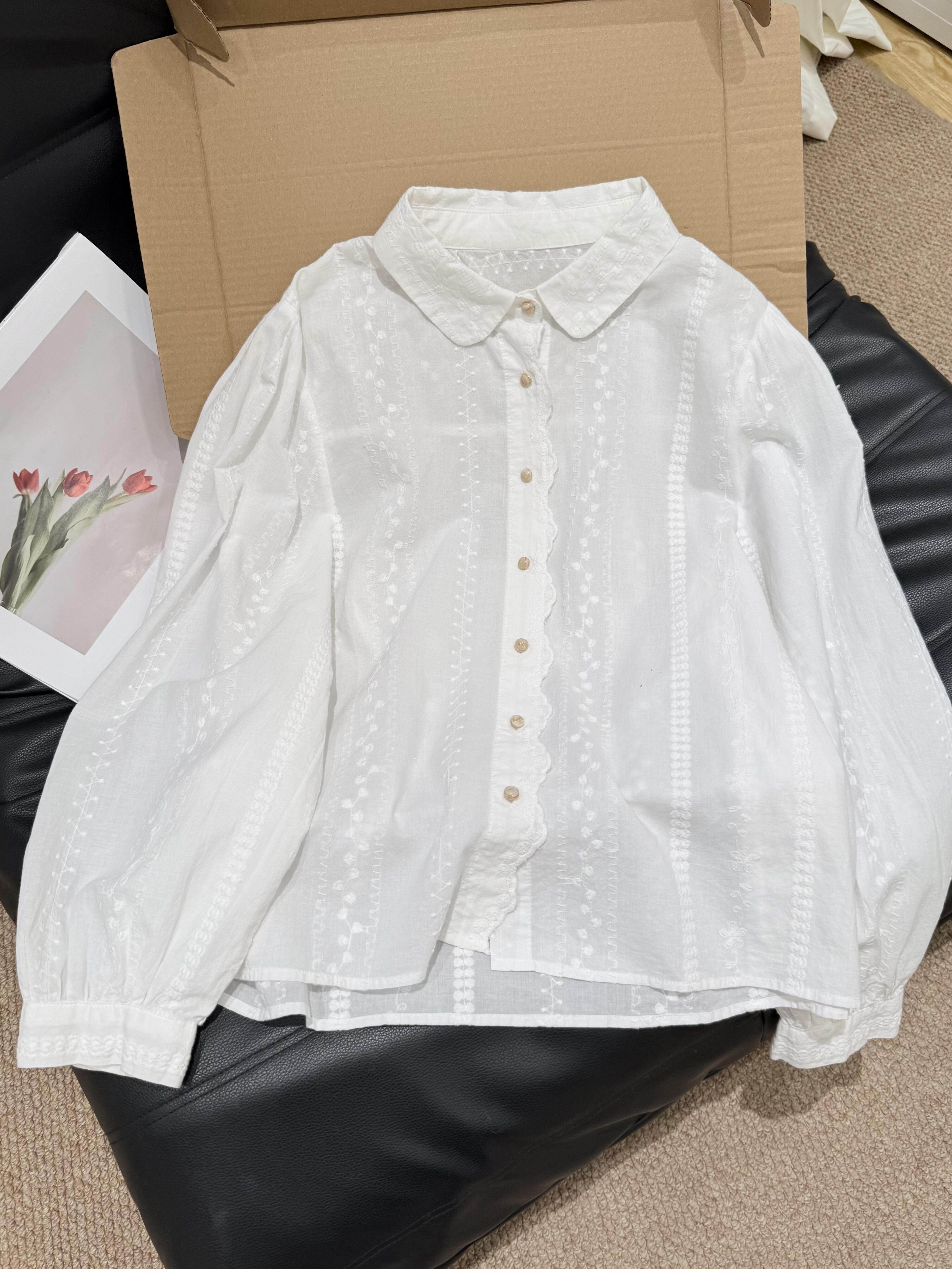 自留爆款推荐~法式刺绣提花白色衬衫女春季高级感气质减龄上衣女