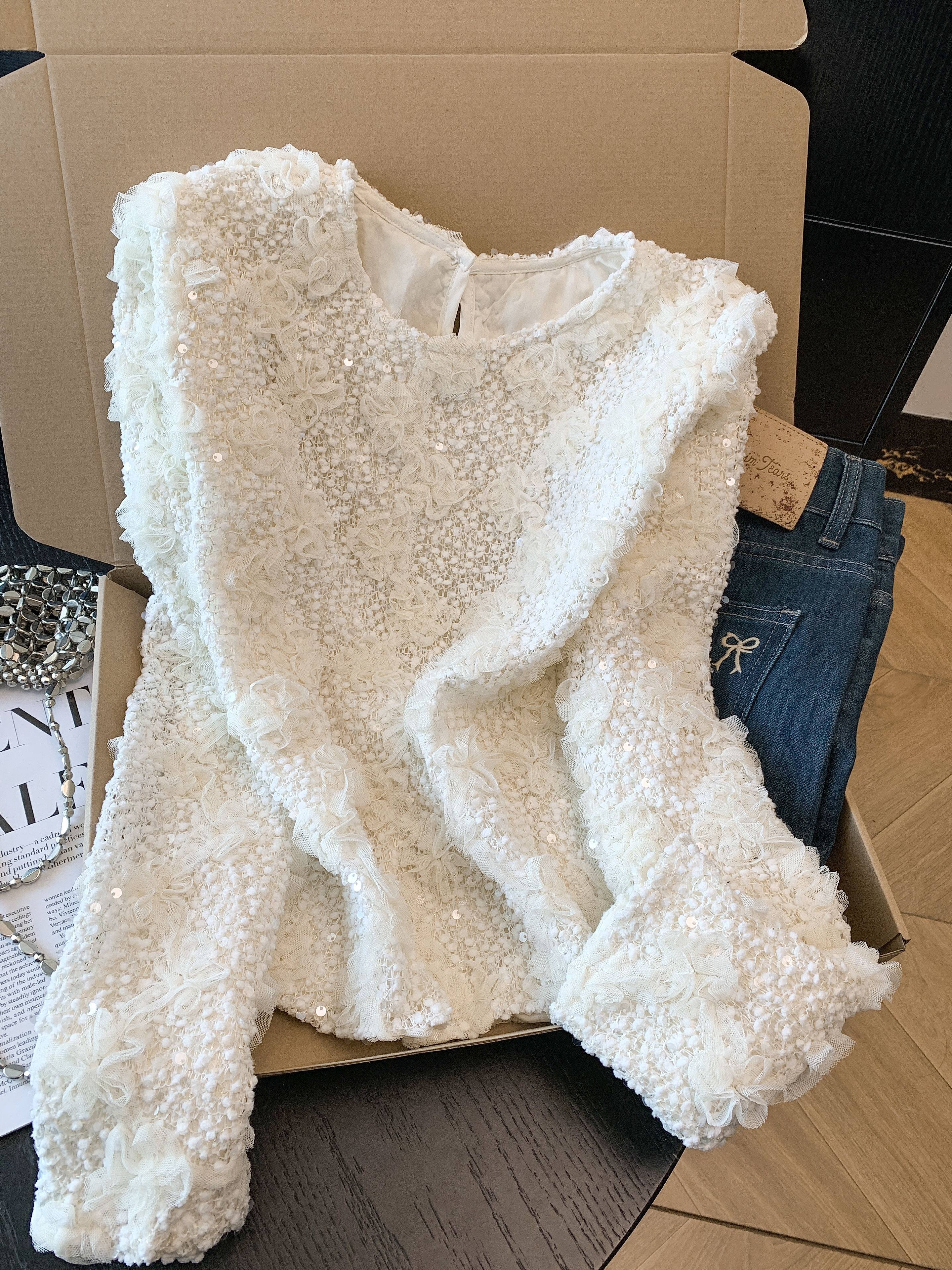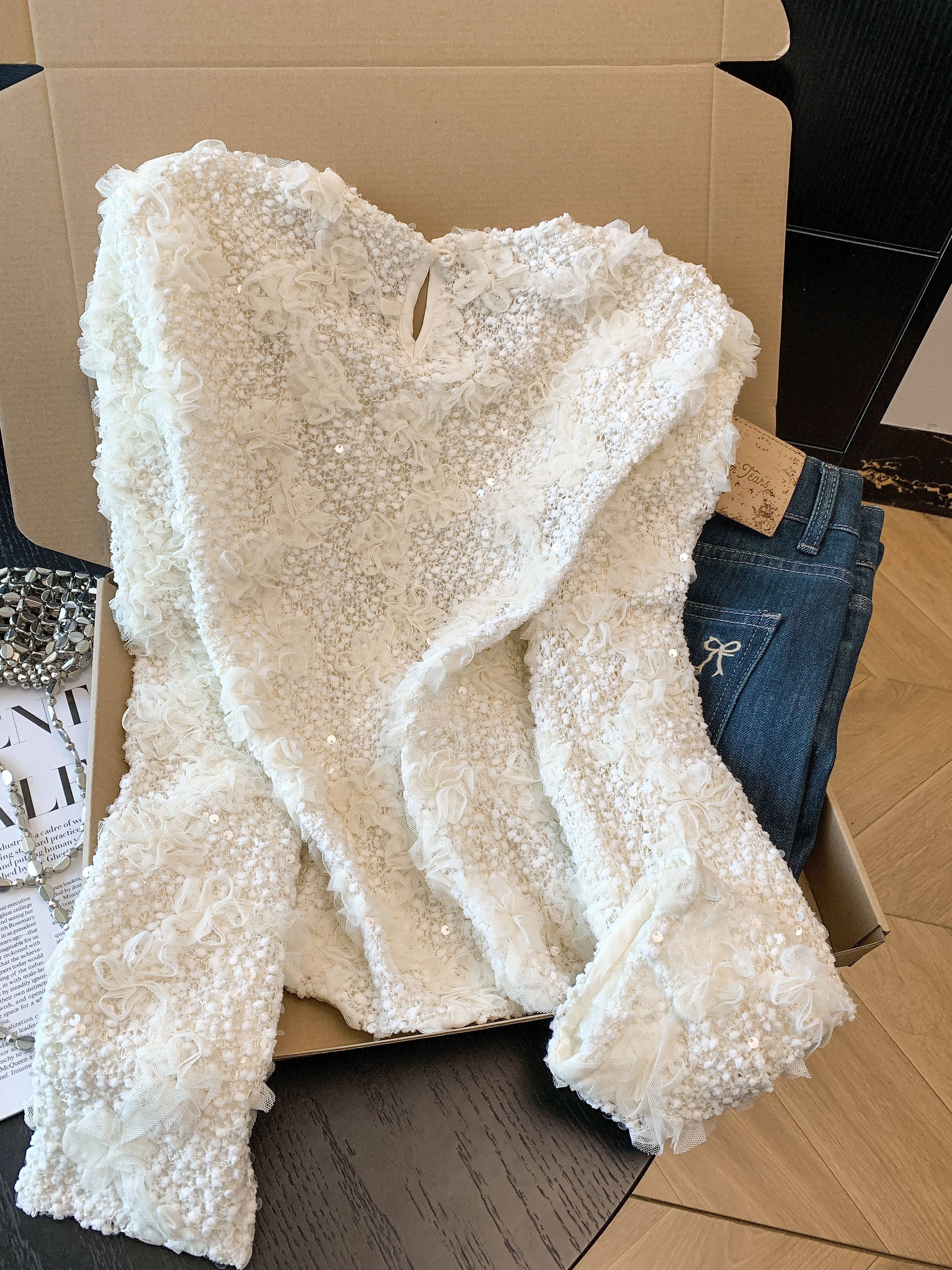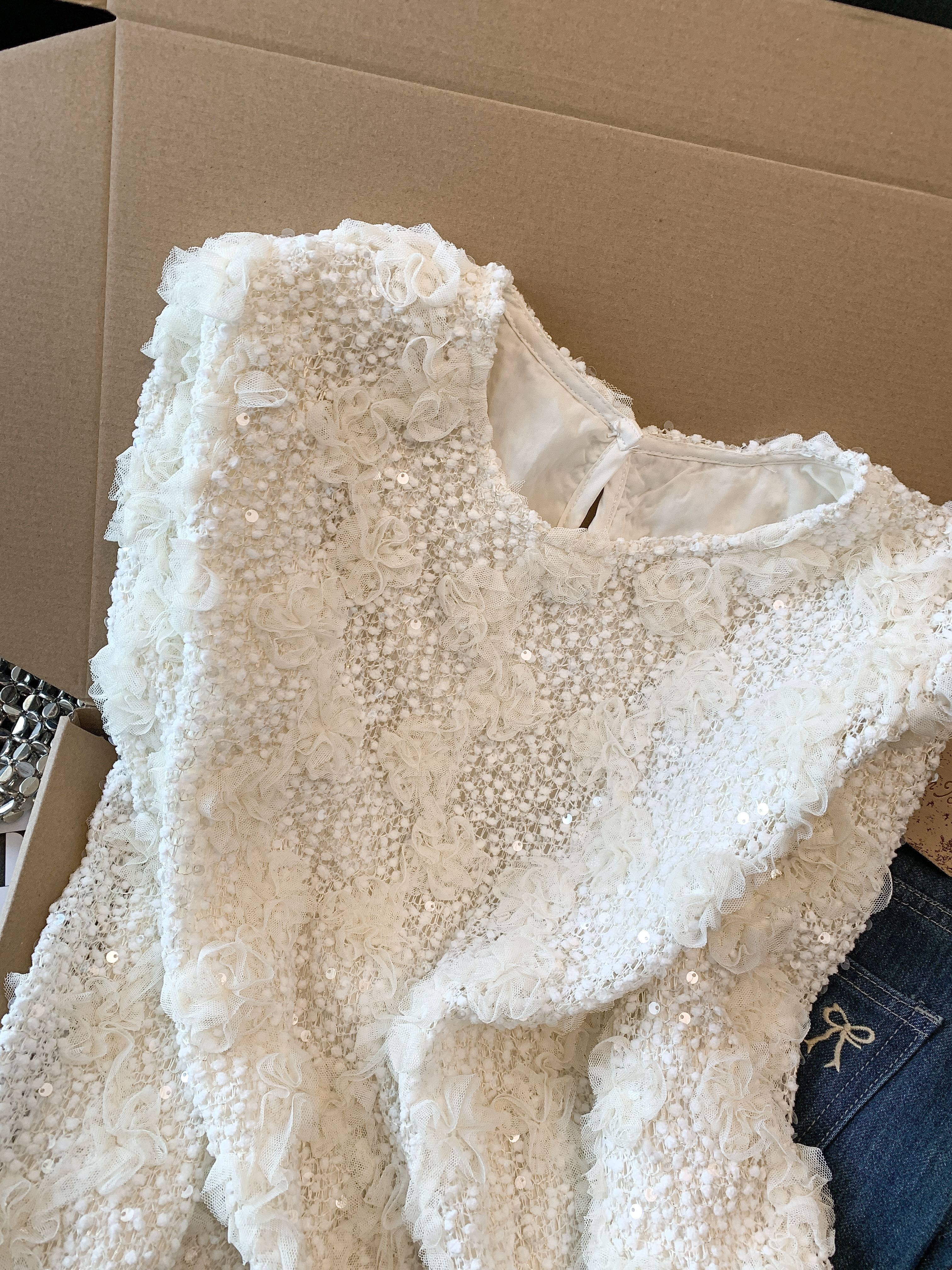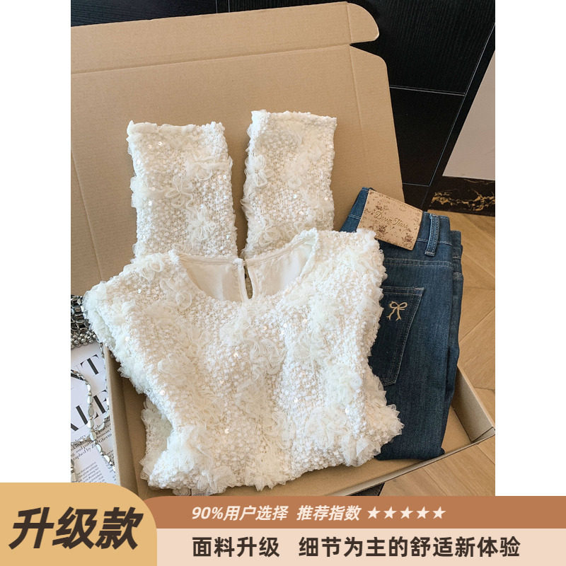 自留款推荐~温柔风立体花朵亮片针织衫女2026春甜美显瘦漂亮上衣