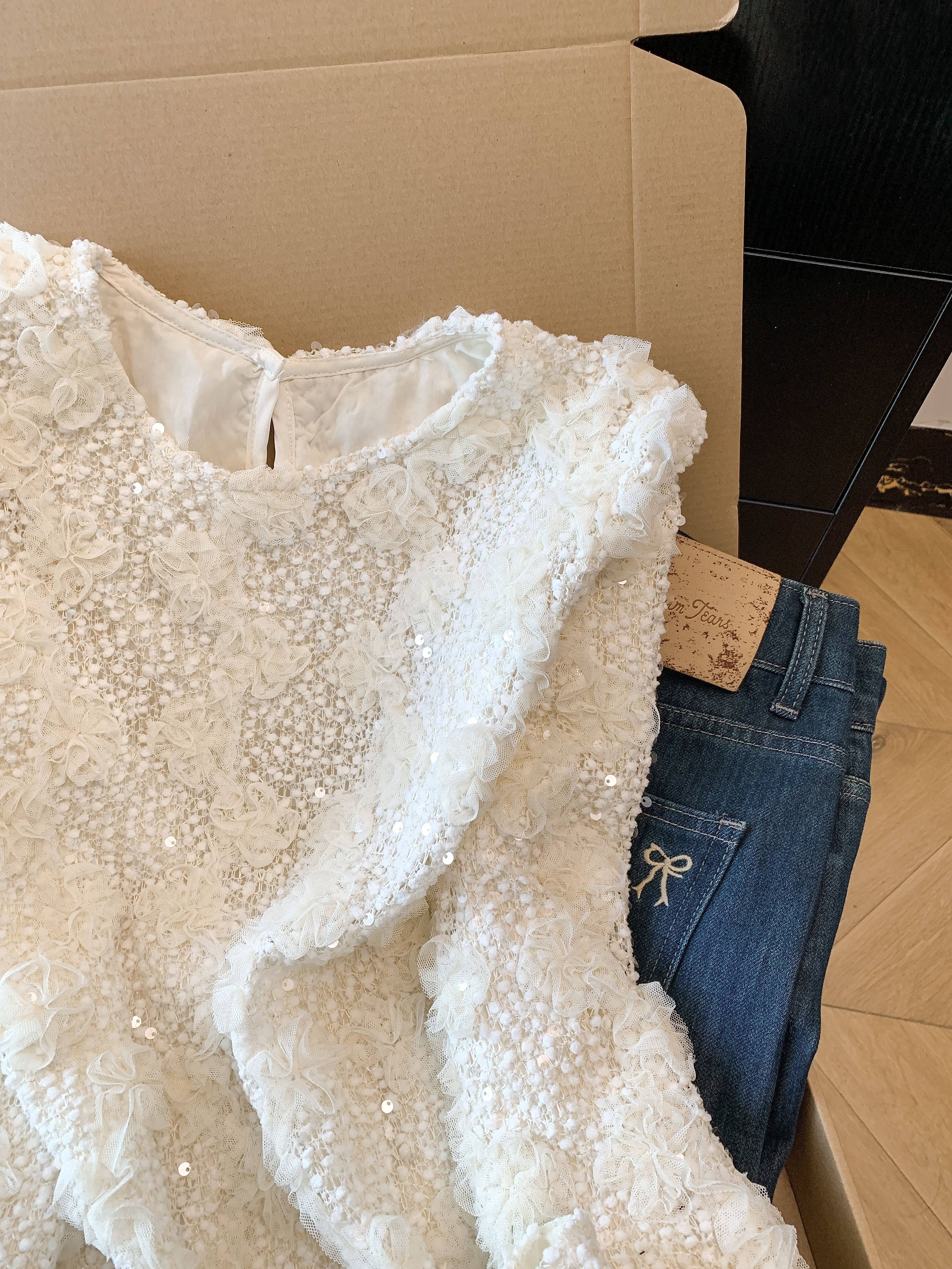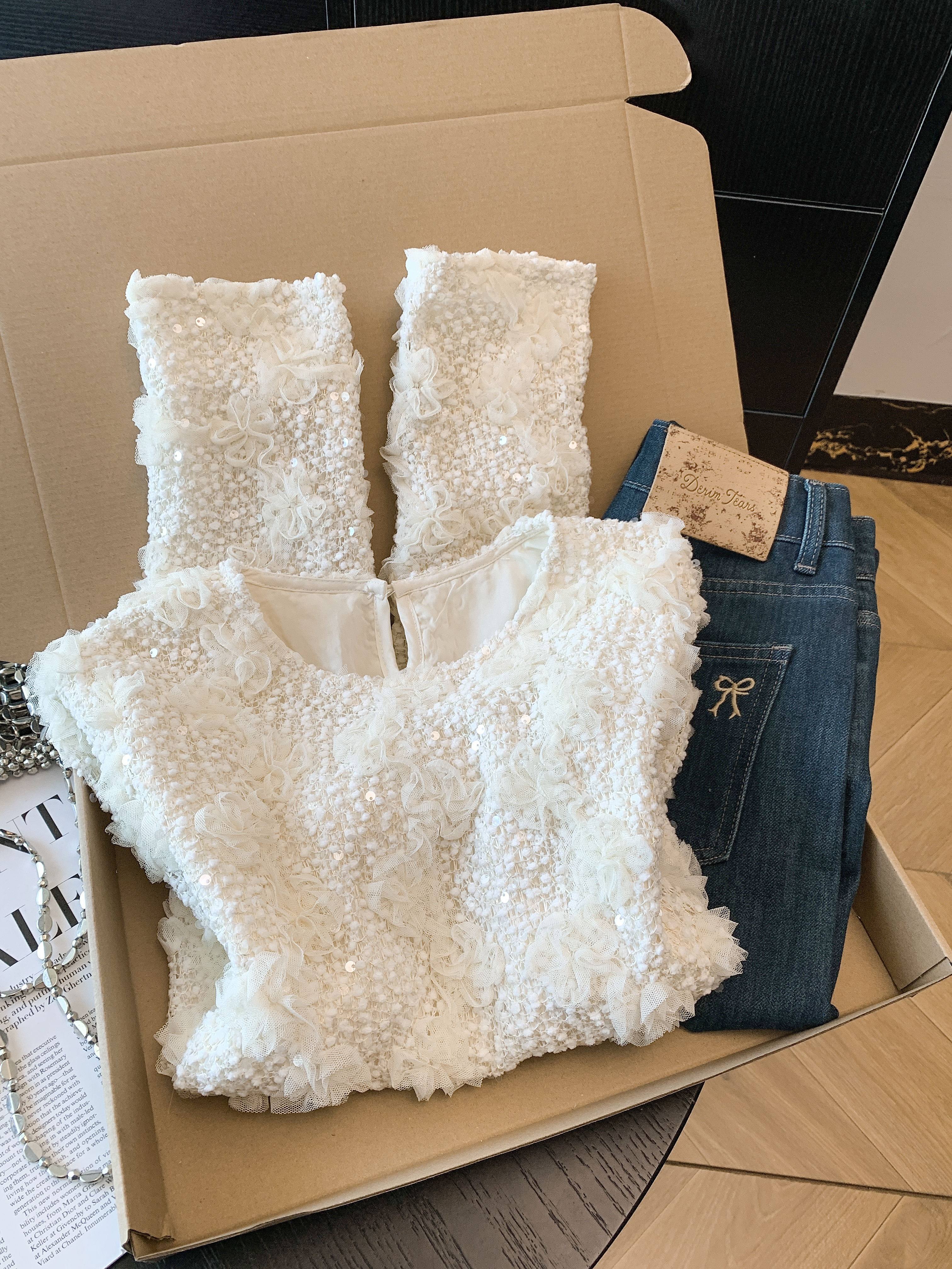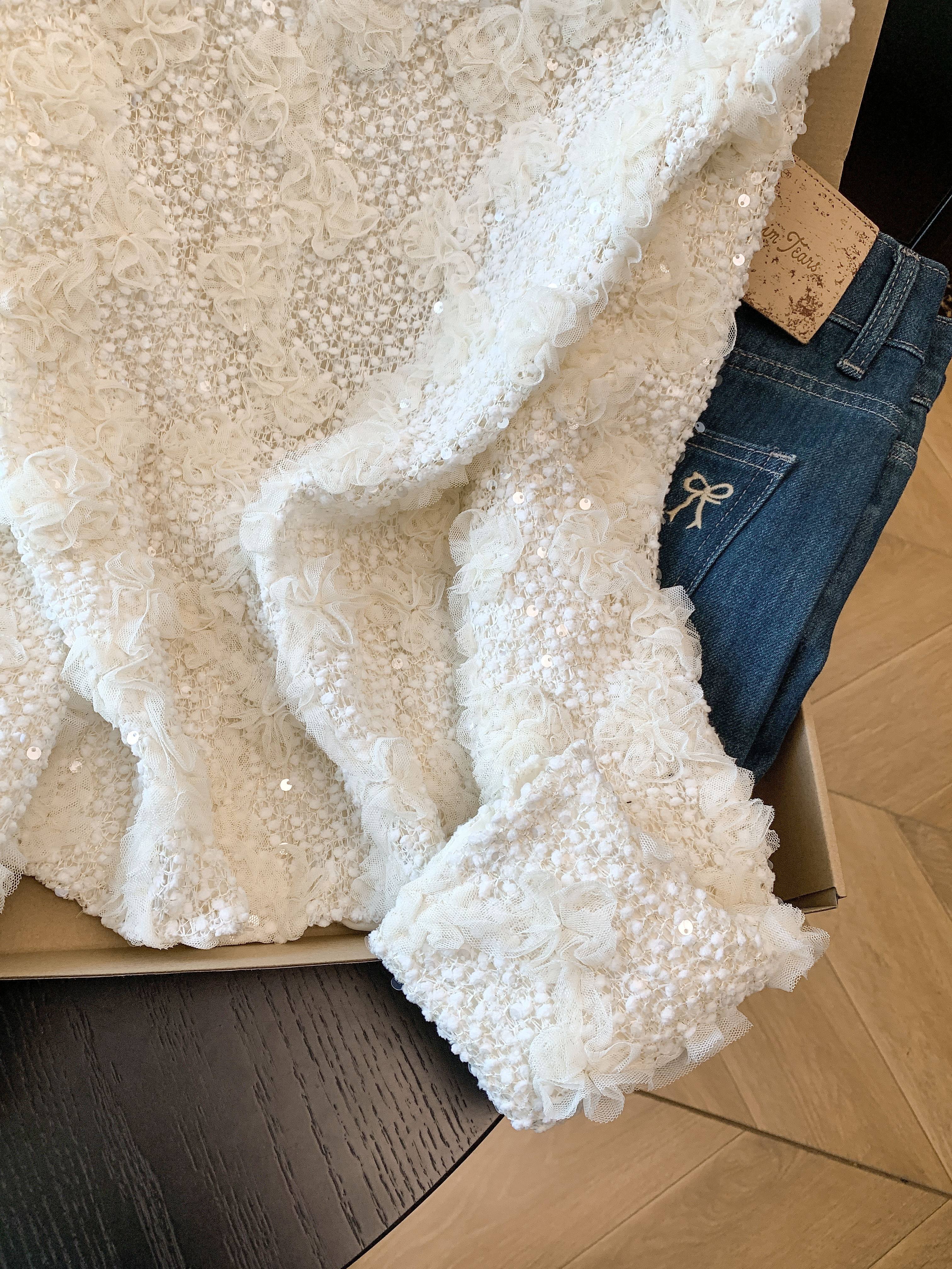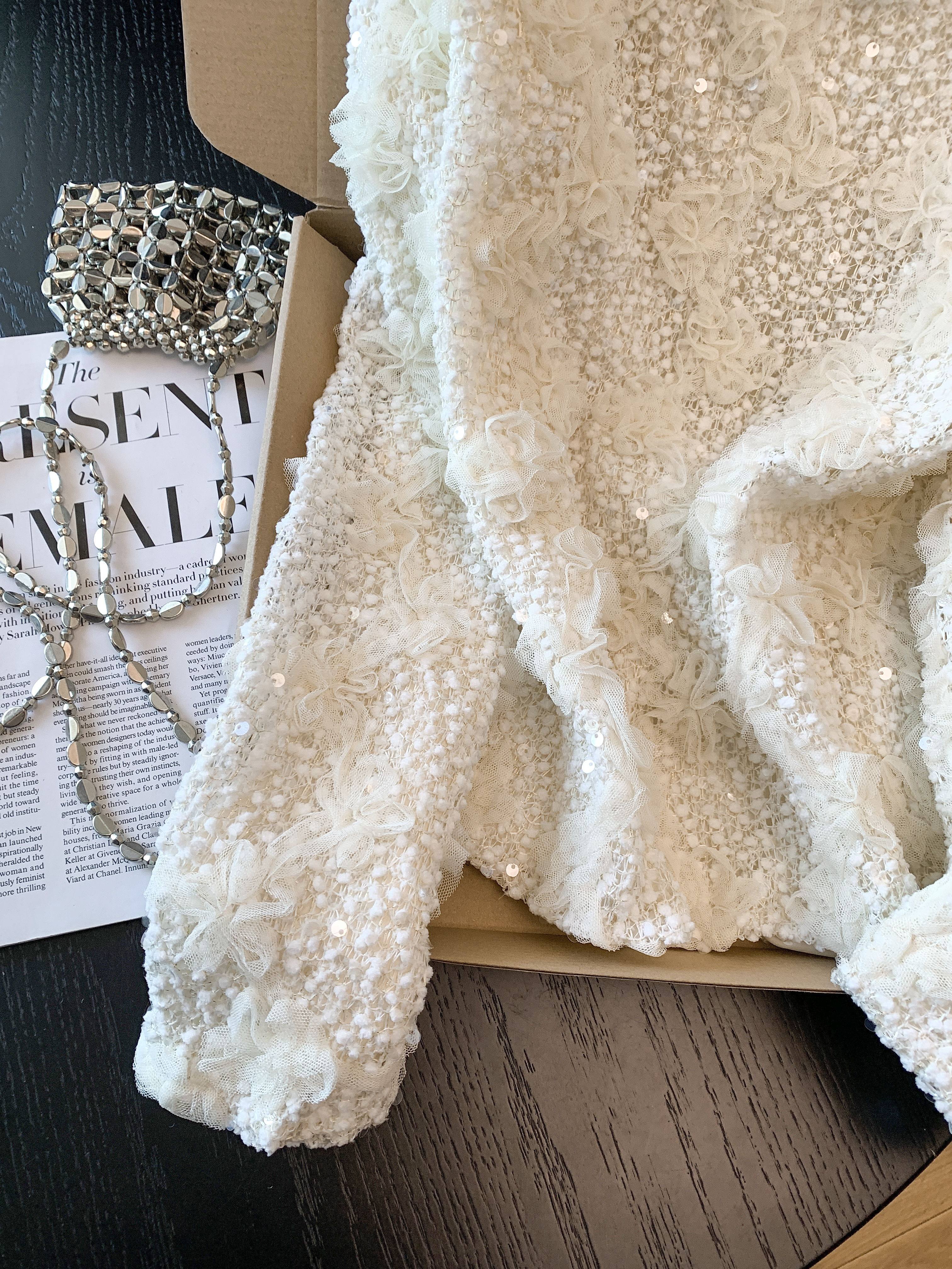 自留款推荐~温柔风立体花朵亮片针织衫女2026春甜美显瘦漂亮上衣
