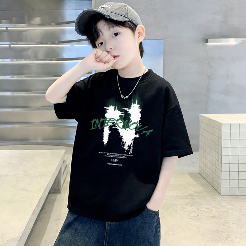 贝尔熊男童短袖T恤2026新款中大童夏季男孩帅气宝宝纯棉上衣t恤