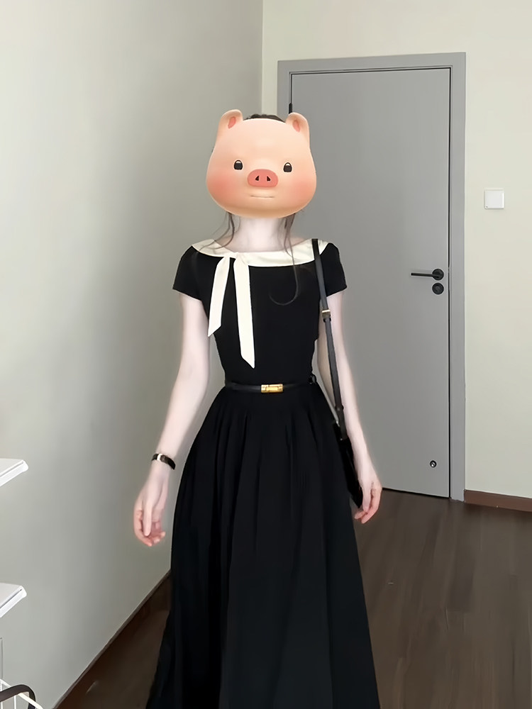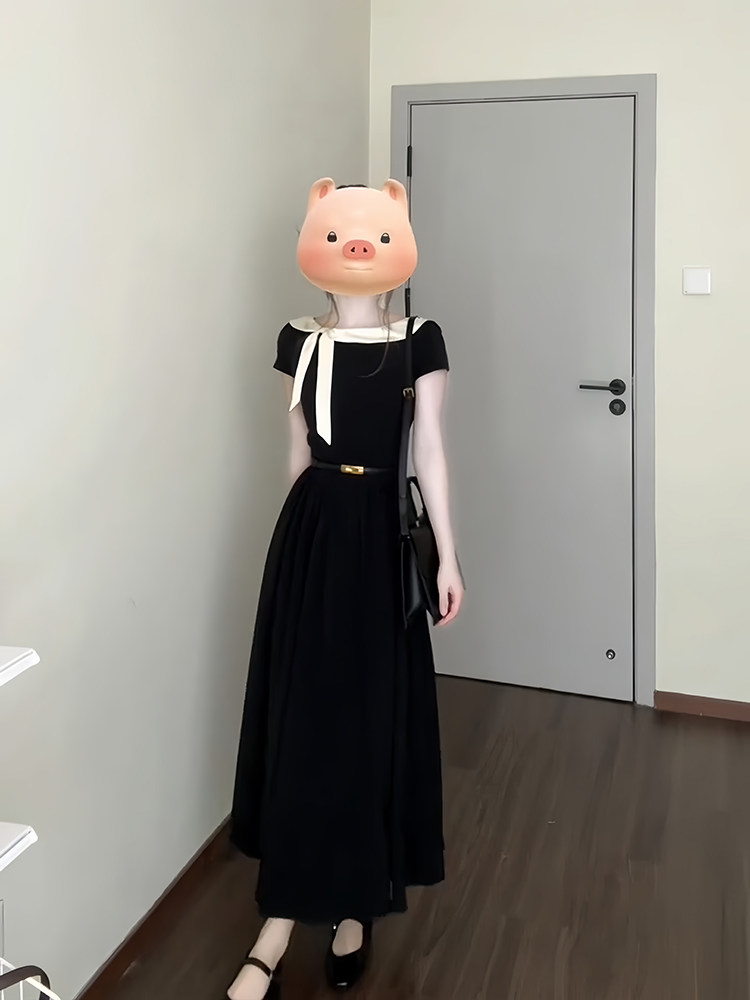 秦小Q/法式赫本风黑色连衣裙女2026夏季单品收腰名媛气质通勤长裙