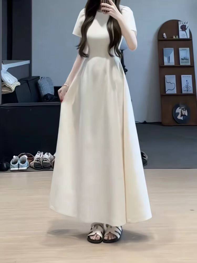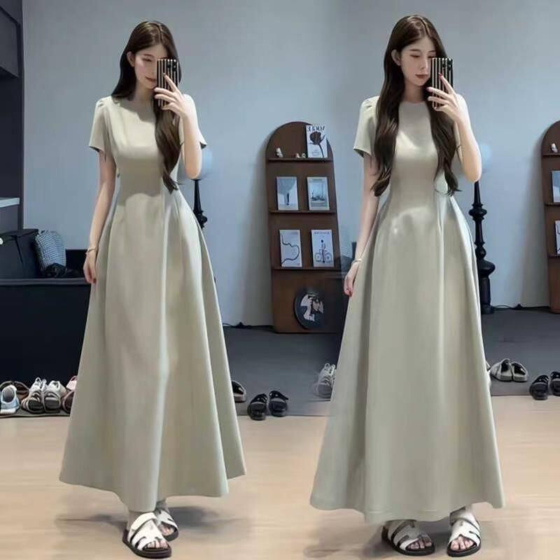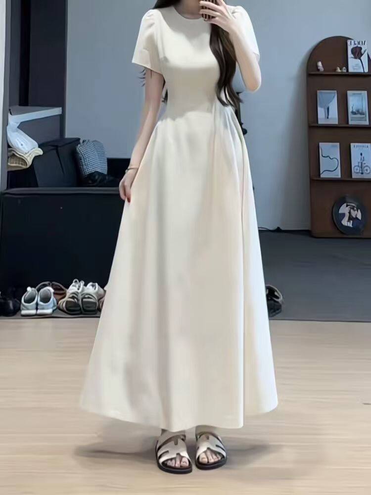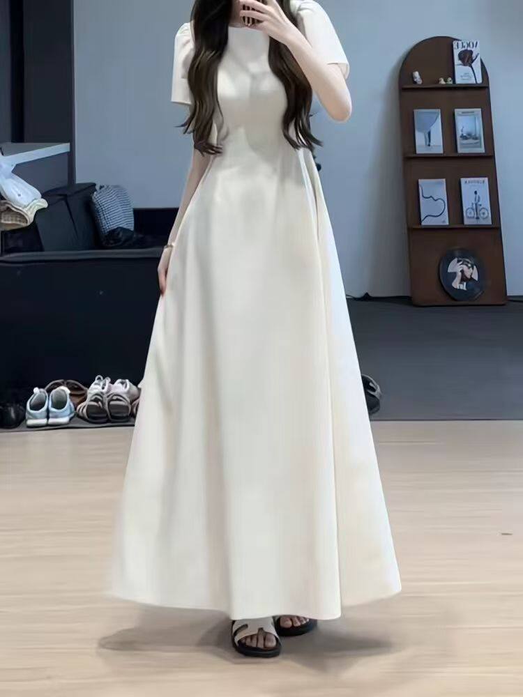 法式复古长裙女夏季新款收腰显瘦高级感赫本风黑色薄款西装连衣裙