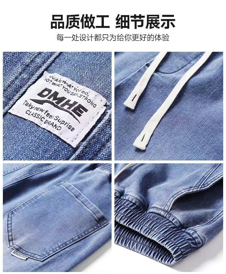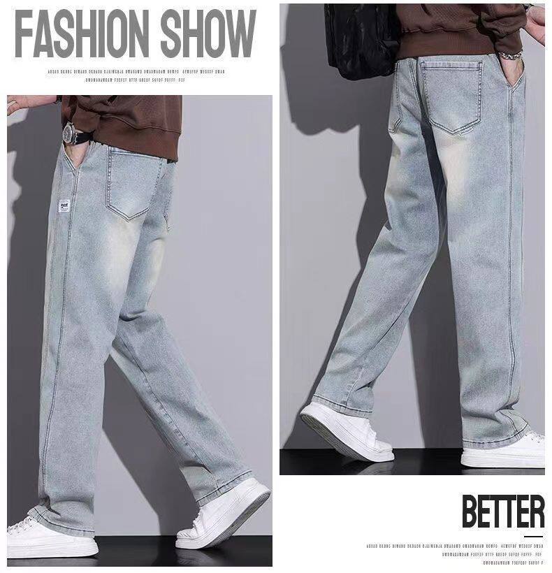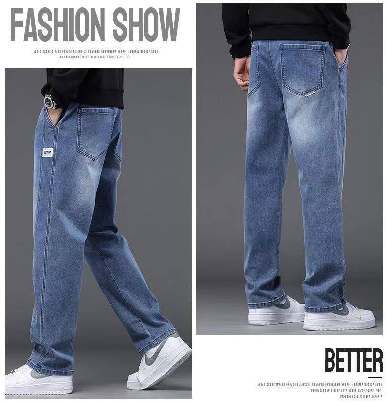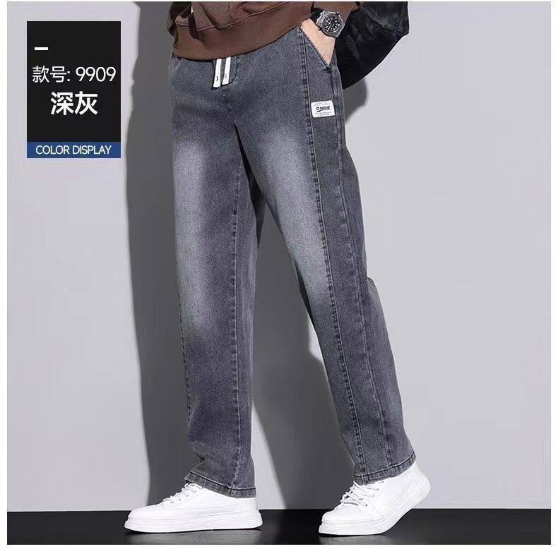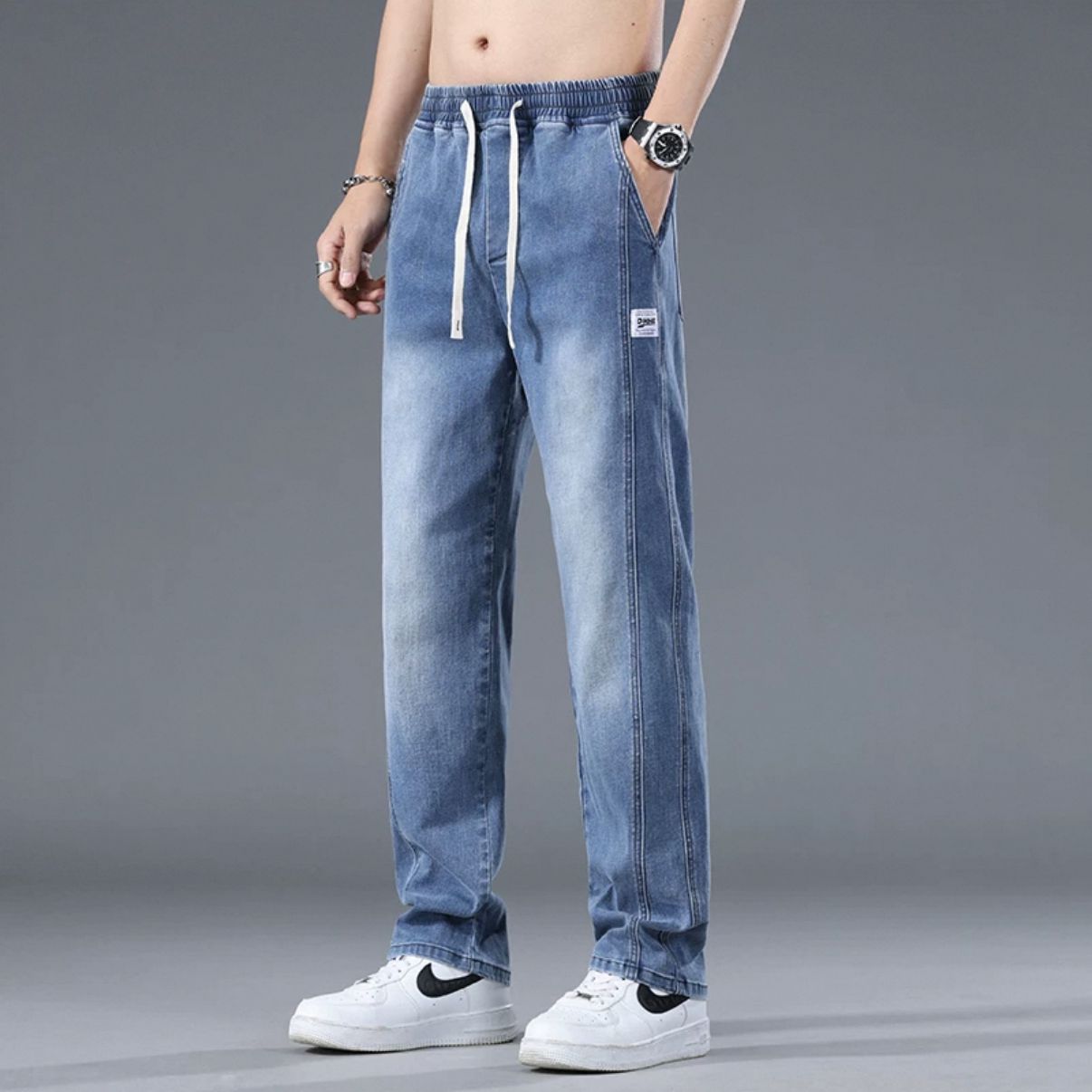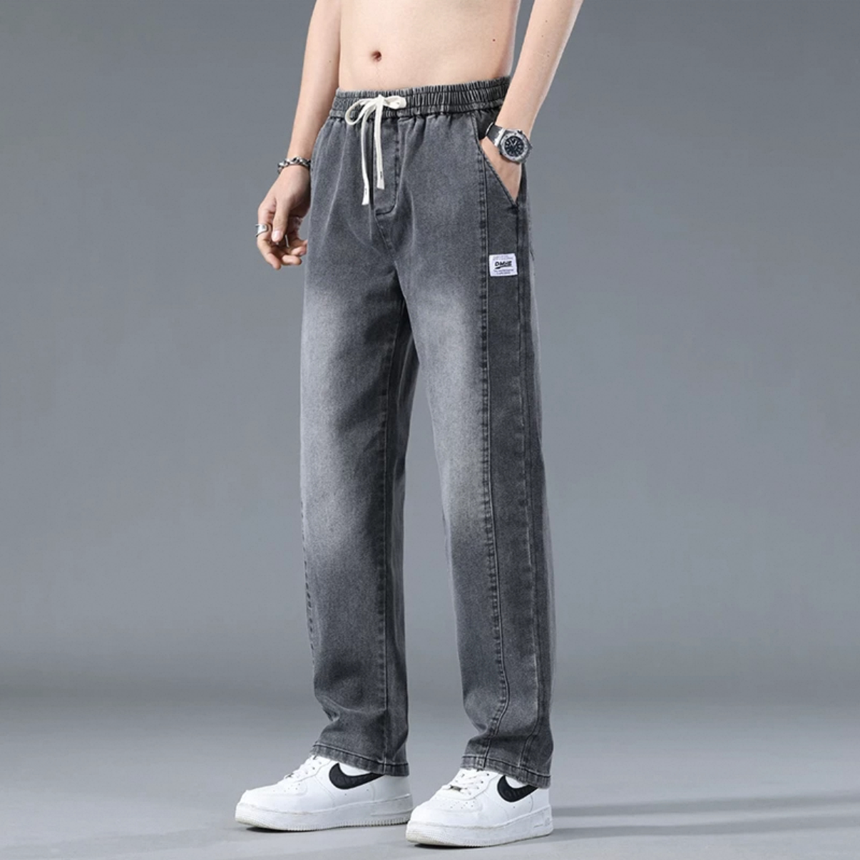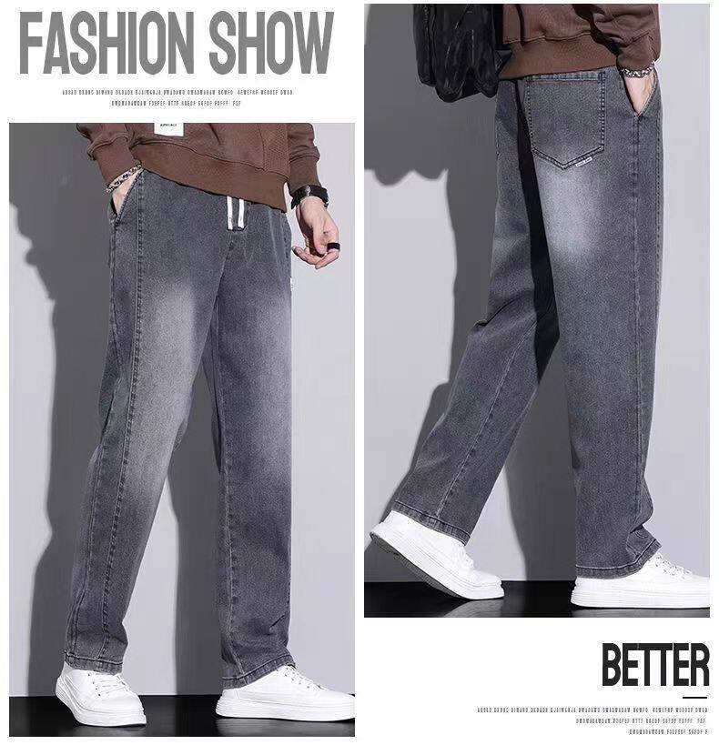 男士牛仔裤弹力抽绳宽松直筒长裤夏季薄款新款休闲潮牌青年男裤子