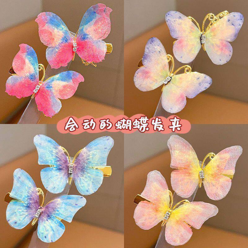 出游搭配会动蝴蝶发夹超仙头饰新款侧边灵动发卡发饰立体古风夹子