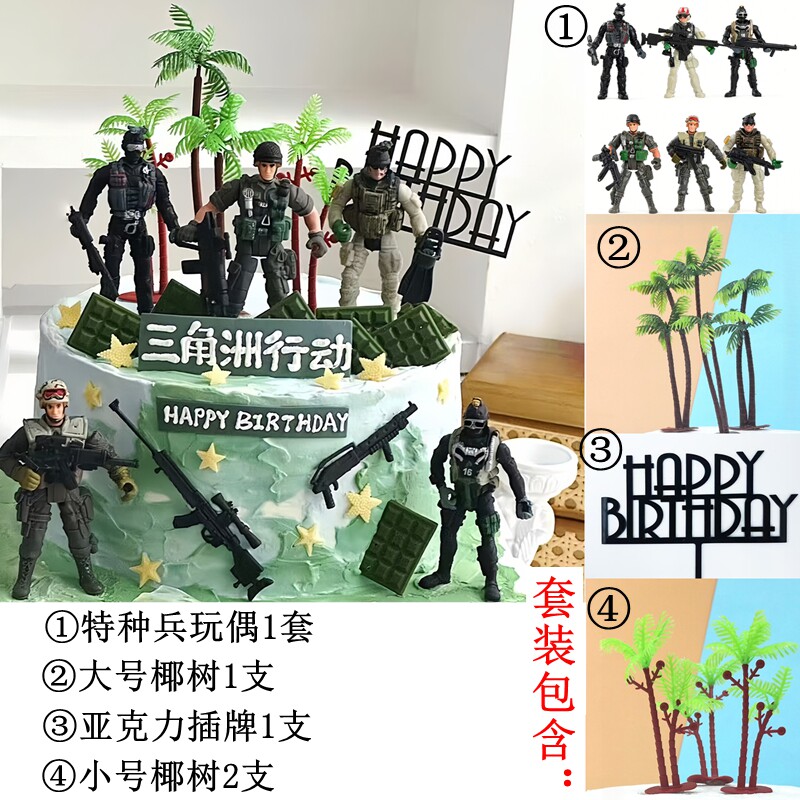 网红三角洲行动特种兵部队人物男孩男生男神生日蛋糕装饰摆件插牌