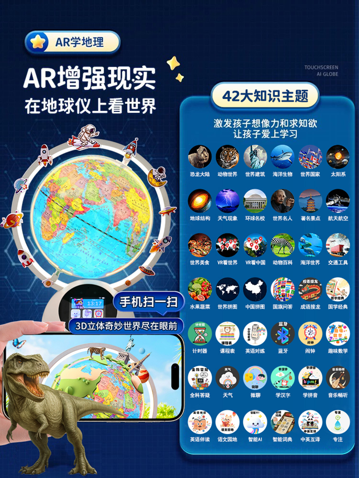 AI智能对话悬浮地球仪十岁男孩子12生日礼物7男童8小学生9益智11